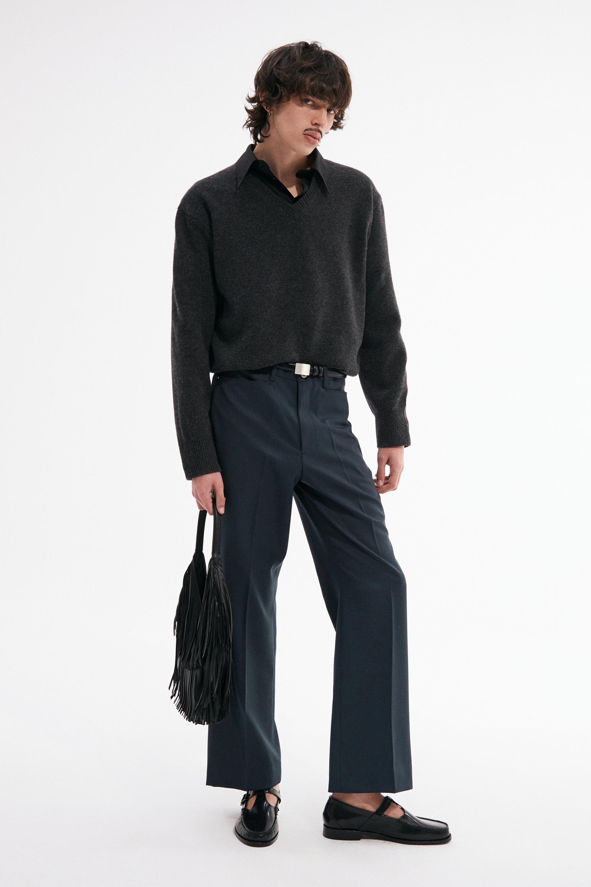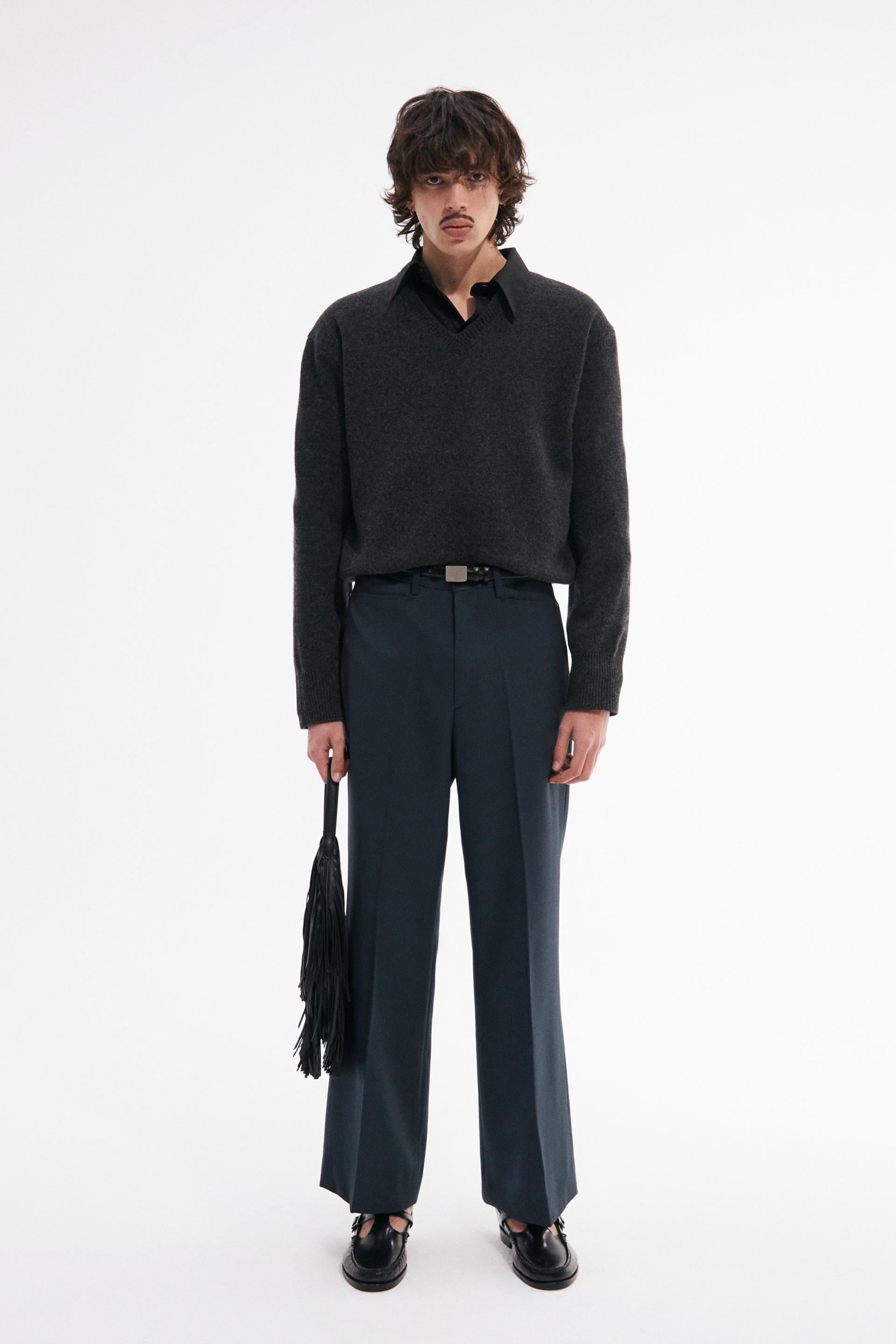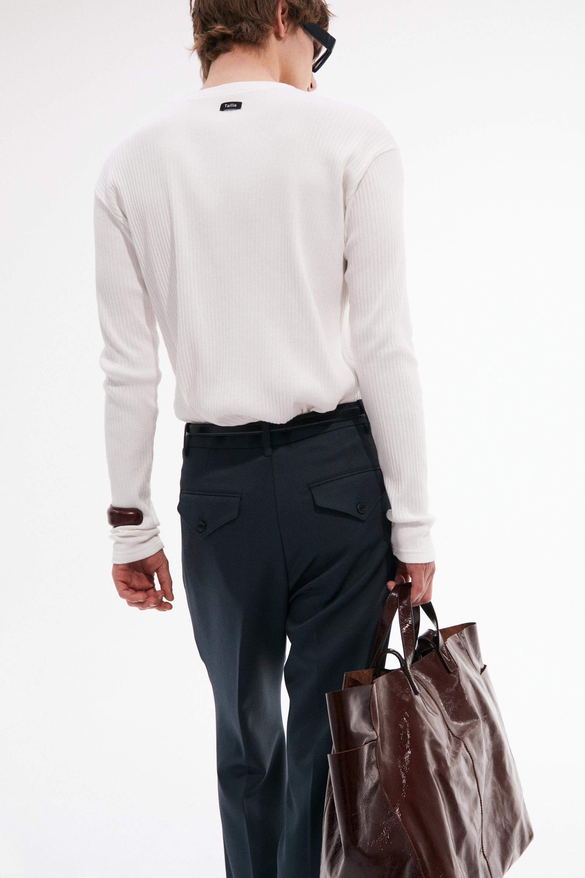 빈티지한 분위기의 80년대 벨 바텀 팬츠를 현대적으로 재해석한 트라우저 입니다. 탄탄한 밀도의 울 혼방 패브릭은 다리 라인을 따라 슬림하고 간결한 시그니처 플레어 실루엣을 강조합니다. 콘초 스터드로 마감된 슬래시 포켓과 후면의 버튼 플랩포켓, 벨트라인 타일레 블랙 라벨이 장식되어 있습니다.