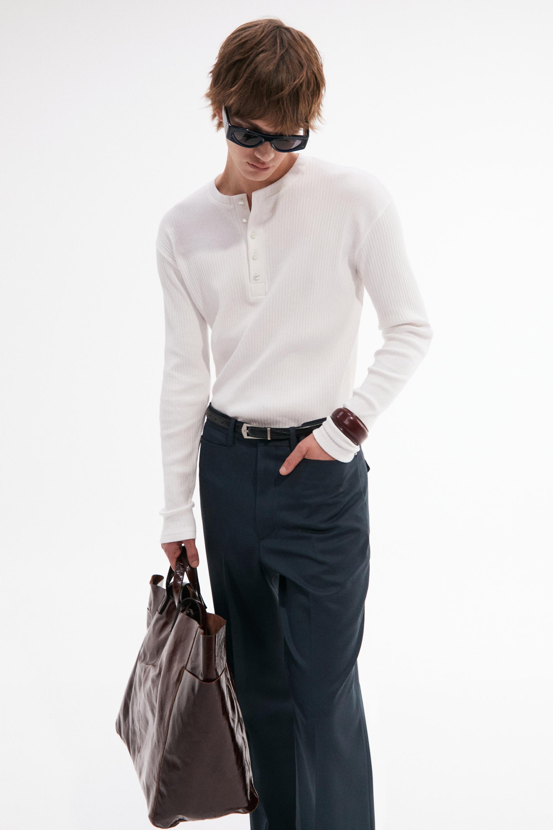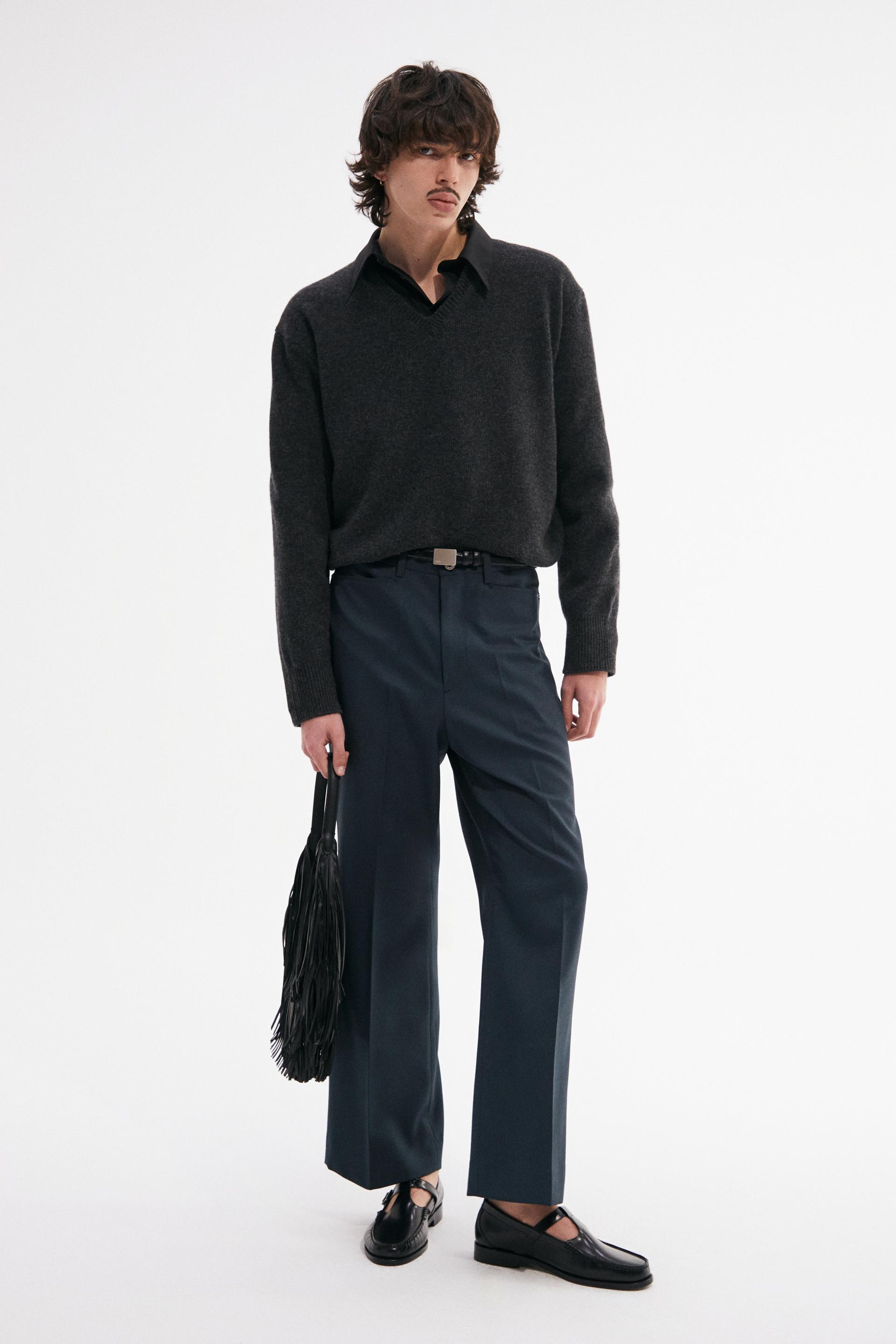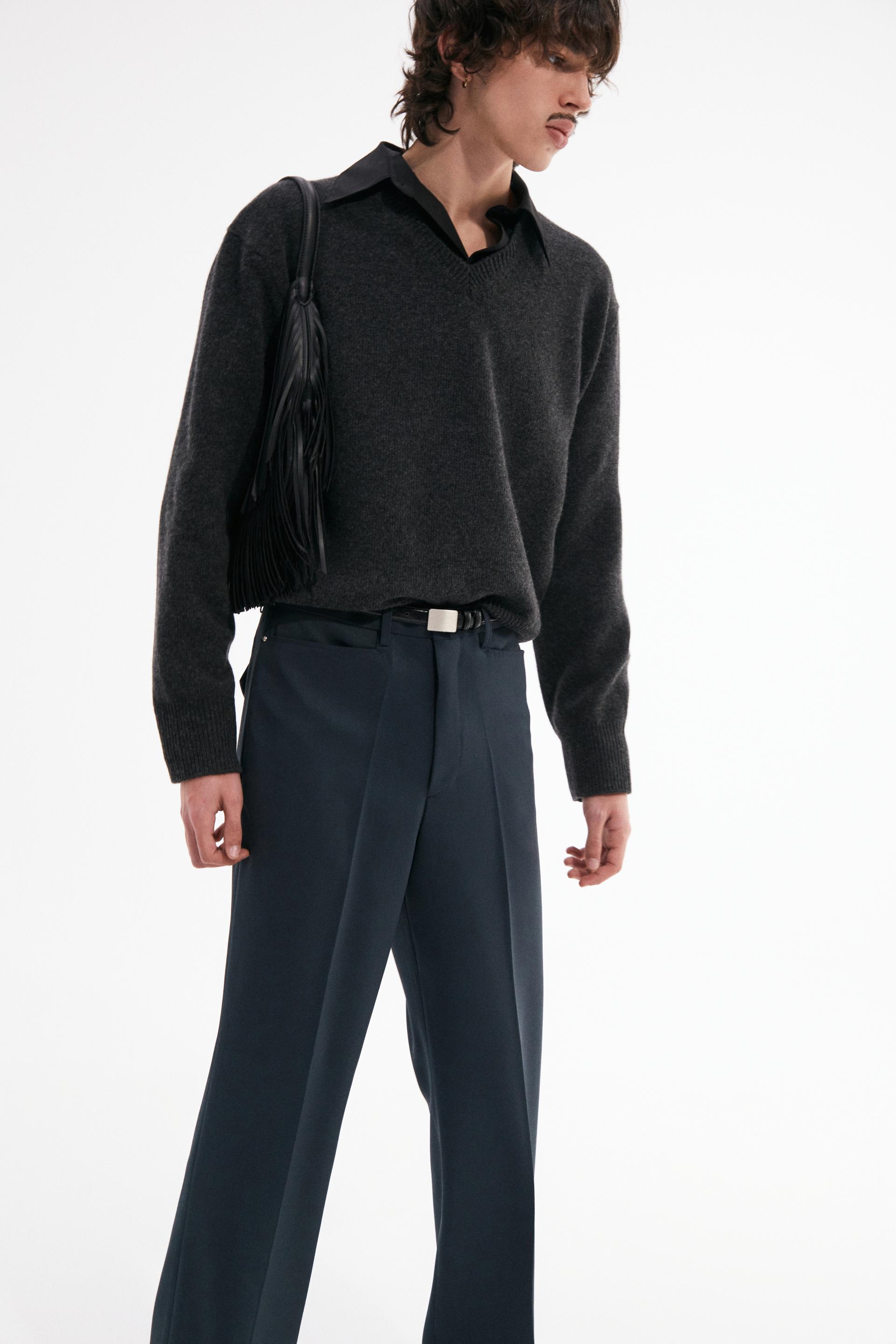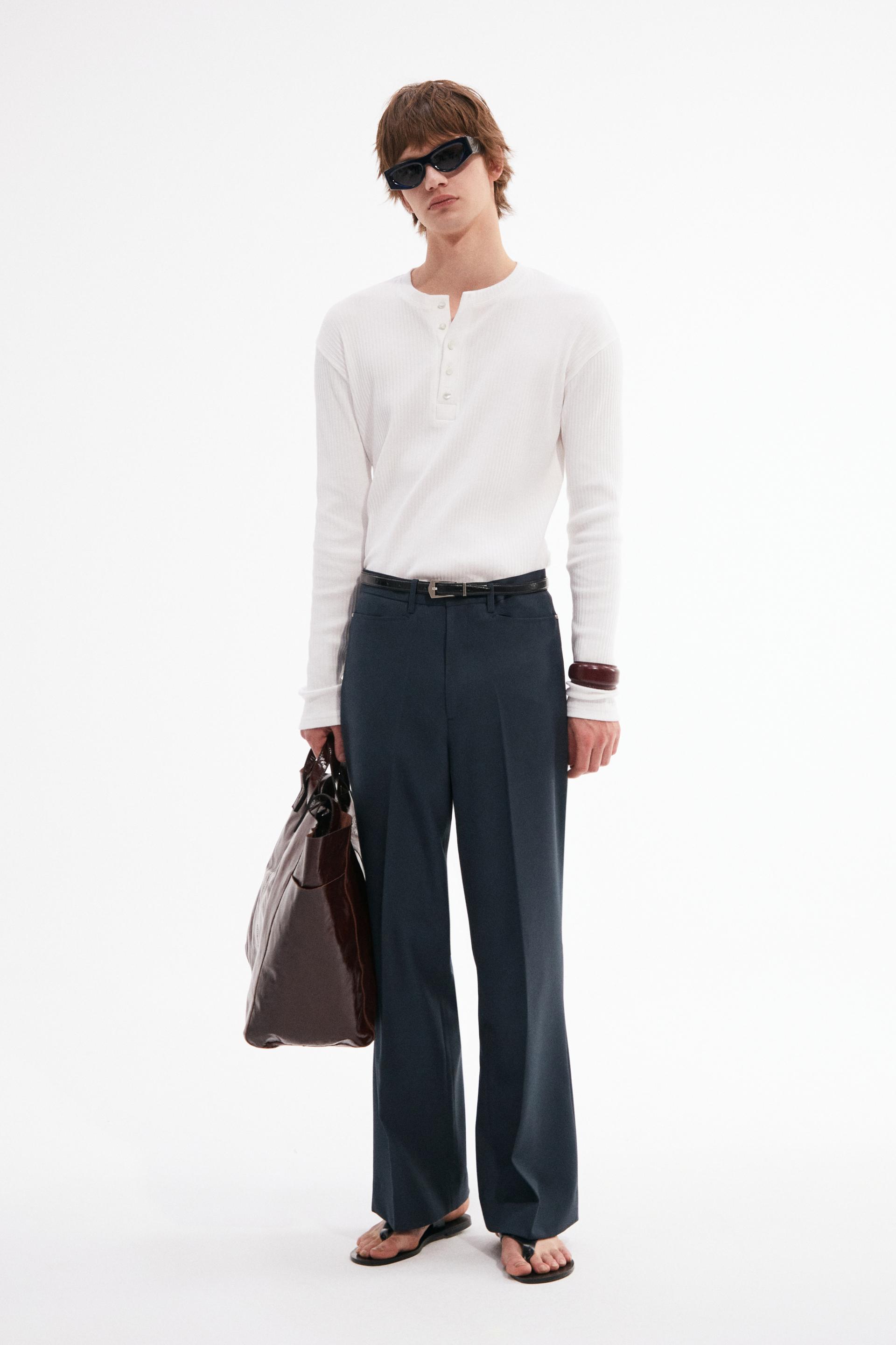 빈티지한 분위기의 80년대 벨 바텀 팬츠를 현대적으로 재해석한 트라우저 입니다. 탄탄한 밀도의 울 혼방 패브릭은 다리 라인을 따라 슬림하고 간결한 시그니처 플레어 실루엣을 강조합니다. 콘초 스터드로 마감된 슬래시 포켓과 후면의 버튼 플랩포켓, 벨트라인 타일레 블랙 라벨이 장식되어 있습니다.