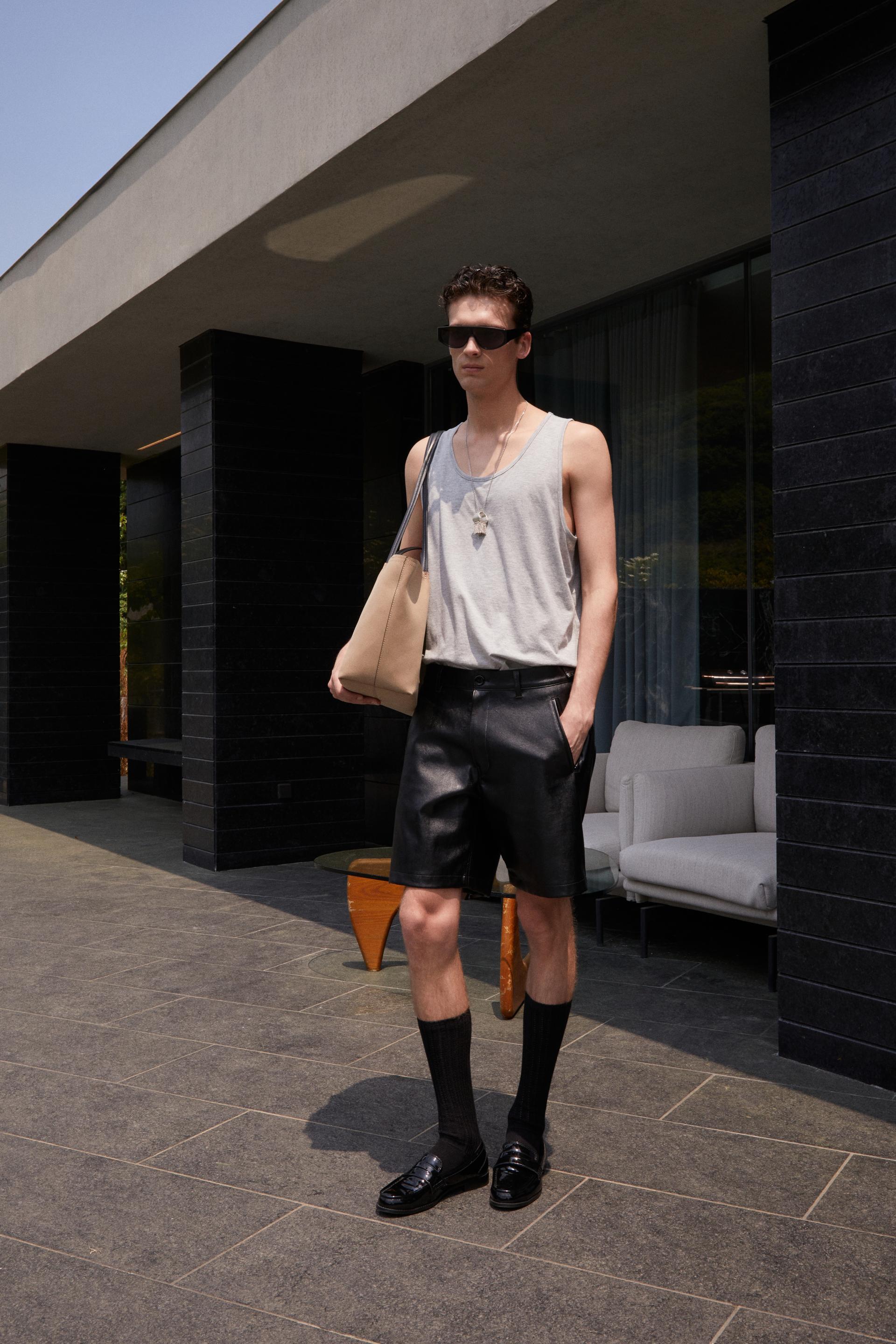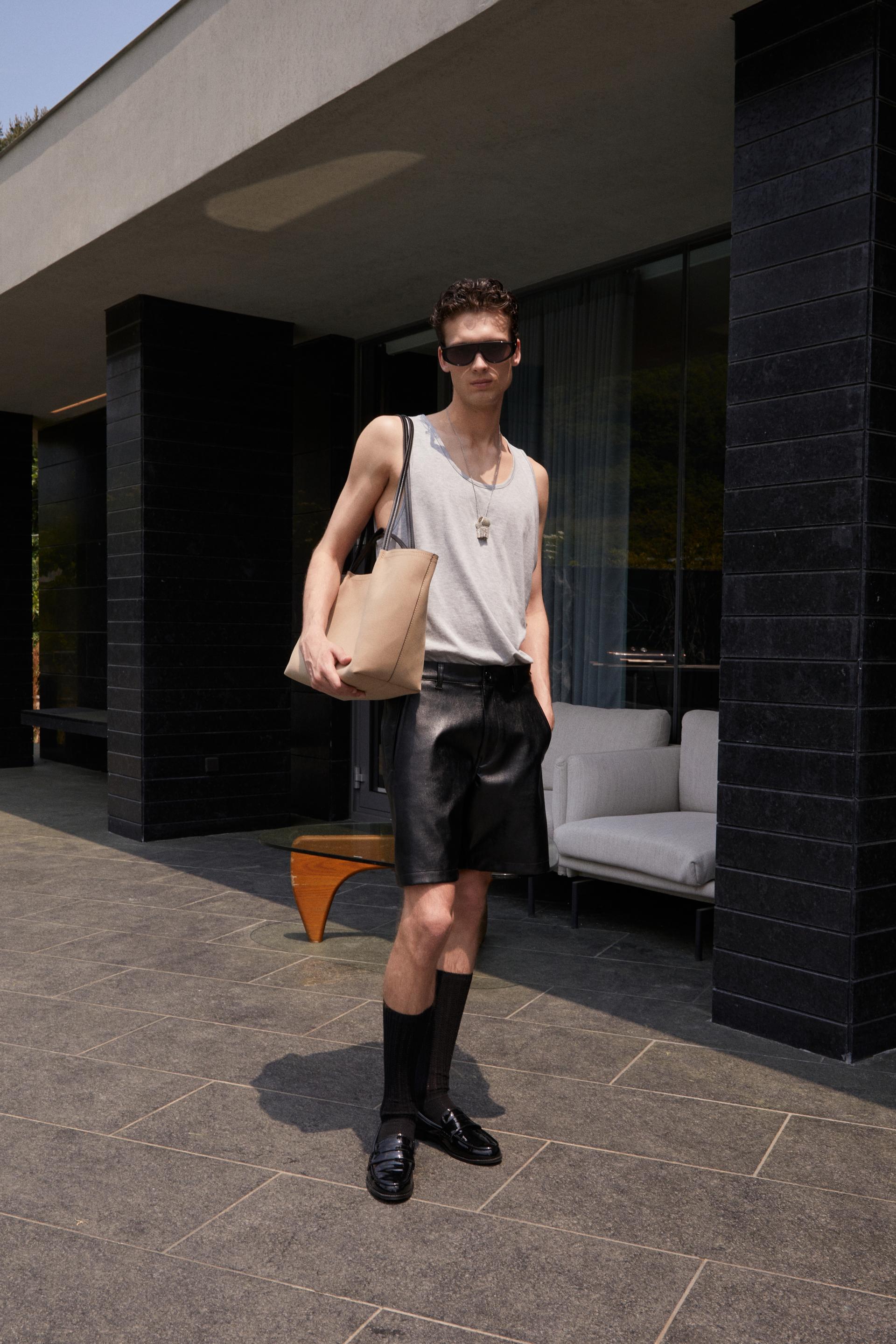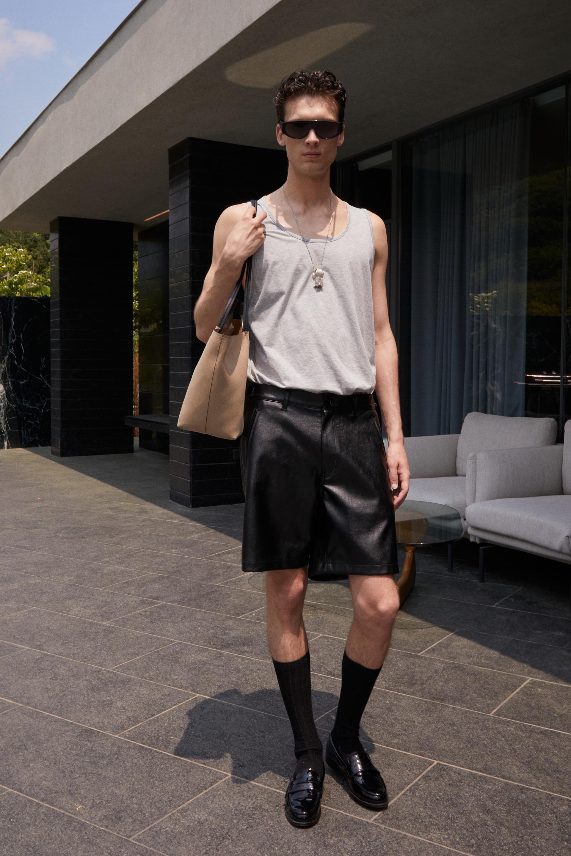 네추럴한 광택의 Faux leather 소재로 완성된 웨이페러 쇼츠입니다. 적당한 두께감과 유연한 텍스처가 실루엣을 탄탄하게 잡아주며, 허리 양 옆의 어드저스트 탭과 사선형 립 포켓이 구조적인 리듬을 더합니다. 클래식한 레더 터치를 간결한 디자인에 담아낸 아이템으로, 드레시한 룩은 물론 도시적인 리조트 스타일에도 자연스럽게 어우러집니다.