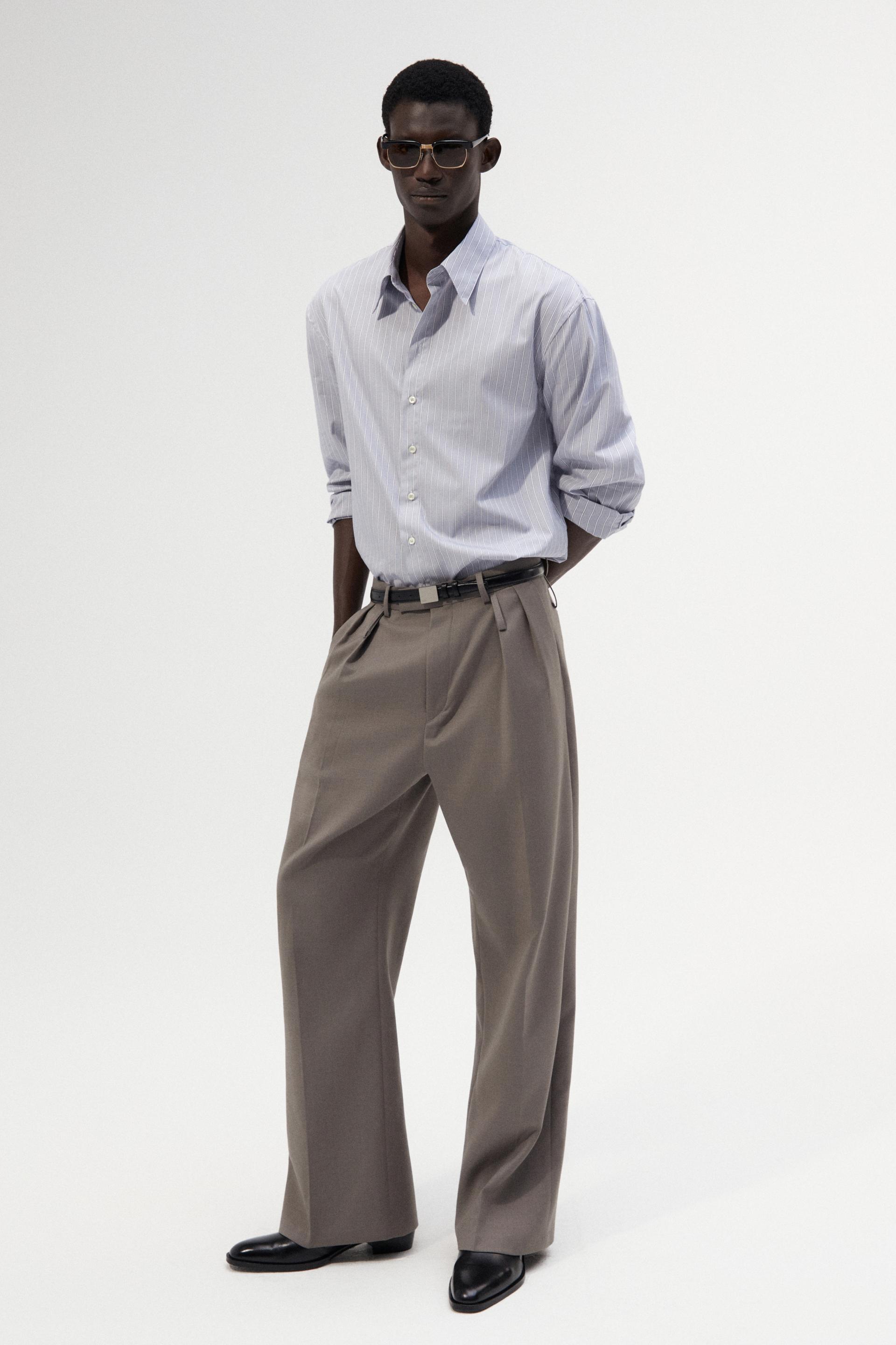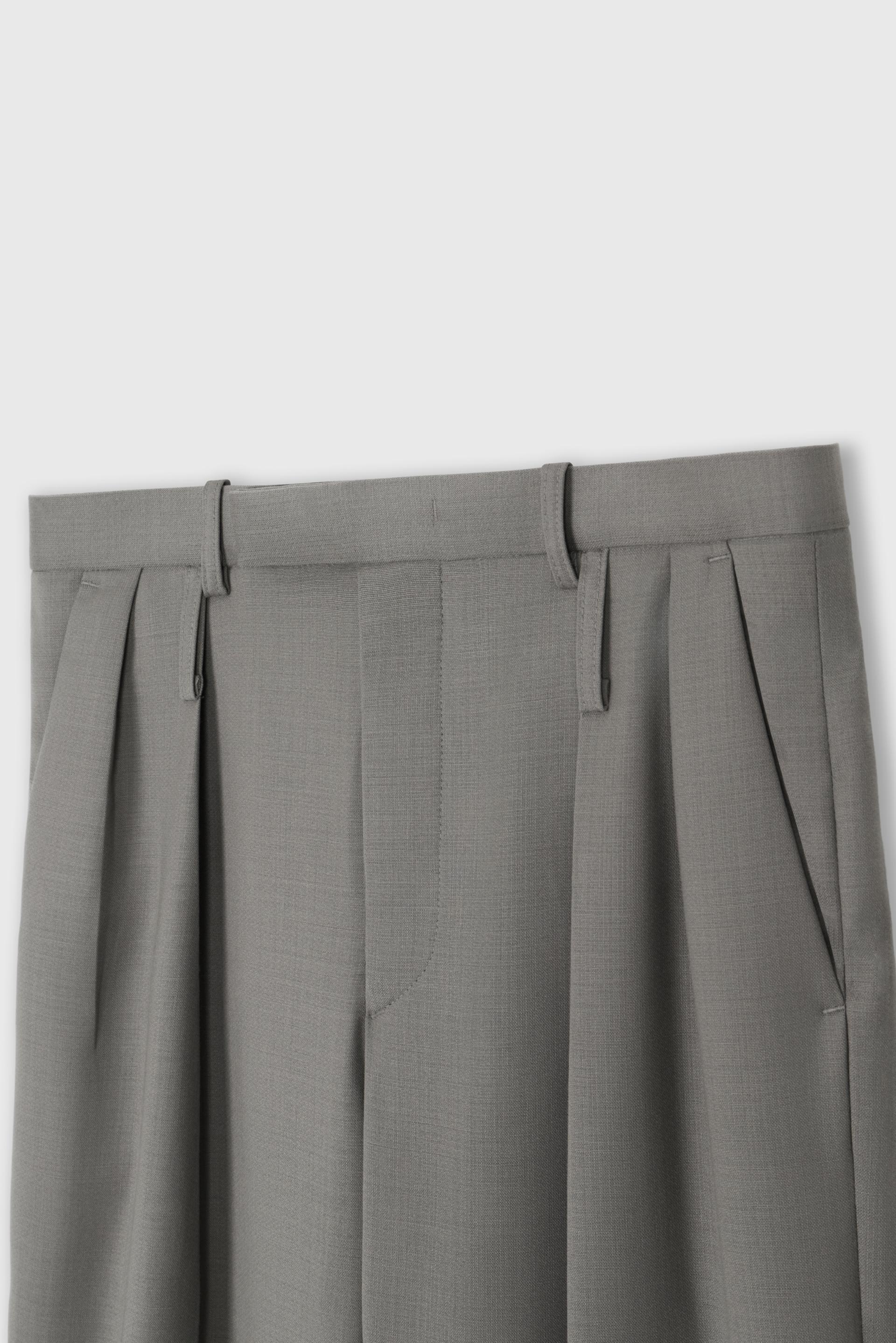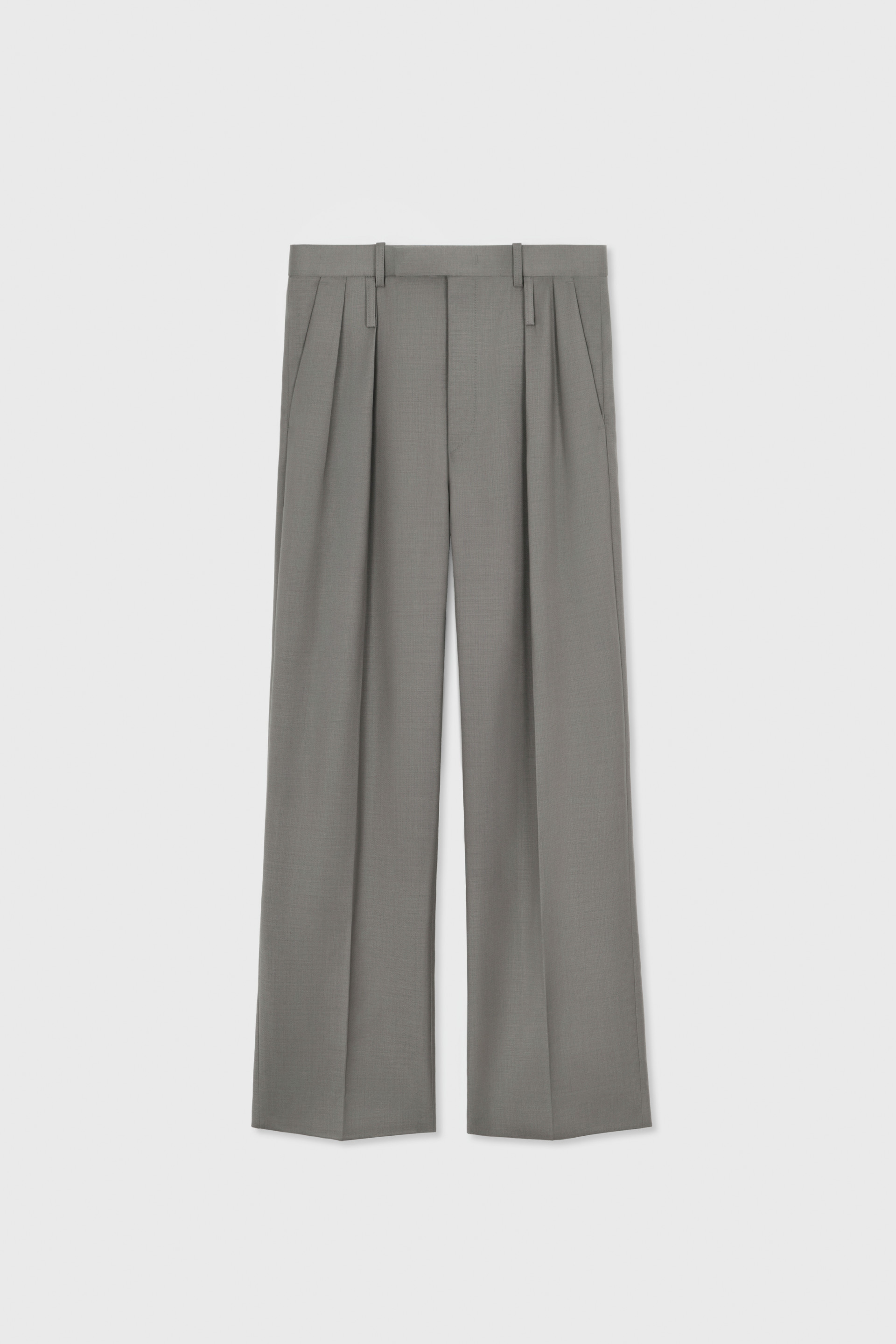 구조적인 실루엣의 토리노 테일러드 트라우저 입니다. 90년대 스모킹 룩의 실루엣을 재해석한 와이드 레그 실루엣에 두 개의 리버스 볼륨 플리츠를 더해 우아하고 정돈된 드레이프가 특징입니다. 더블 벨트 루프로 다양한 연출이 가능하며 세밀한 직조의 울 혼방 패브릭과 테일러드 베이스로 완성한 클래식 트라우저로 시간에 구애받지 않는 타임리스 아이템입니다.