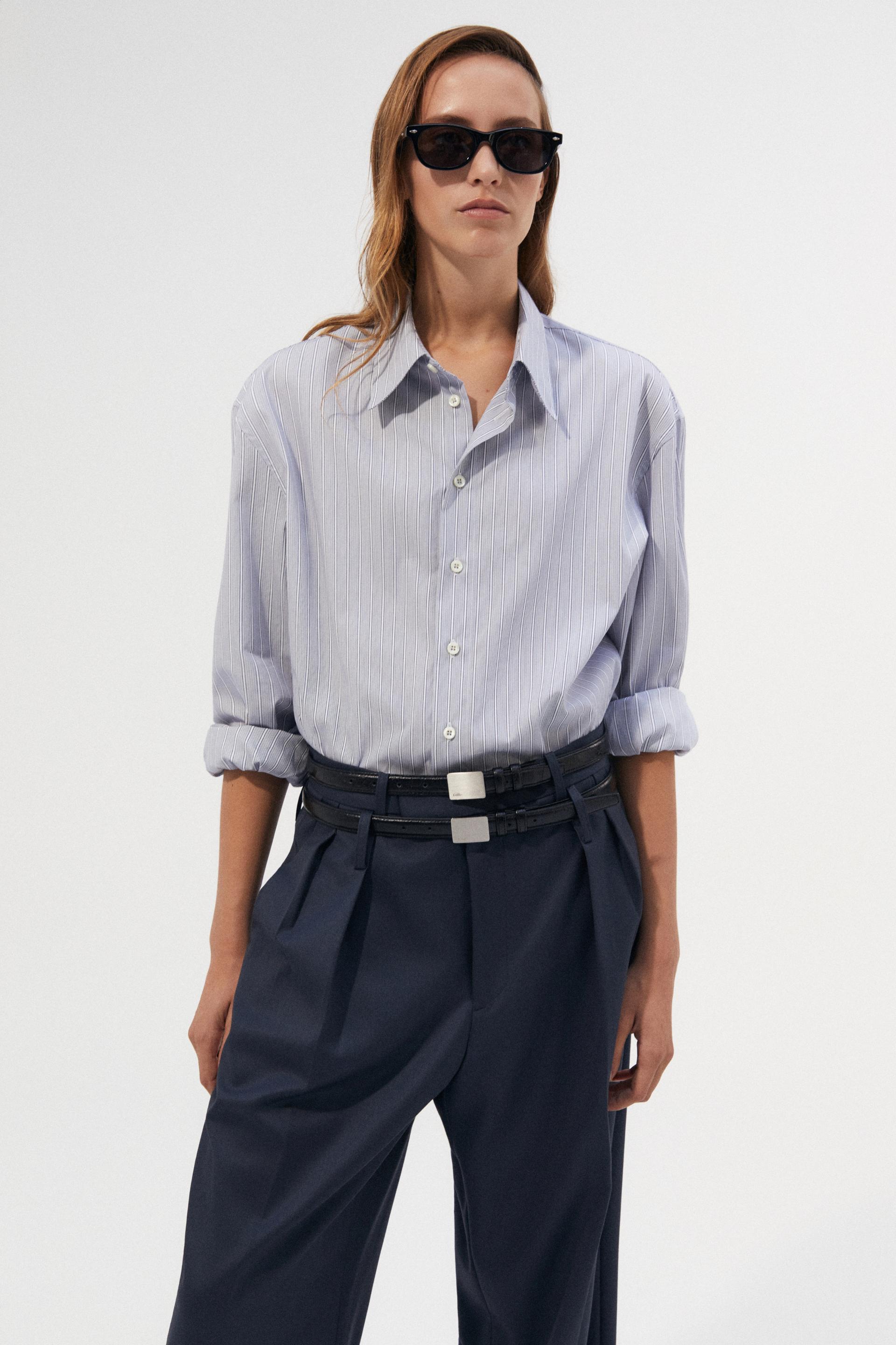 타일레 시그니처 클래식 코튼 보이 셔츠입니다. 감각적인 컬러의 네오 스트라이프 패턴은 유니크하고 세련된 분위기를 연출합니다. 스탠다드 칼라에 레귤러 핏 타입이며 정교한 테일러링 베이스로 봉제, 사용된 단추는 모두 천연 자개단추 입니다. 밑단 플라켓에 Taille Black label 이 장식되어 있습니다. 정도의 차이로 완성도 높은 룩을 구성해주는 타일레 시그니처 베이직 아이템입니다.