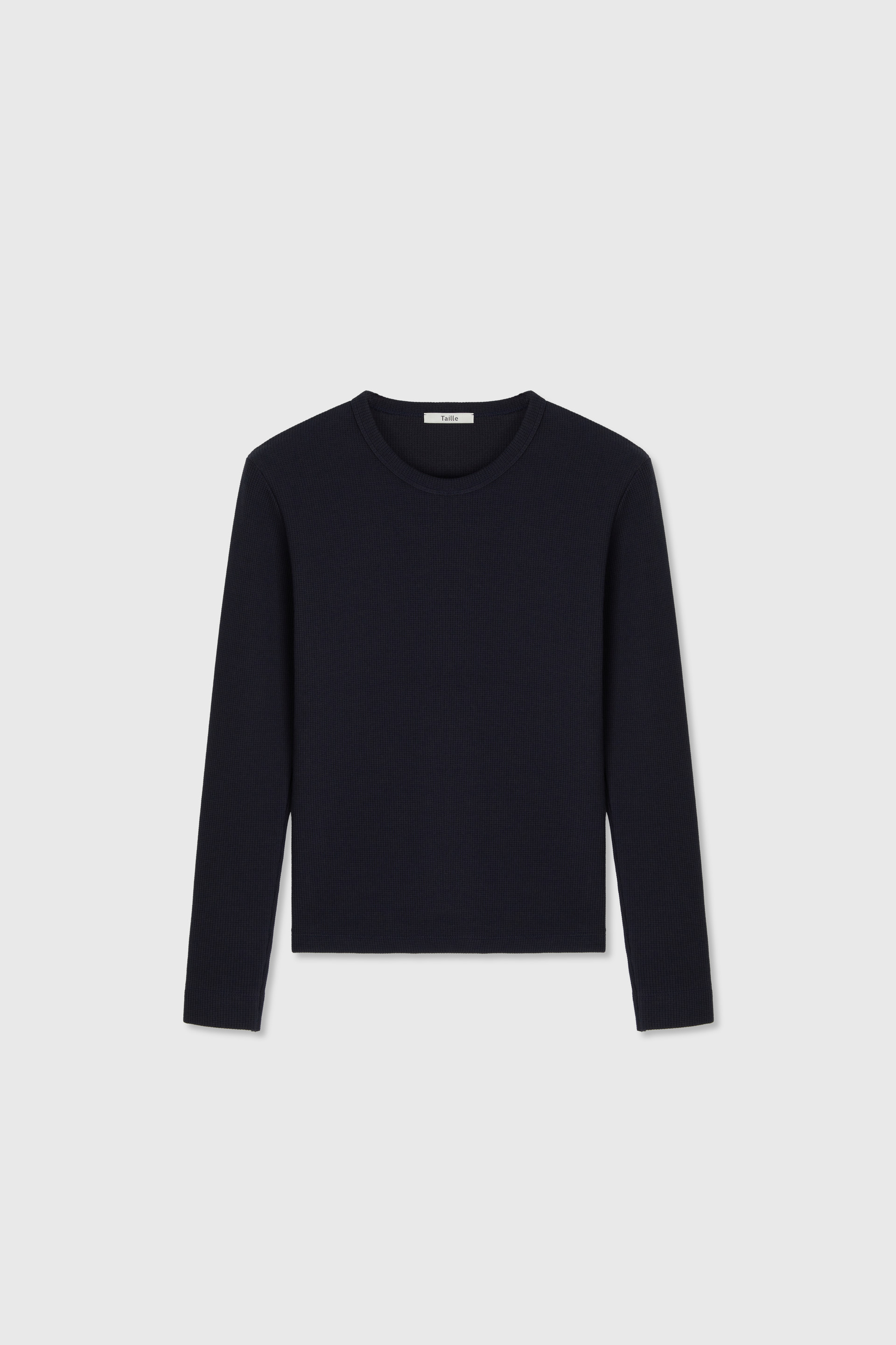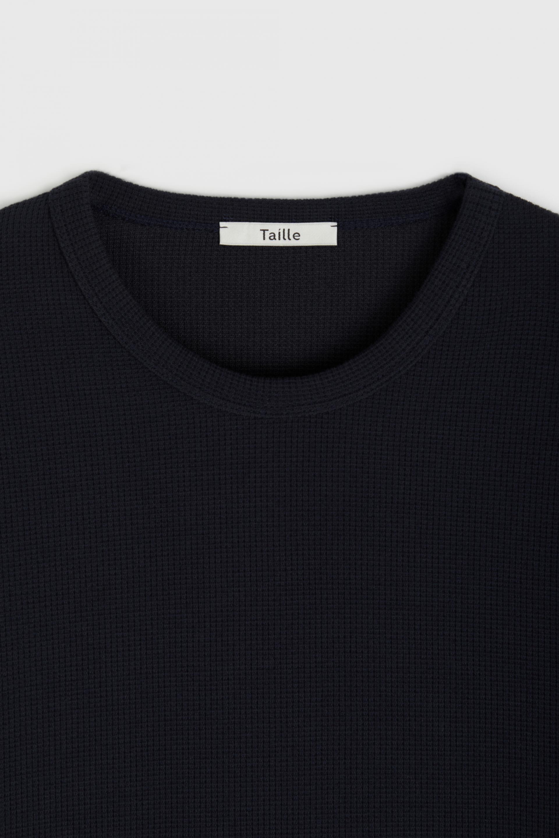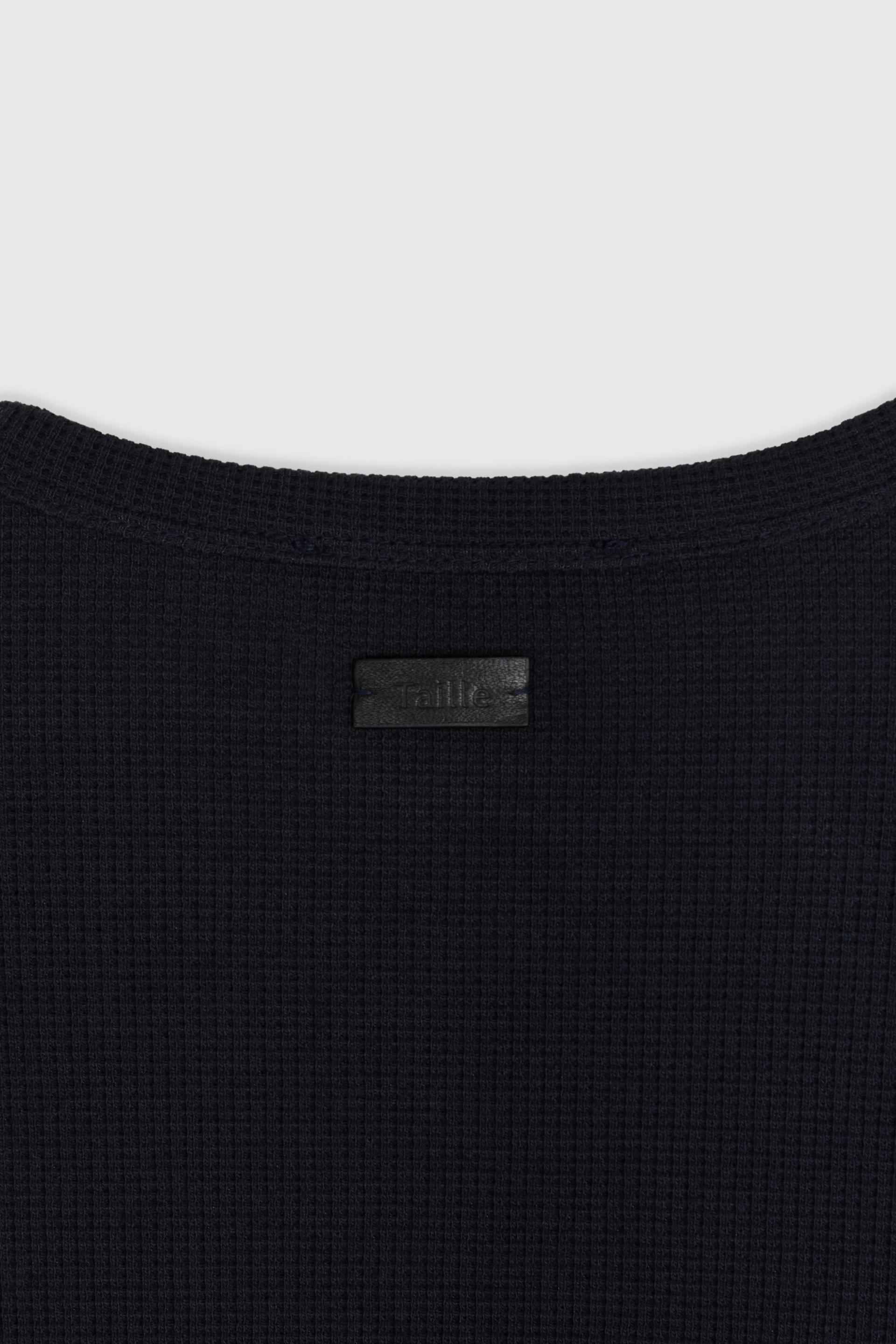 COTTON BLEND GAUZE WAFFLE LONG SLEEVE NAVY