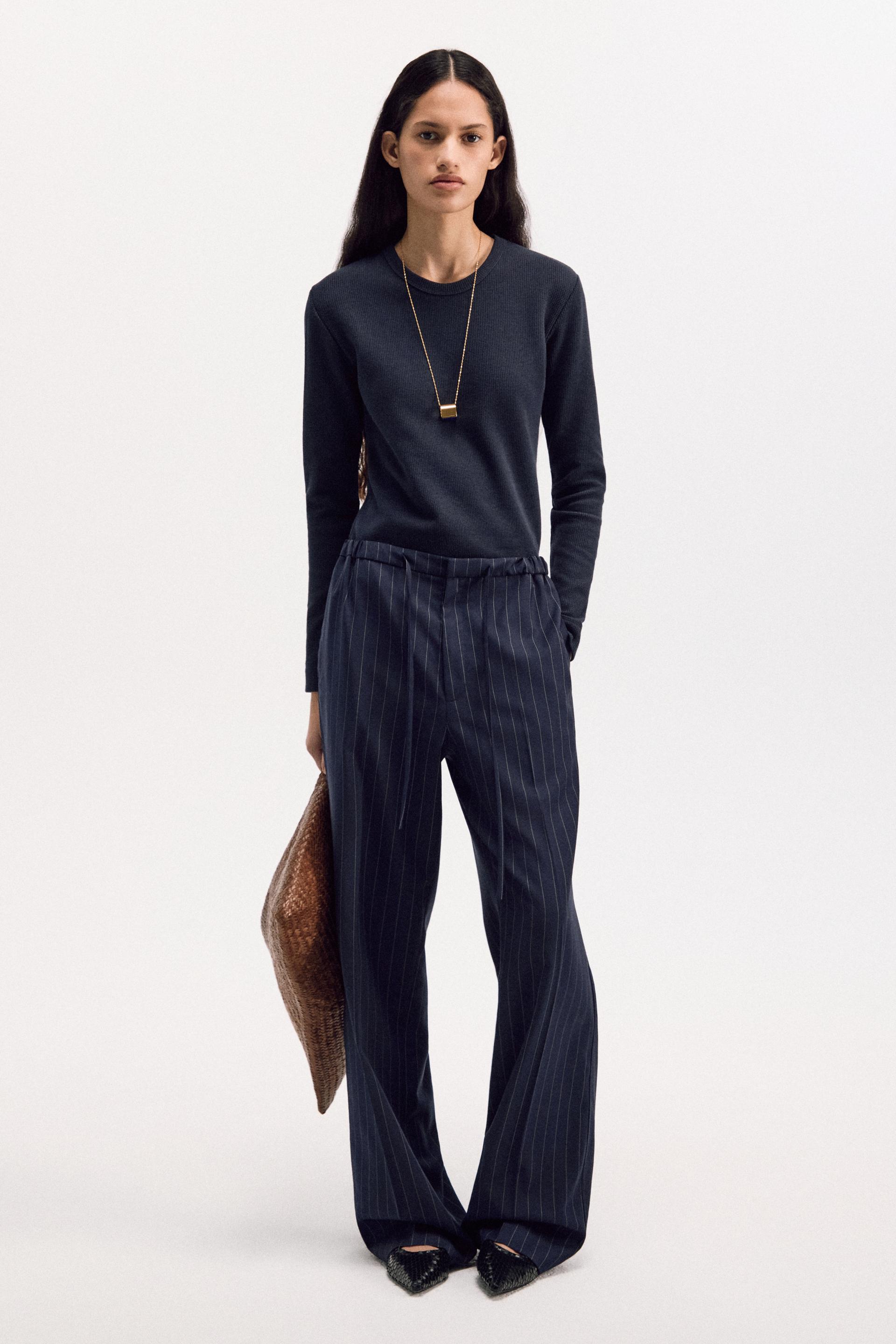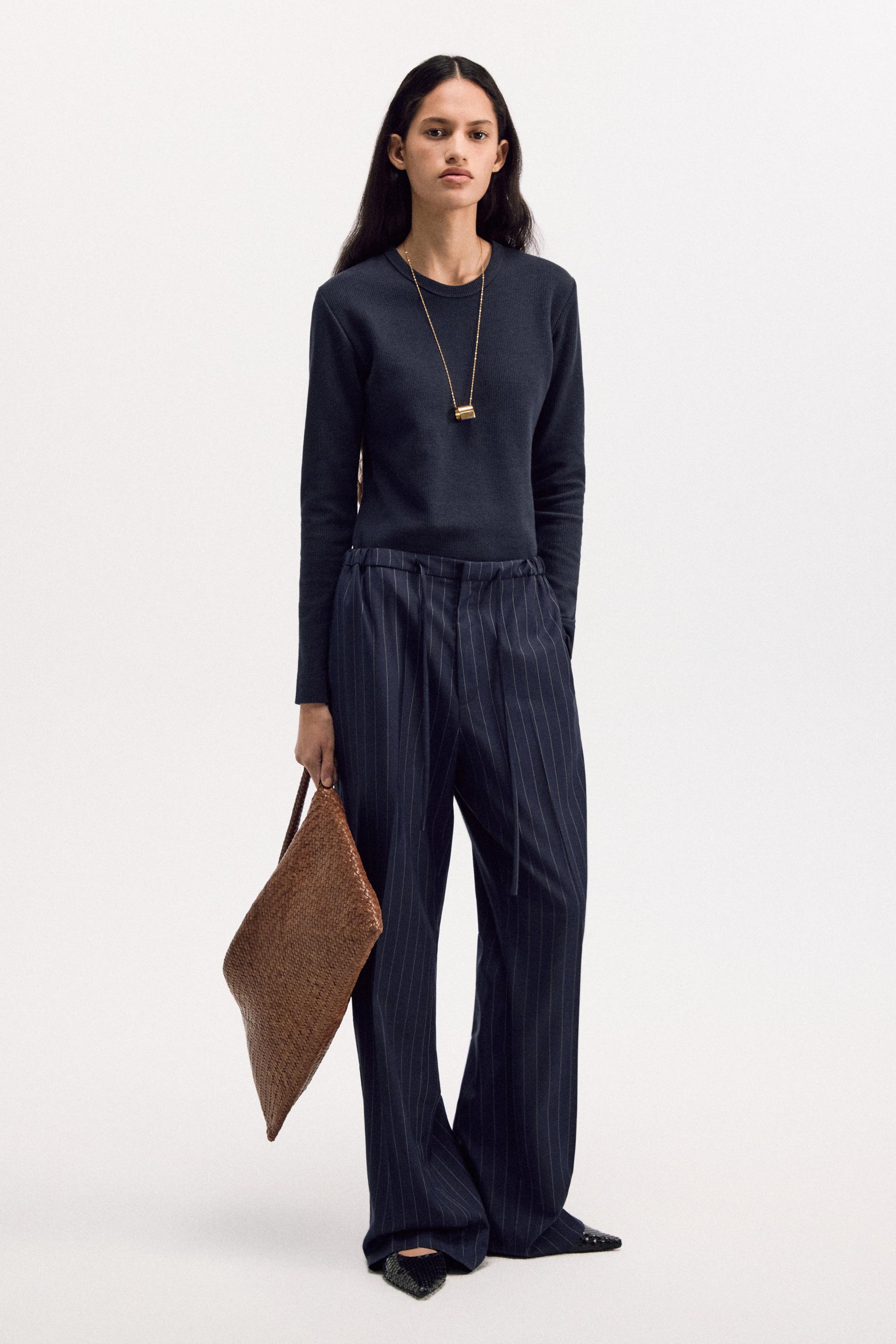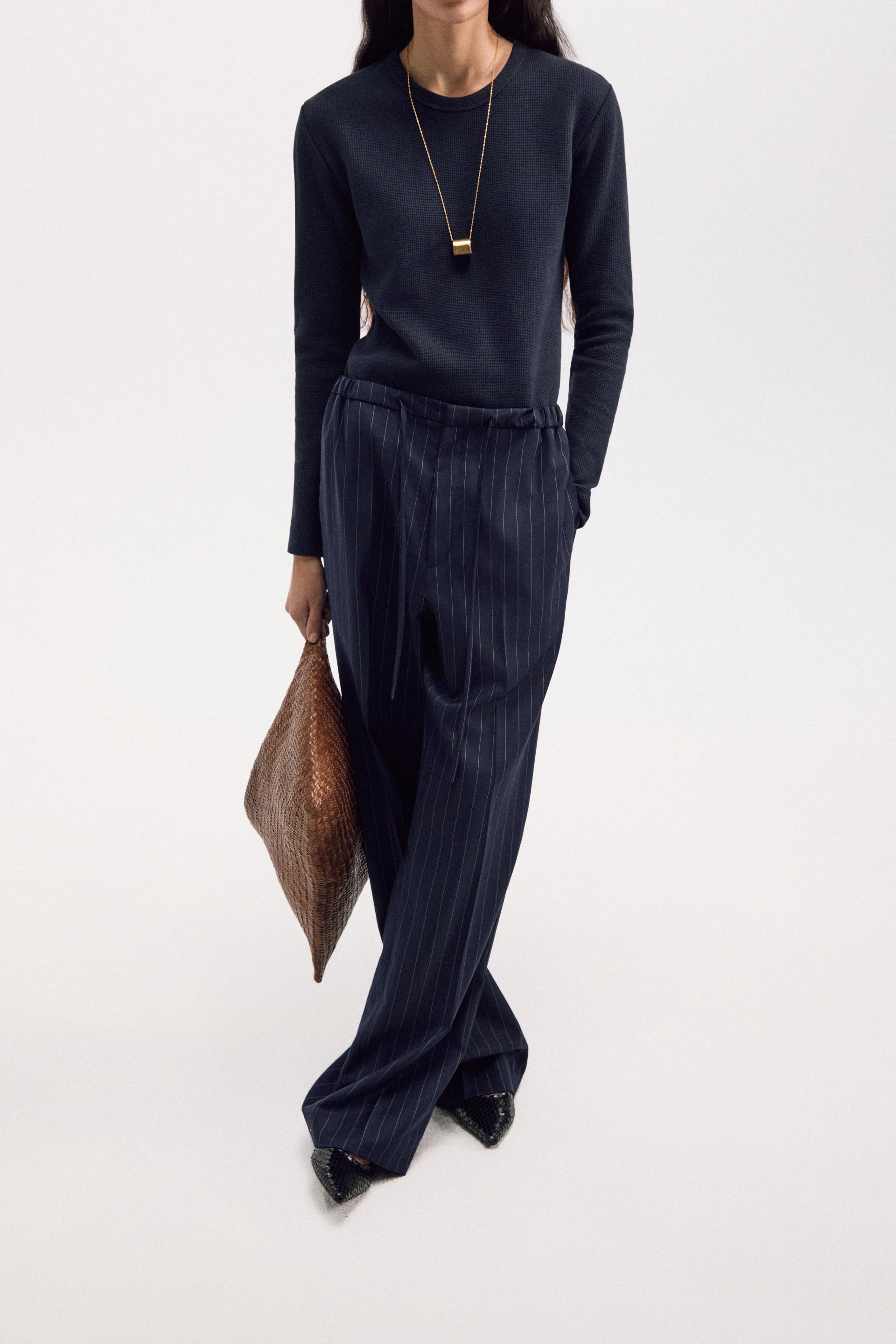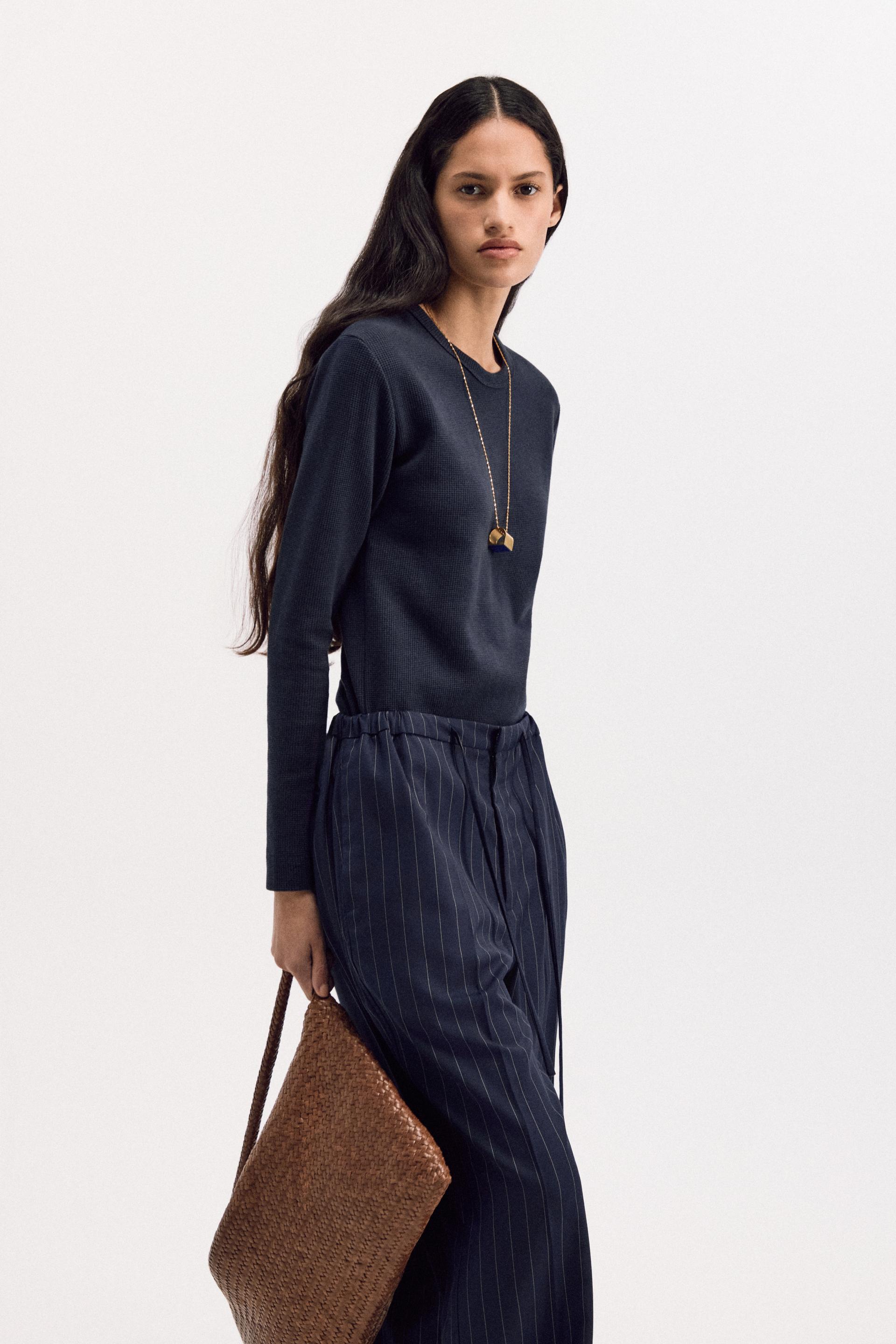 COTTON BLEND GAUZE WAFFLE LONG SLEEVE NAVY