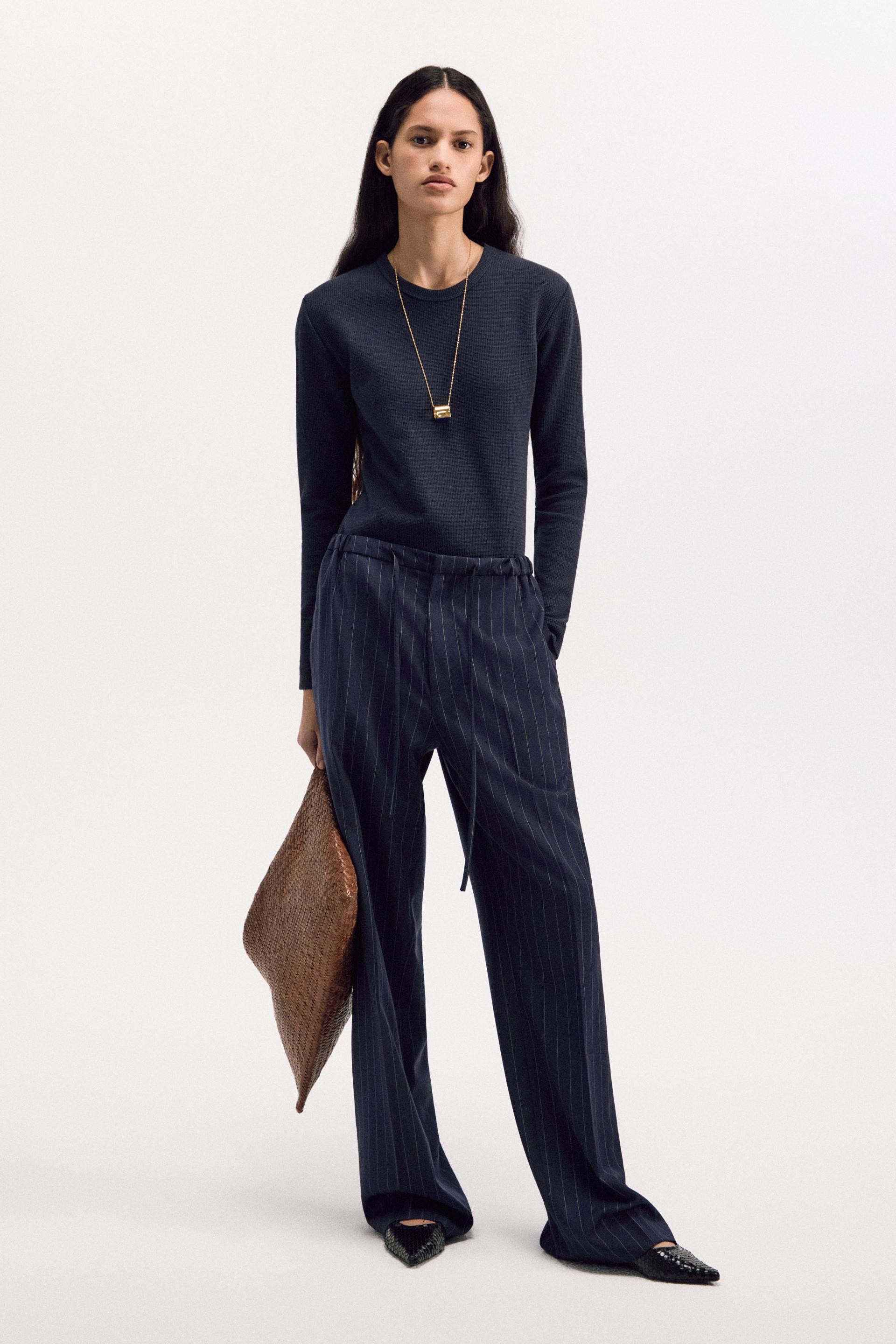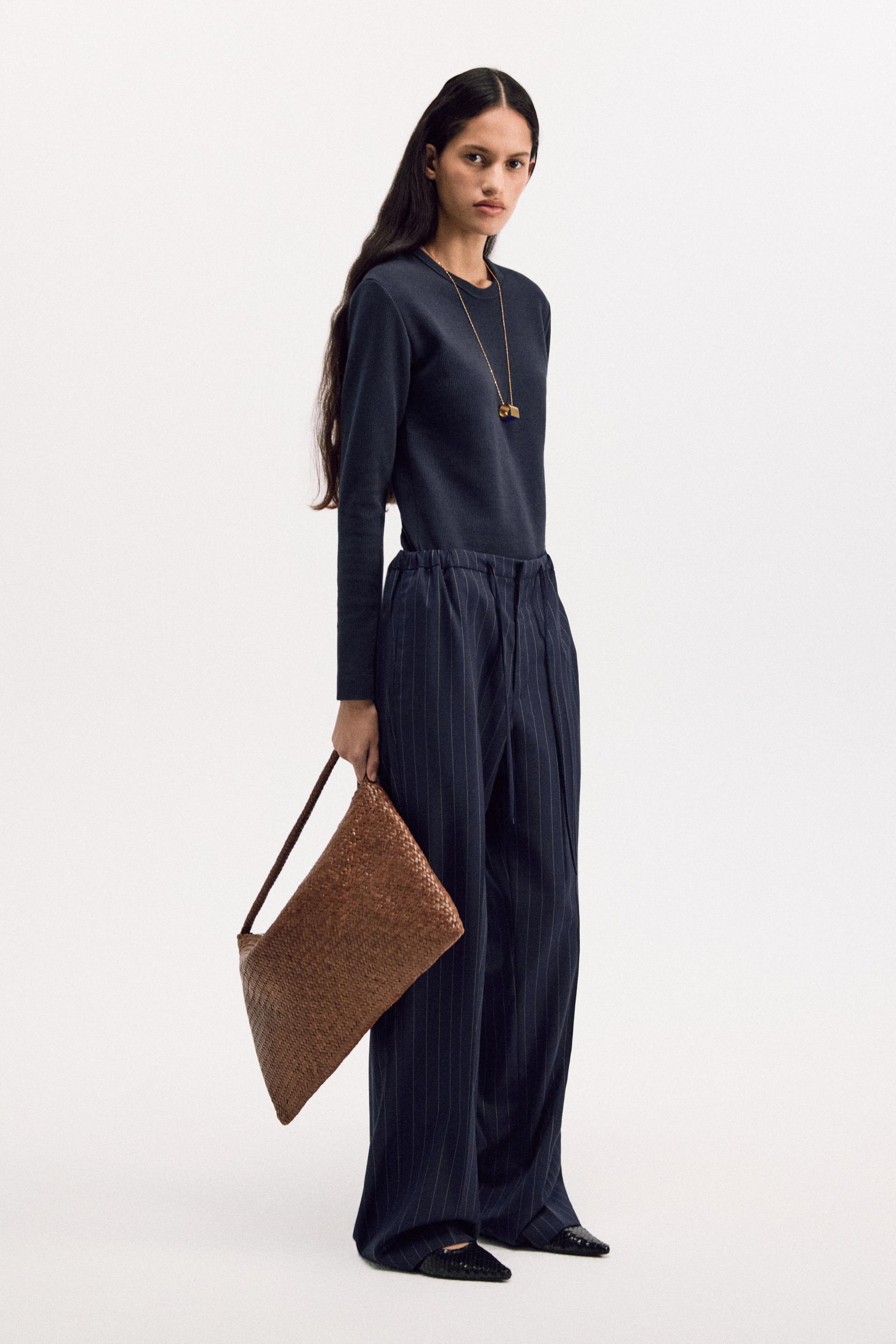 헤리티지 아이템을 타일레의 실루엣으로 재구성한 와플 롱 슬리브 탑 입니다. 부드럽지만 견고한 와플 조직의 코튼 블랜드 소재에 레귤러 핏과 간결한 크루네크라인으로 완성했습니다. 후면부에는 핸드스티칭 레더 패치가 더해져 있습니다.