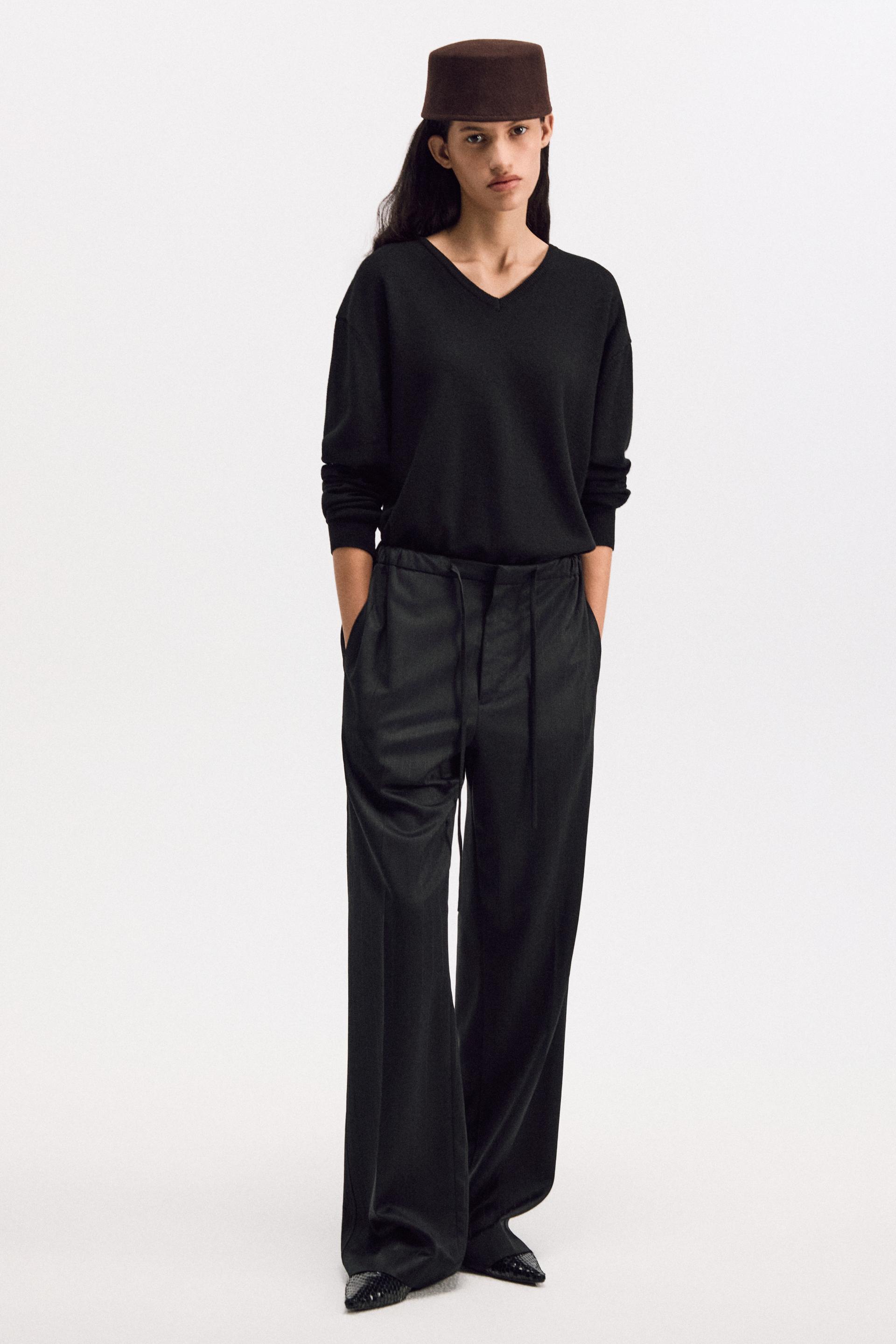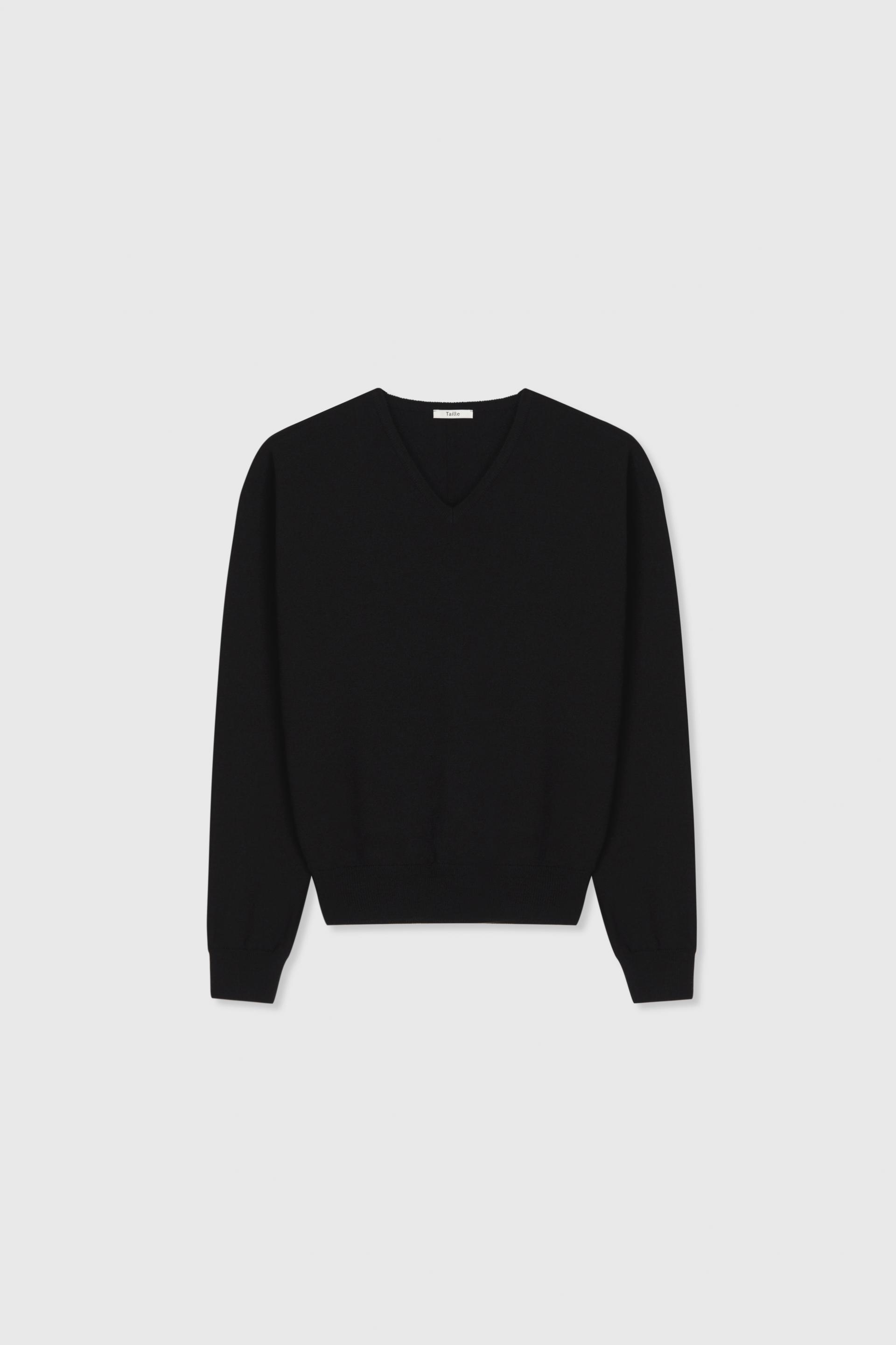 ROUEN WOOL TL CLASSIC V-NECK SWEATER BLACK