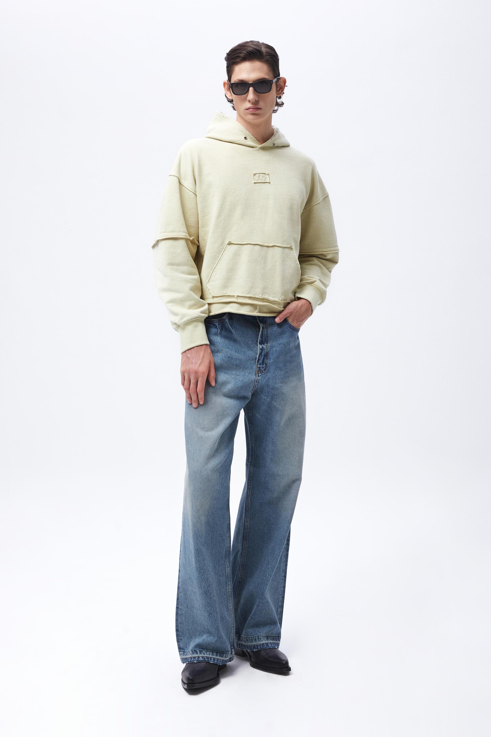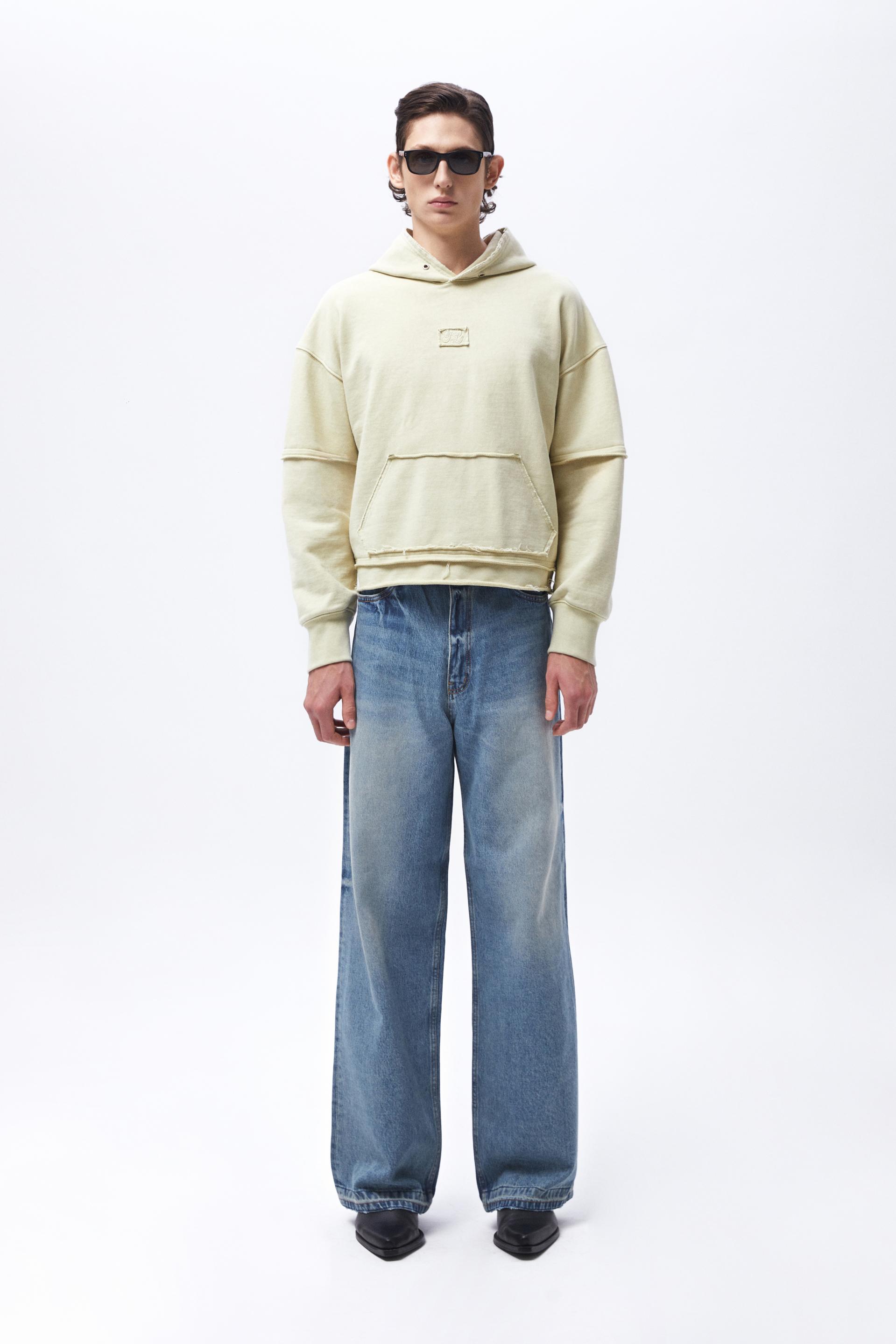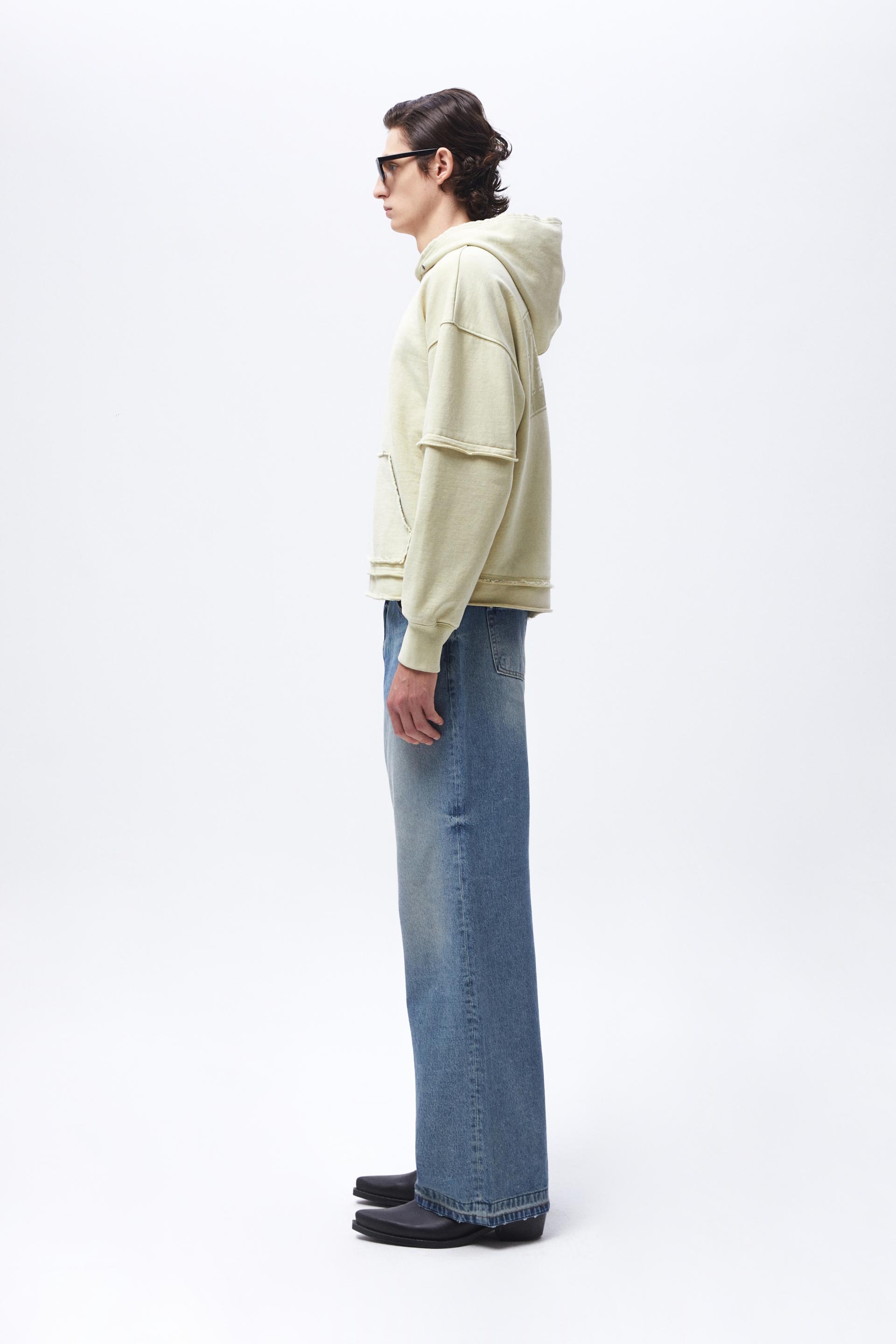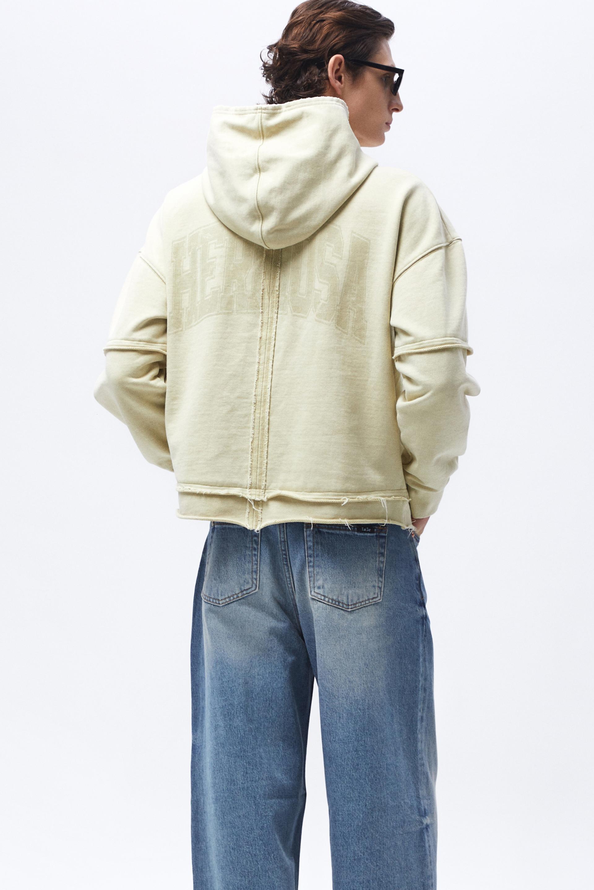빈티지 클럽 저지를 오마주한 박서 후디입니다. 여유있는 실루엣과 짧은 기장감, 피그먼트 다잉의 터프한 표현이 인상적인 제품입니다. 모든 시접은 로우 엣지 마감하여 일관된 분위기를 형성하고, 후면부에는 경년의 변화가 담긴 'HERMOSA' 프린팅이 더해졌습니다.