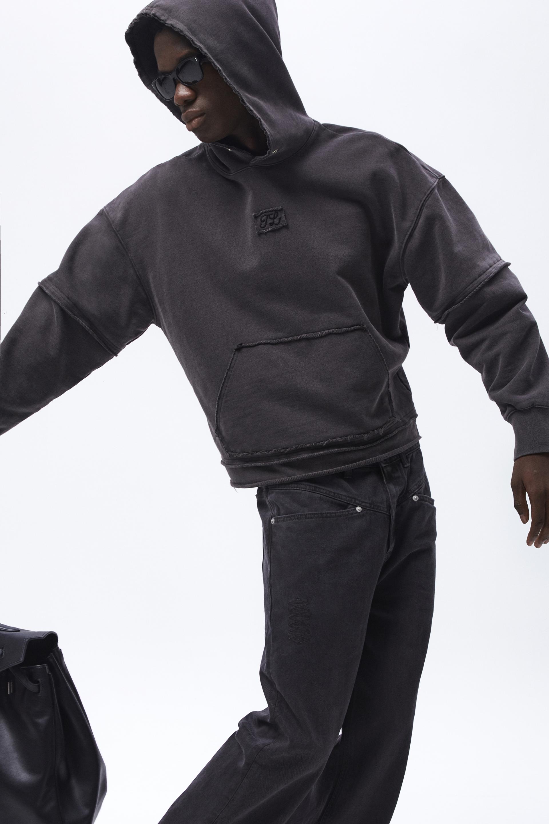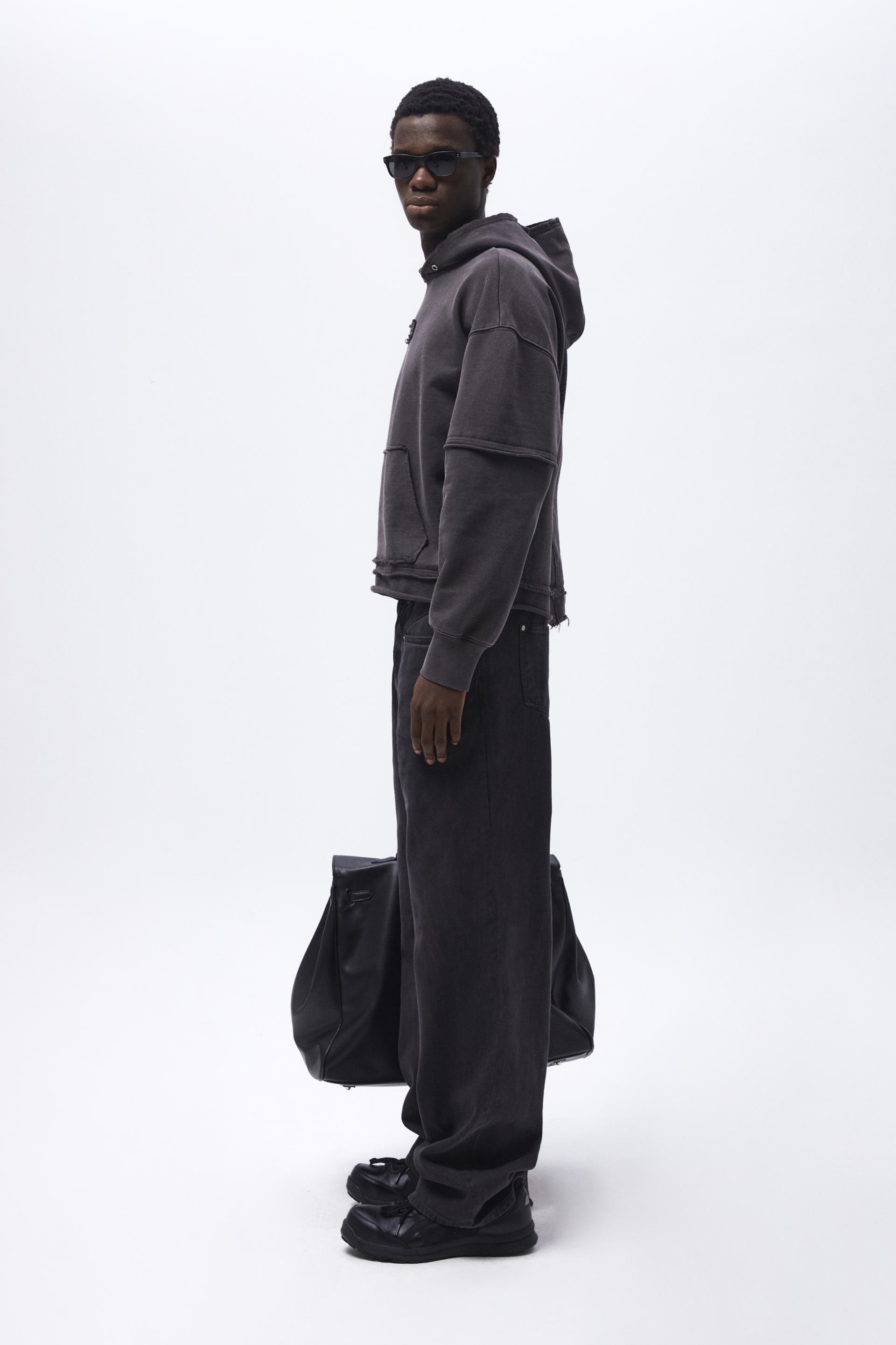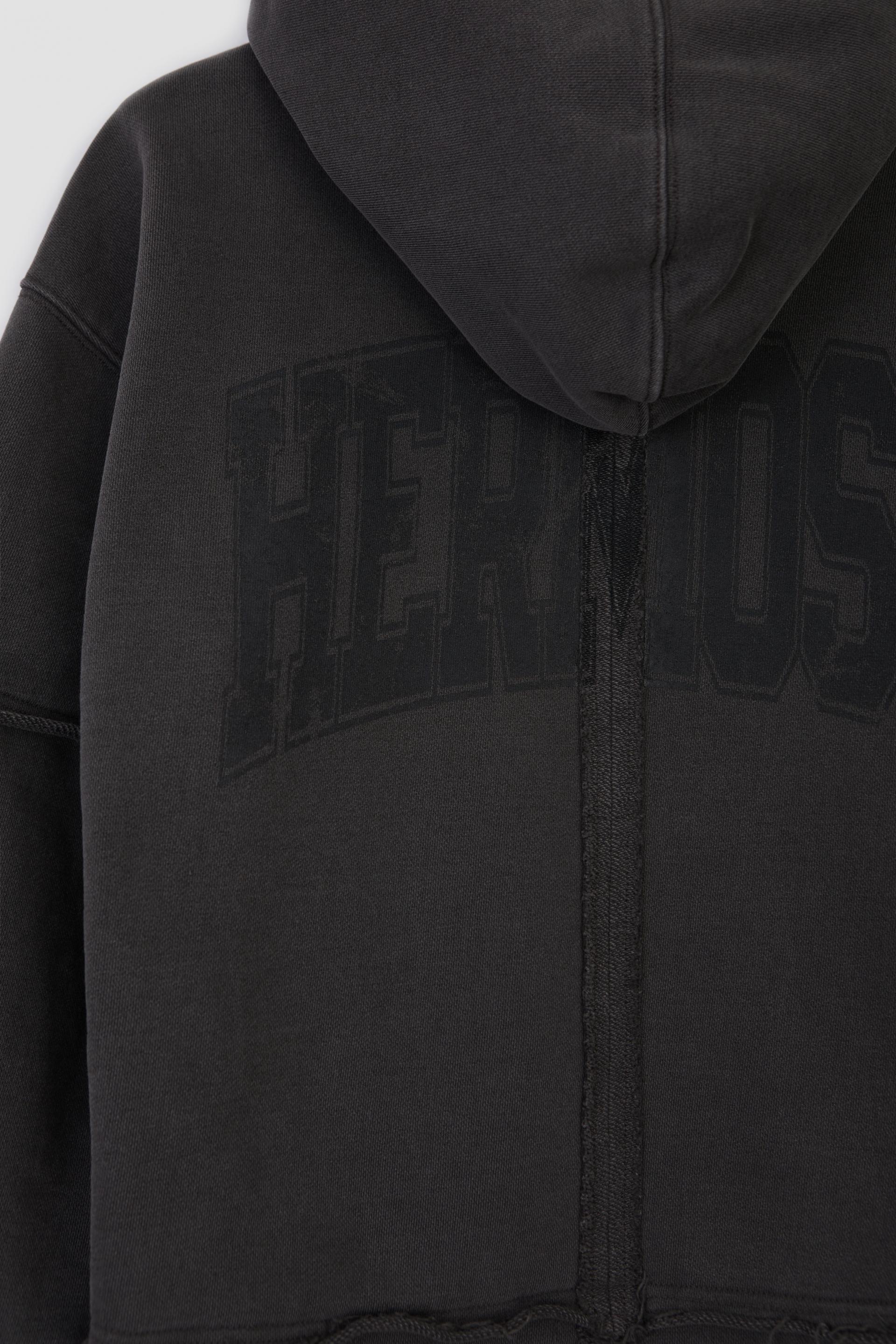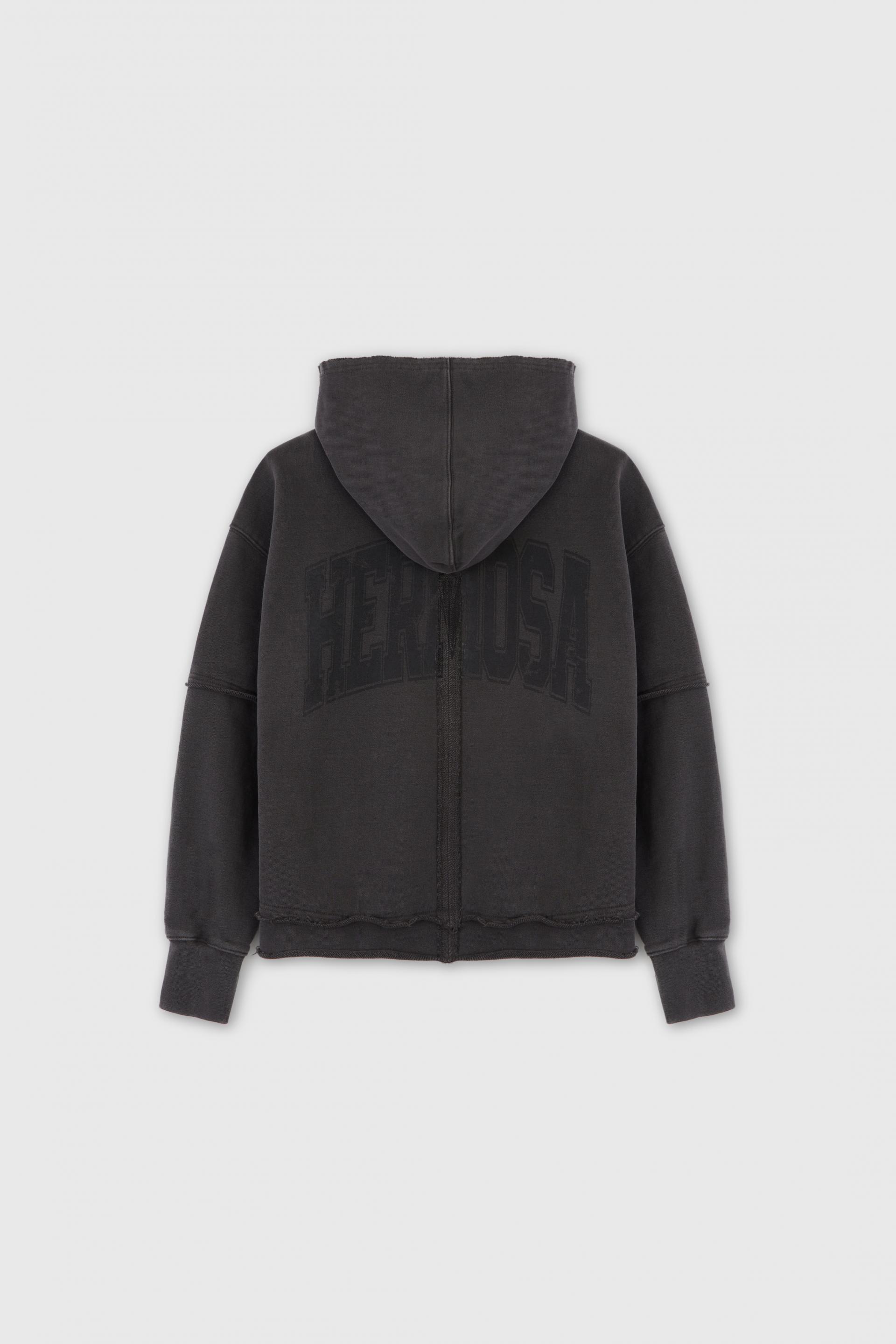 빈티지 클럽 저지를 오마주한 박서 후디입니다. 여유있는 실루엣과 짧은 기장감, 피그먼트 다잉의 터프한 표현이 인상적인 제품입니다. 모든 시접은 로우 엣지 마감하여 일관된 분위기를 형성하고, 후면부에는 경년의 변화가 담긴 'HERMOSA' 프린팅이 더해졌습니다.