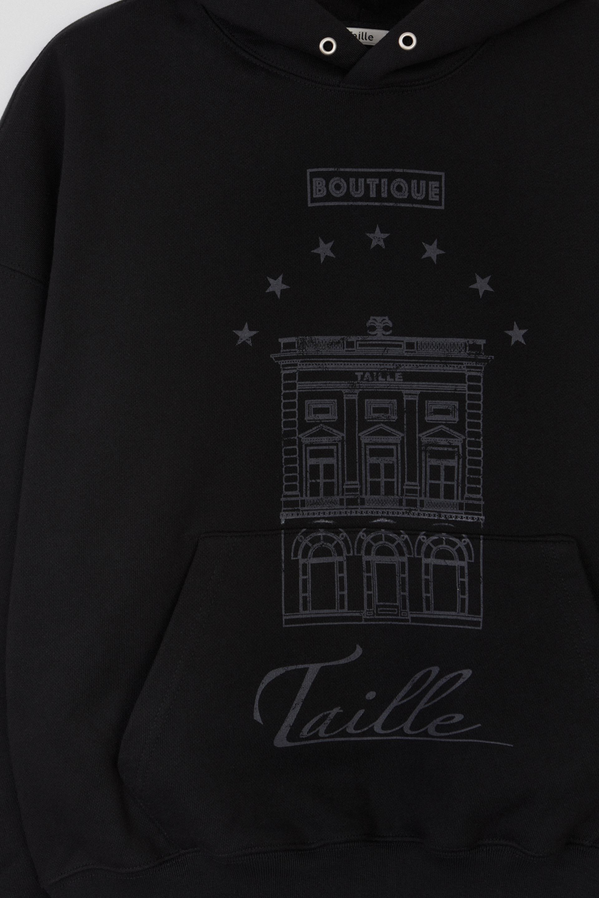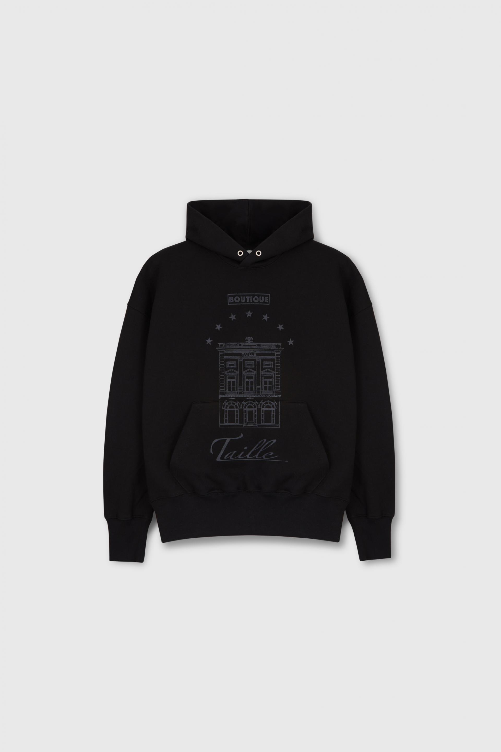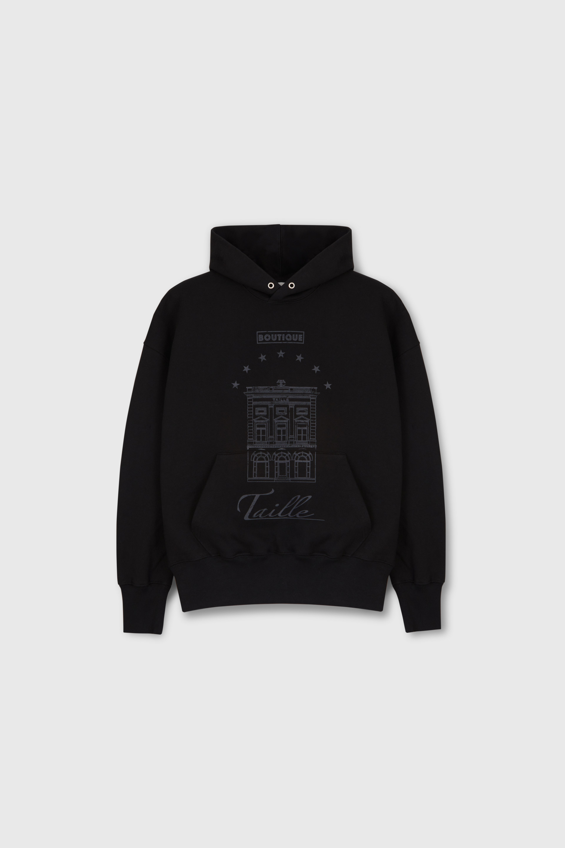 타일레 시그니처 에센셜 컬렉션 로고 후디입니다. 750g 프렌치 테리 코튼을 사용, 엔자임(Enzyme) 가공과 유연가공을 거쳐 늘어짐이 적으며 정갈하고 매끄러운 표면이 특징입니다. 드롭 숄더에 오버사이즈 실루엣, 길지 않은 기장감이며 가슴 중앙 부티크 로고가 프린트 되었습니다. 소매와 밑단 등 내구성을 요하는 부분은 바텍을 더했습니다.