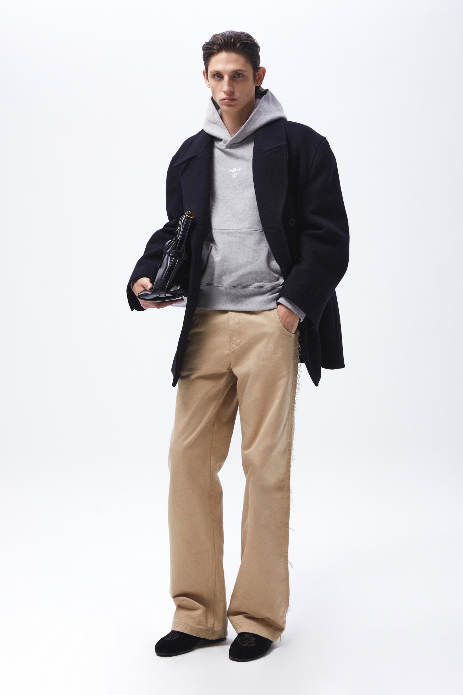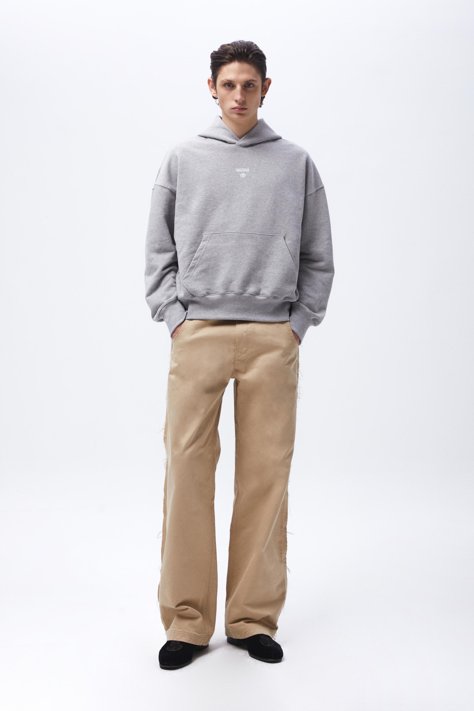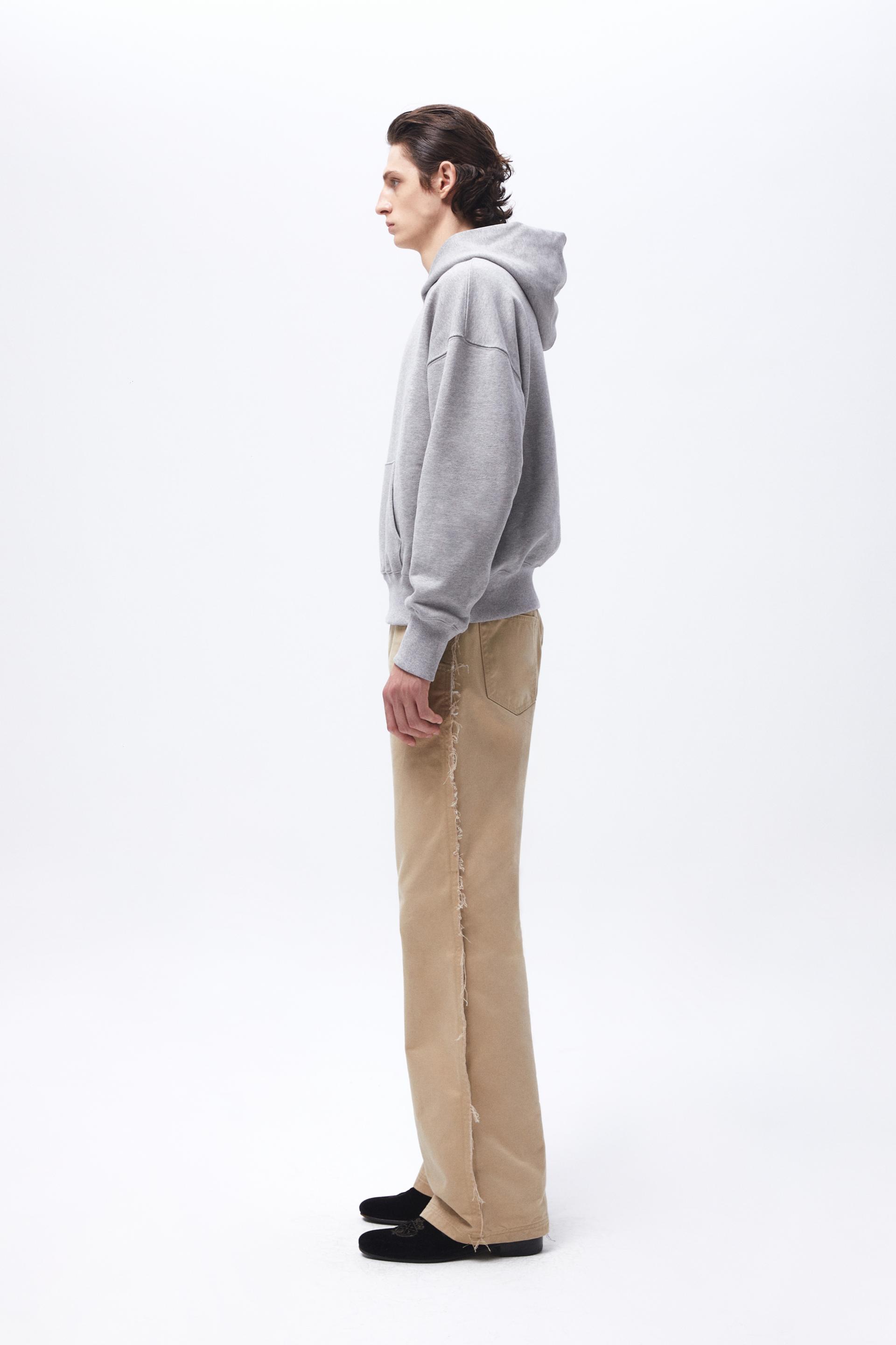 감각적인 디자인의 트라우저 입니다. 탄탄한 조직감의 헤비 트윌 코튼이 사용되었으며, 평면으로 봉제한 입체적 사이드 라인과 벨트라인은 로우 엣지 마감되어 내추럴한 분위기를 연출합니다. 와이드 레그 실루엣에 하이 라이즈 포멧, 모든 봉제라인은 더블 체인 스티치로 마감하였습니다.