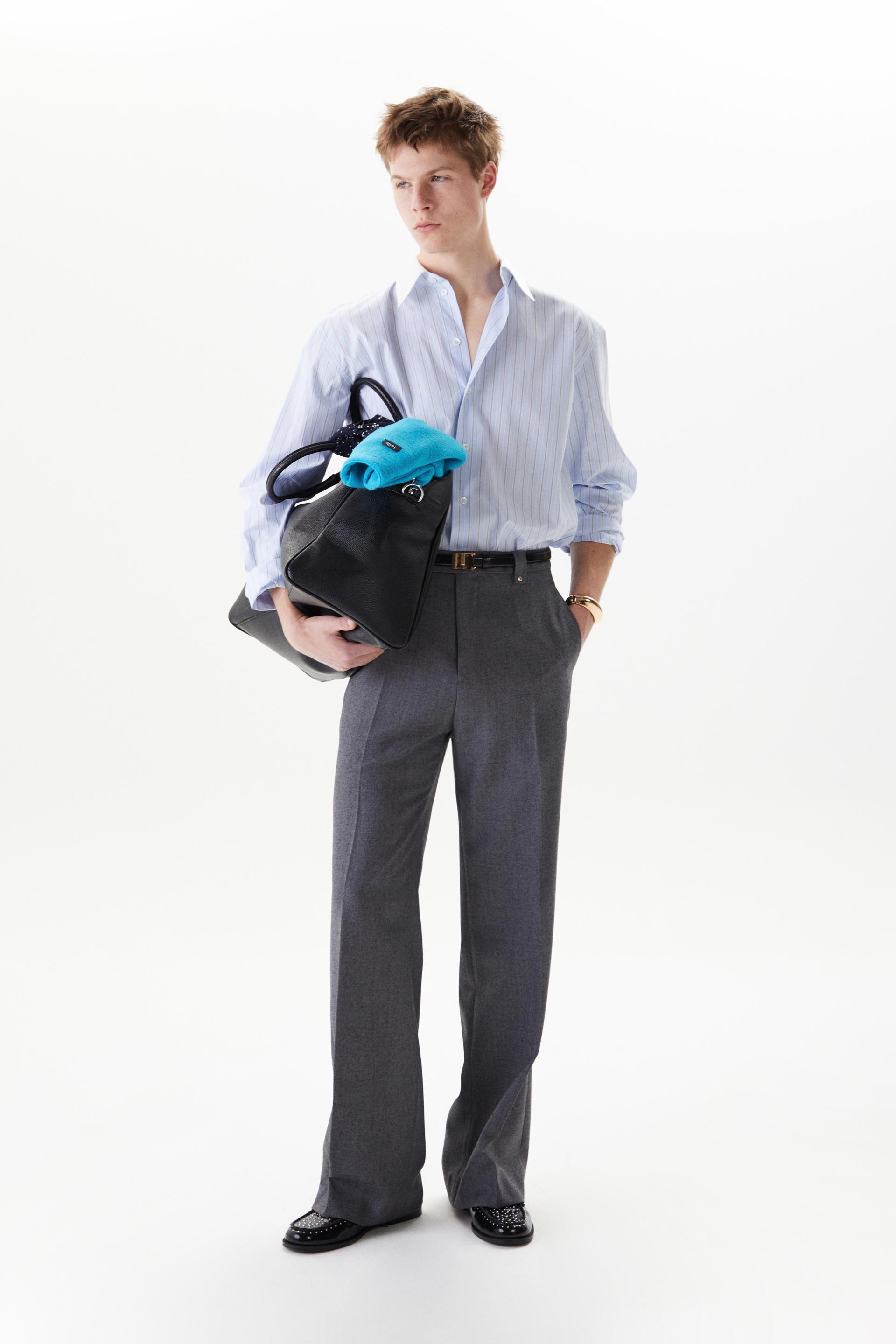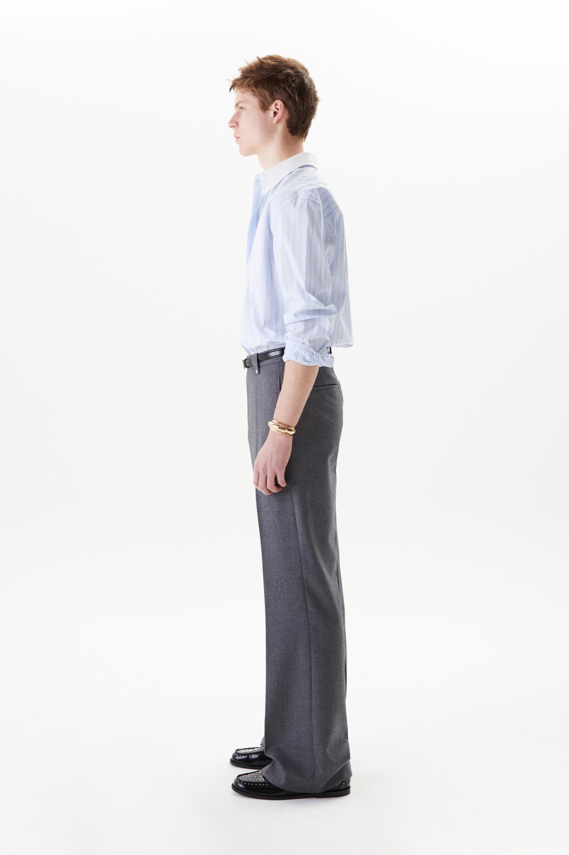 60년대 카나비 스트리트 룩에서 영감을 얻은 울 트라우저 입니다. 클래식 그레이 컬러에 블랙 넵(Nep) 원사가 더해진 유니크한 울 혼방 패브릭을 사용했습니다. 밑단으로 넓어지는 와이드 플레어 실루엣과 벨트 루프에 더해진 콘초 스터드가 세련된 대비를 연출합니다. 내부 마감까지 테일러드 메이킹으로 완성한 하이 퀄리티 클래식 아이템입니다.