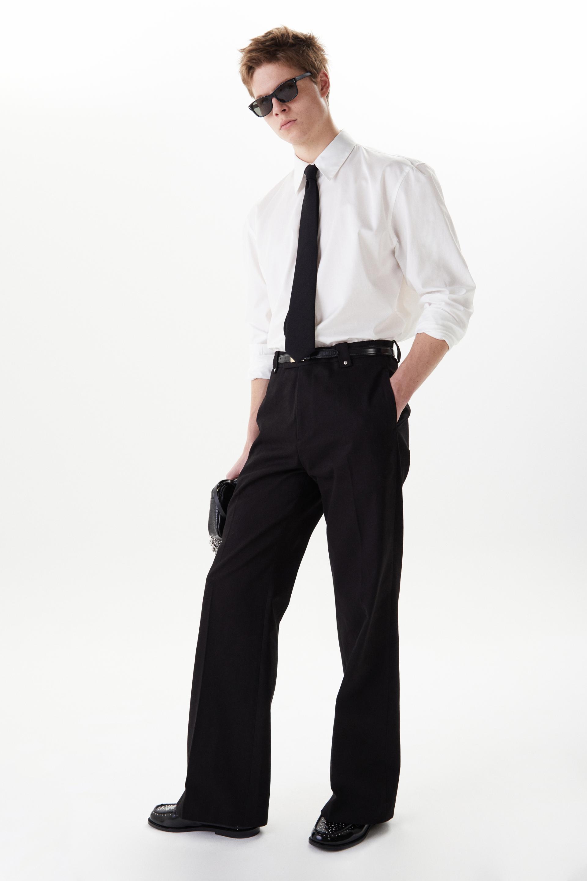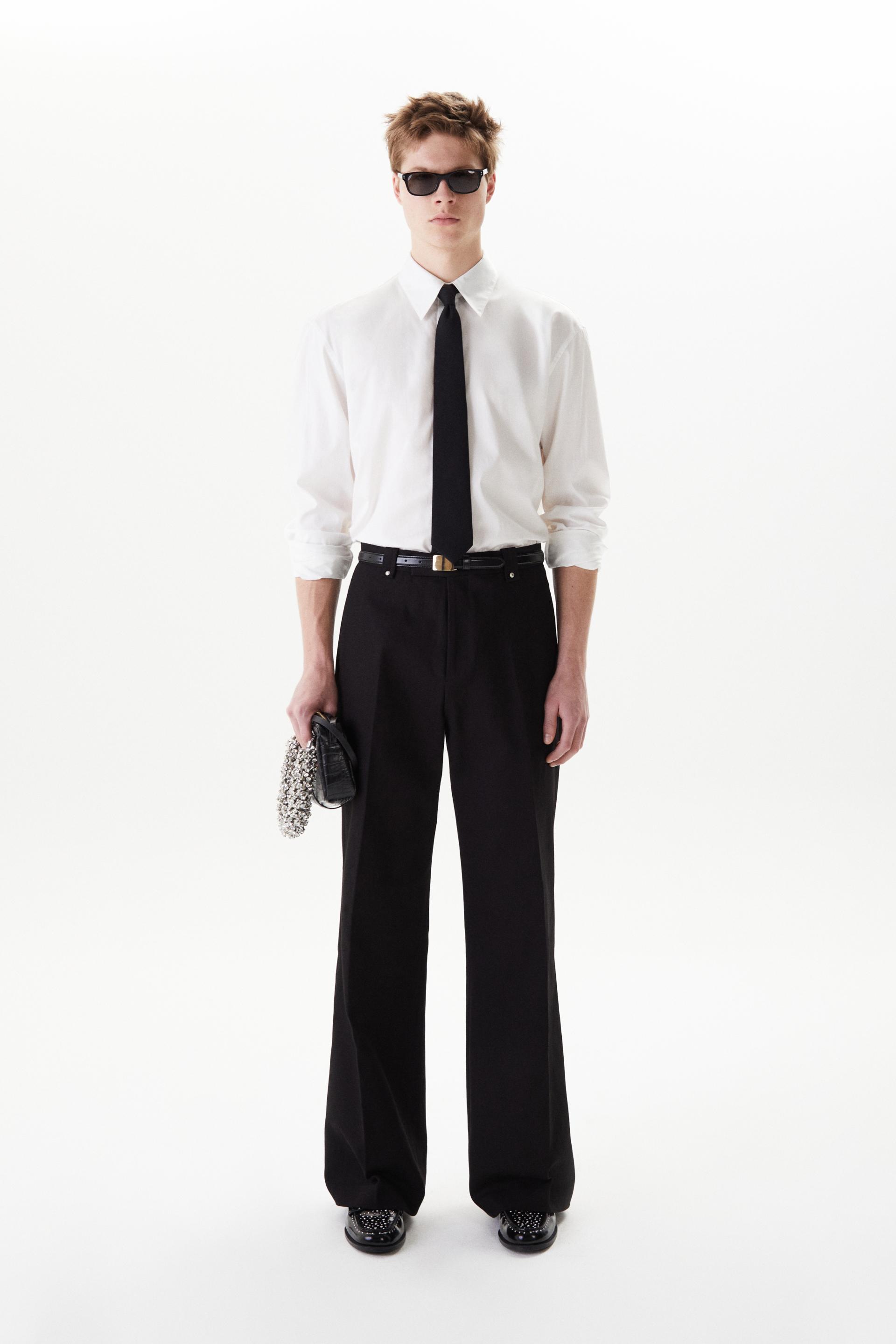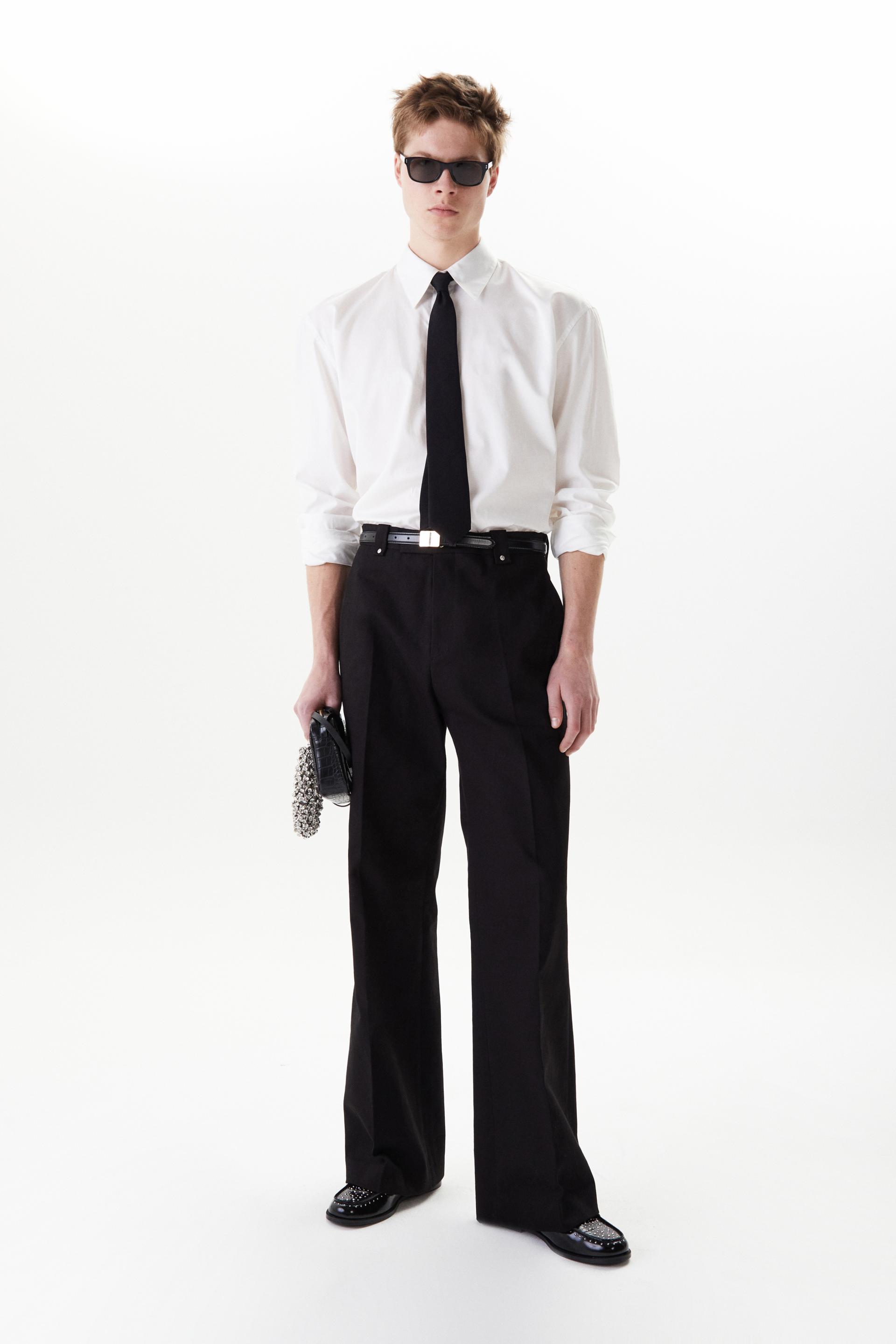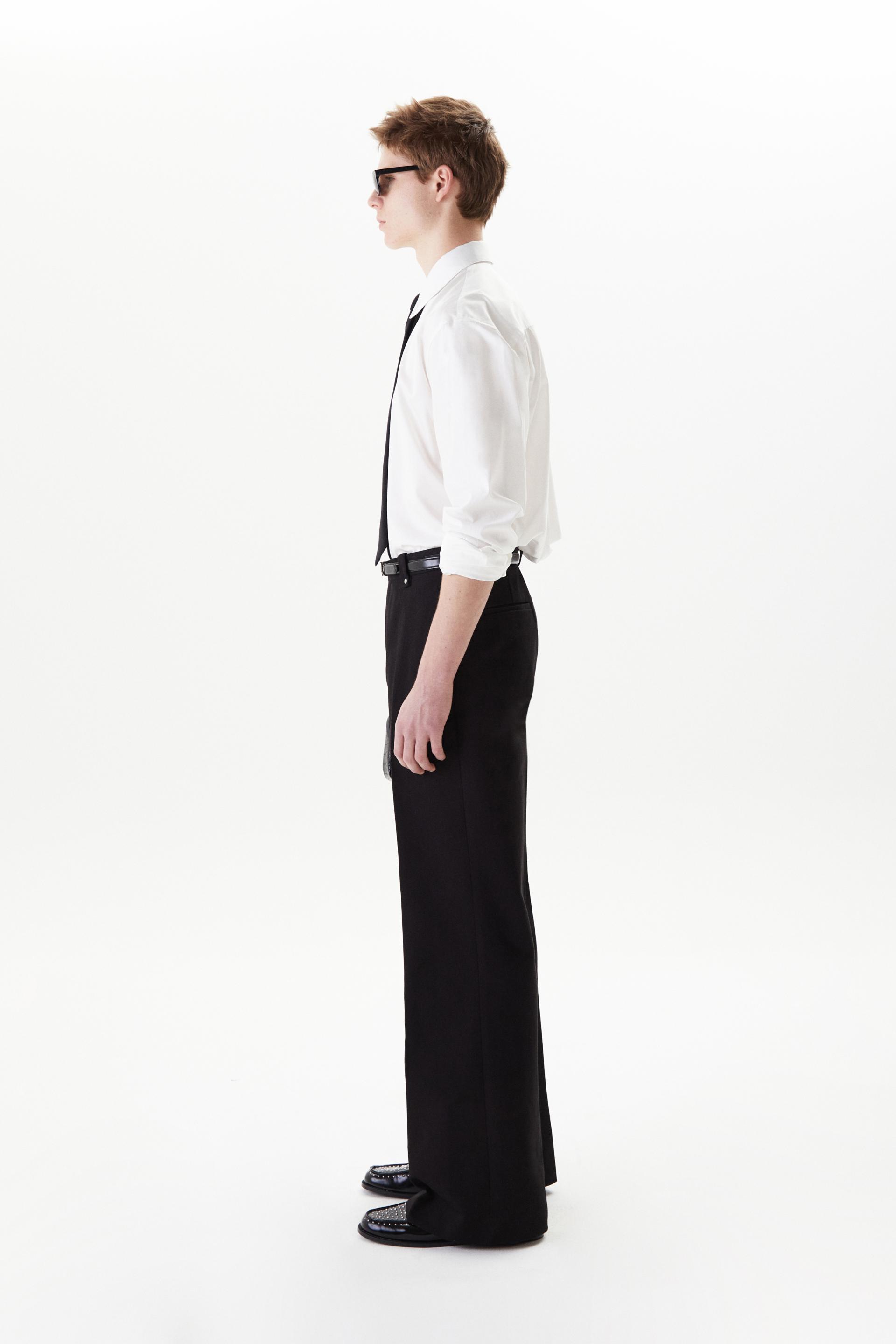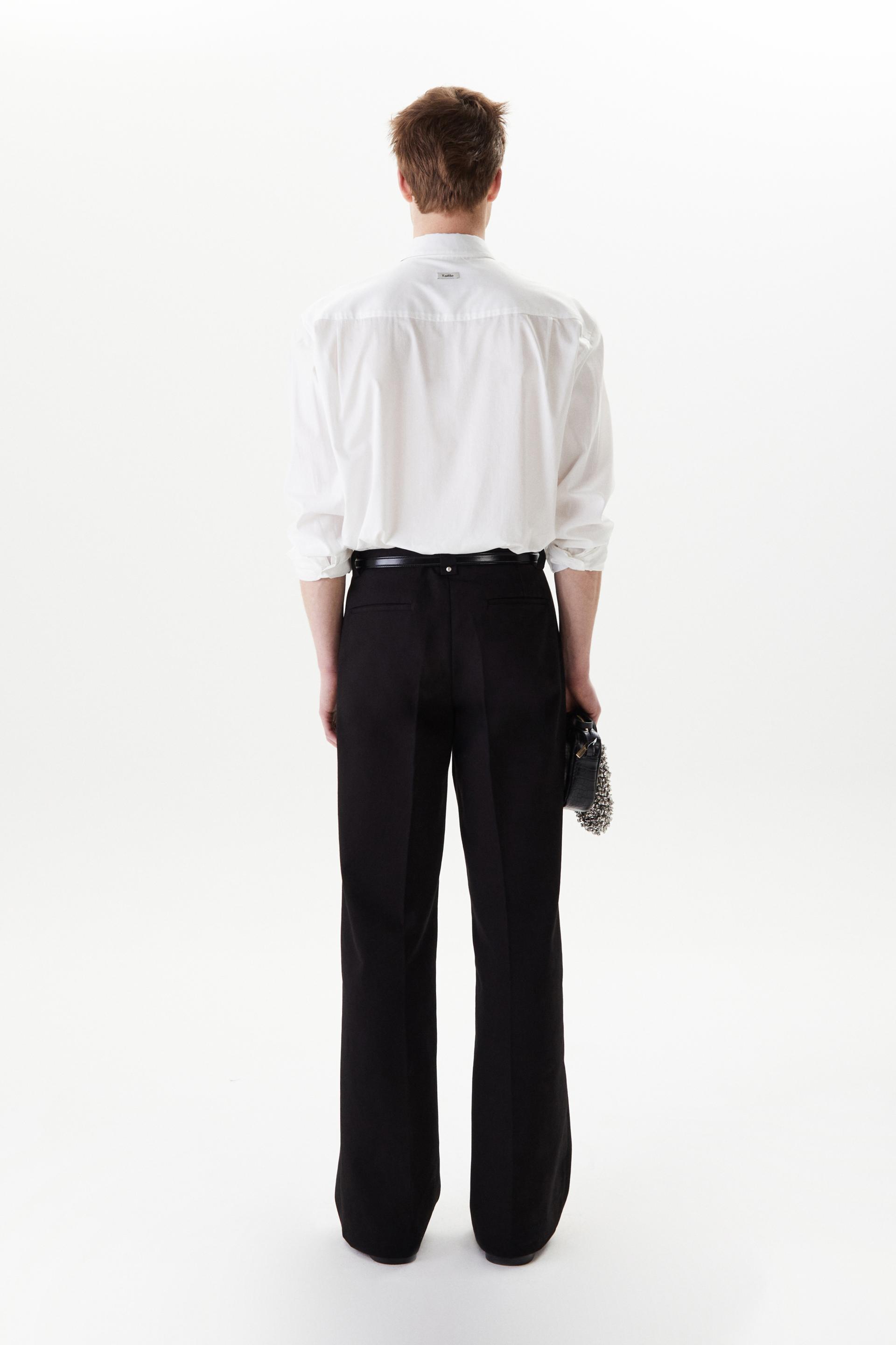 60년대 카나비 스트리트 룩에서 영감을 얻은 울 트라우저 입니다. 활용도 높은 코튼 트윌 패브릭을 사용했습니다. 밑단으로 넓어지는 와이드 플레어 실루엣과 벨트 루프에 더해진 콘초 스터드가 세련된 대비를 연출합니다. 내부 마감까지 테일러드 메이킹으로 완성한 하이 퀄리티 클래식 아이템입니다.