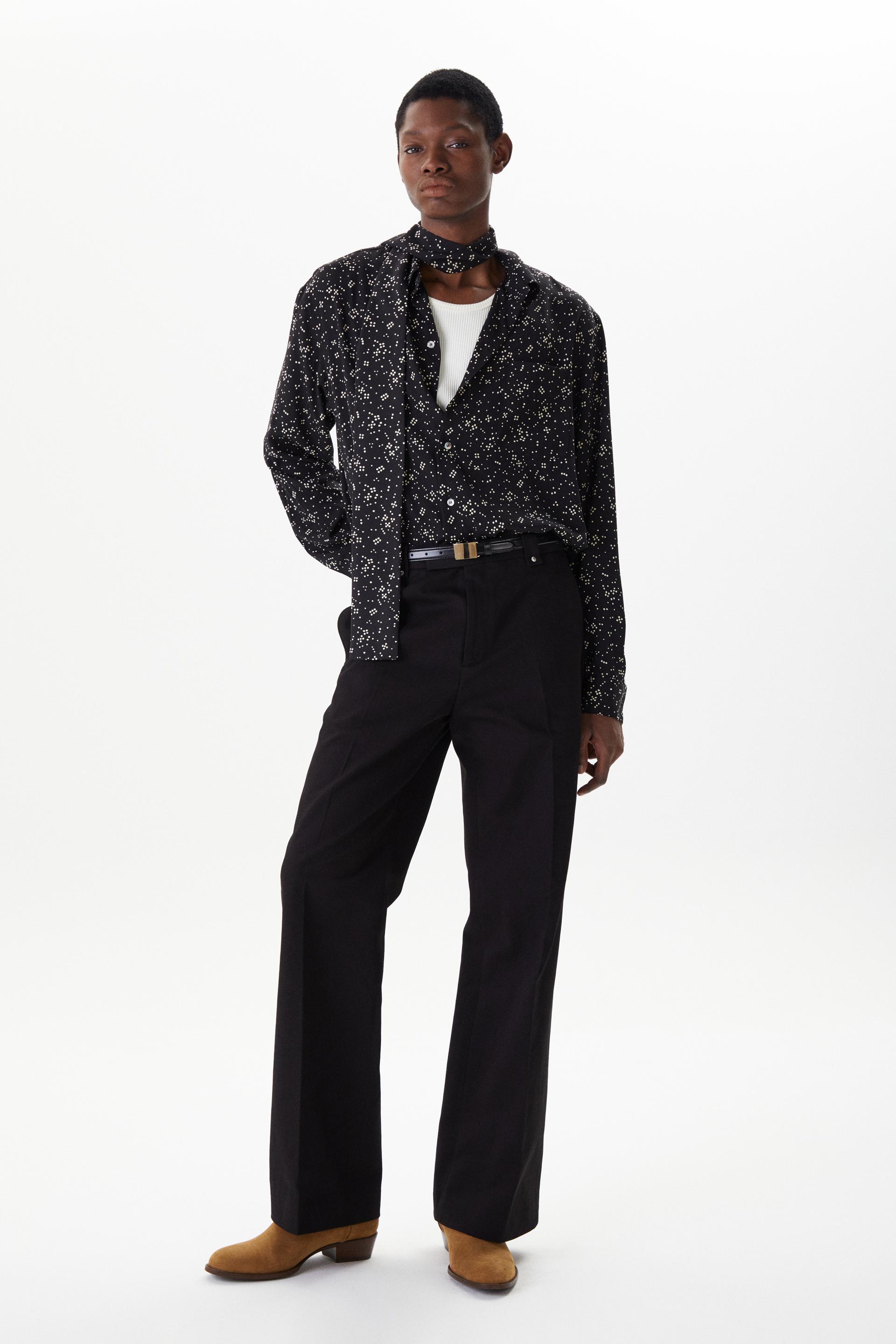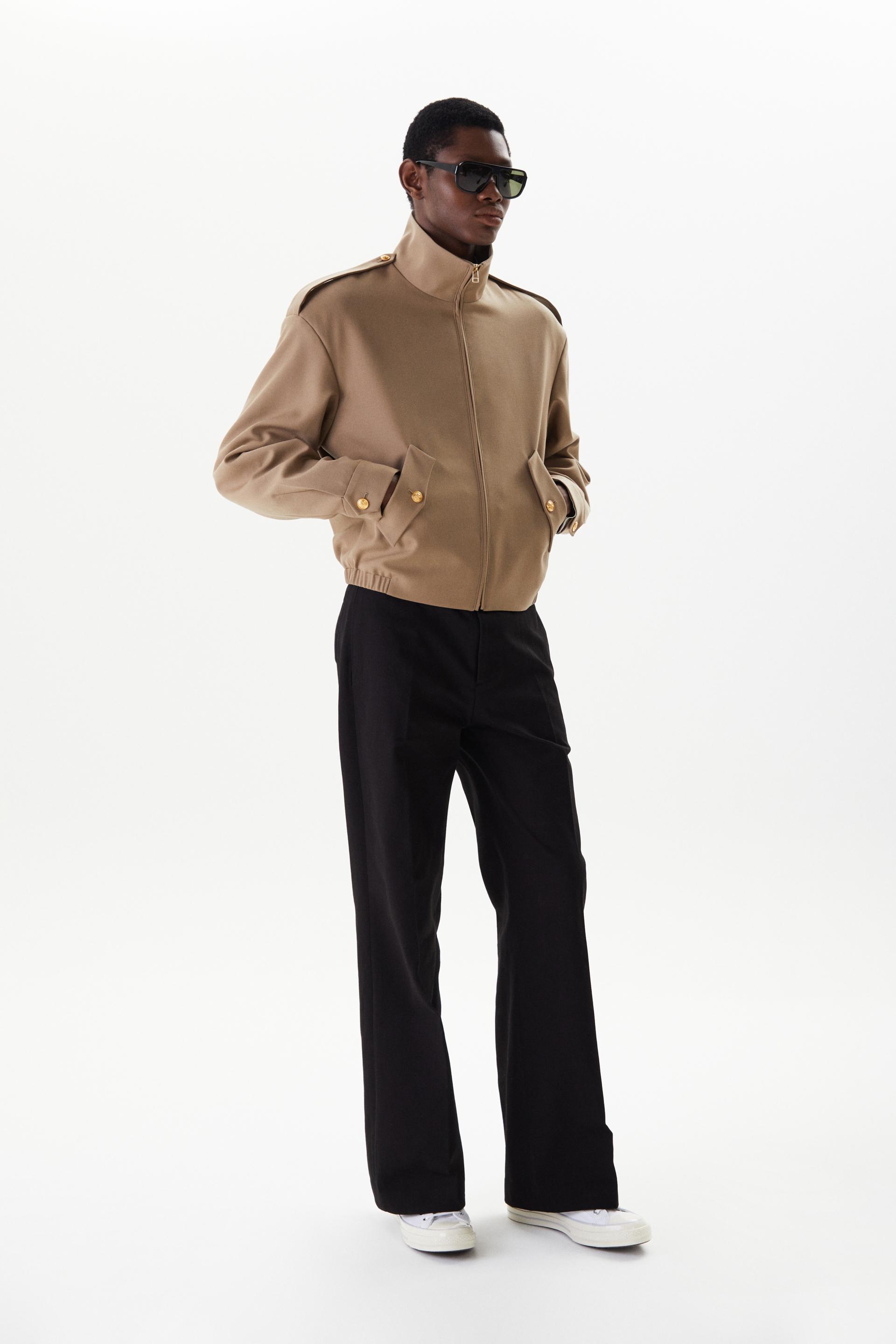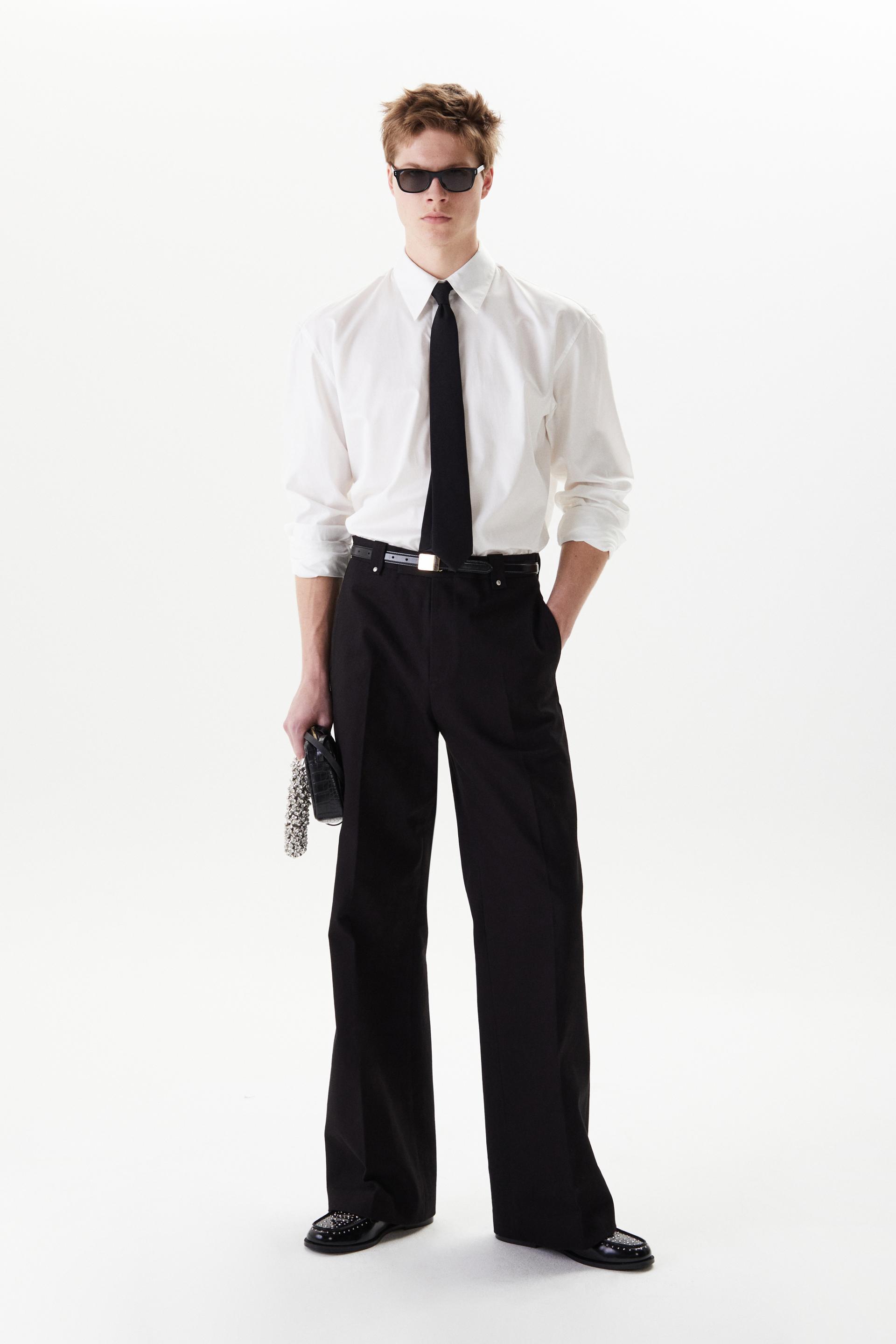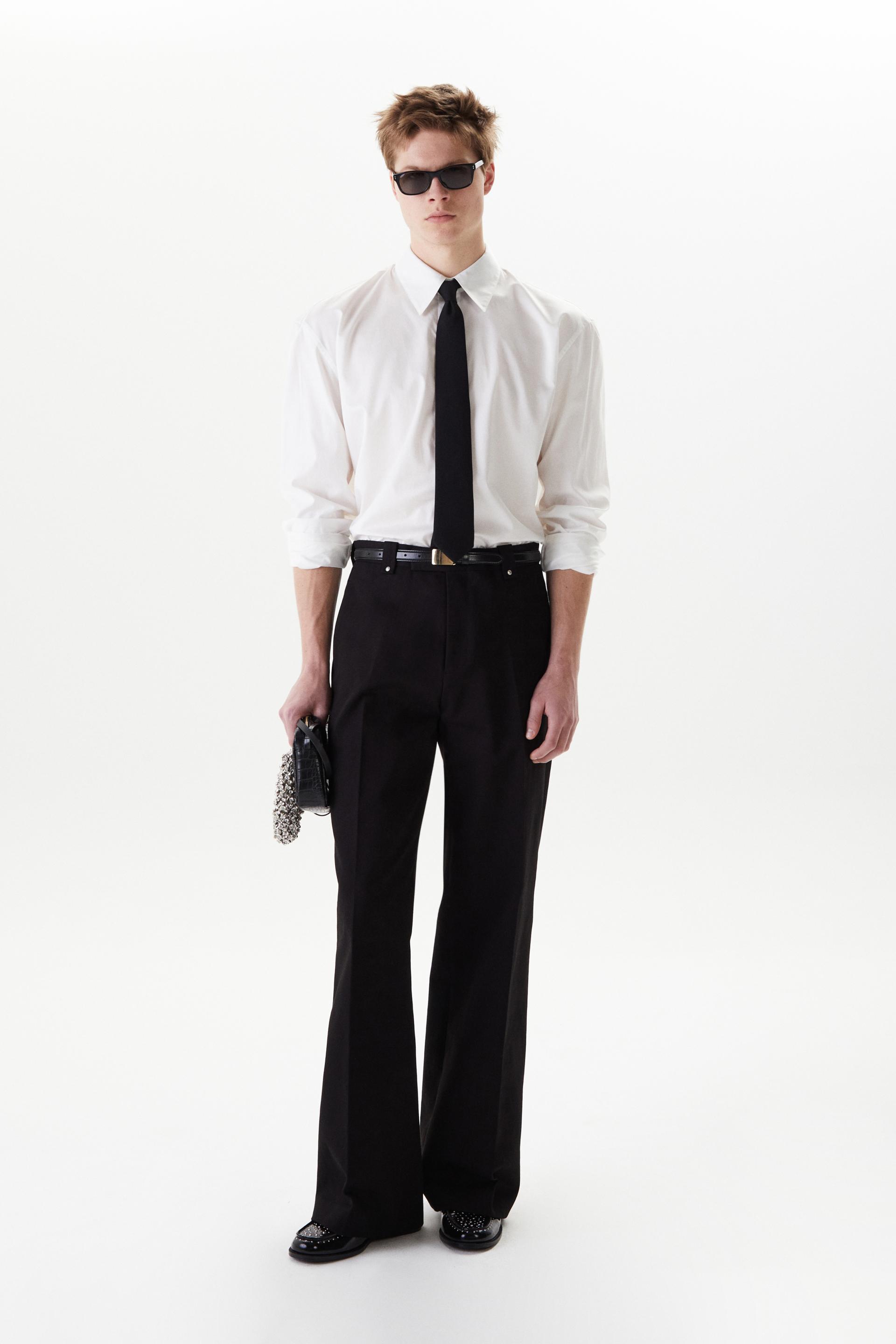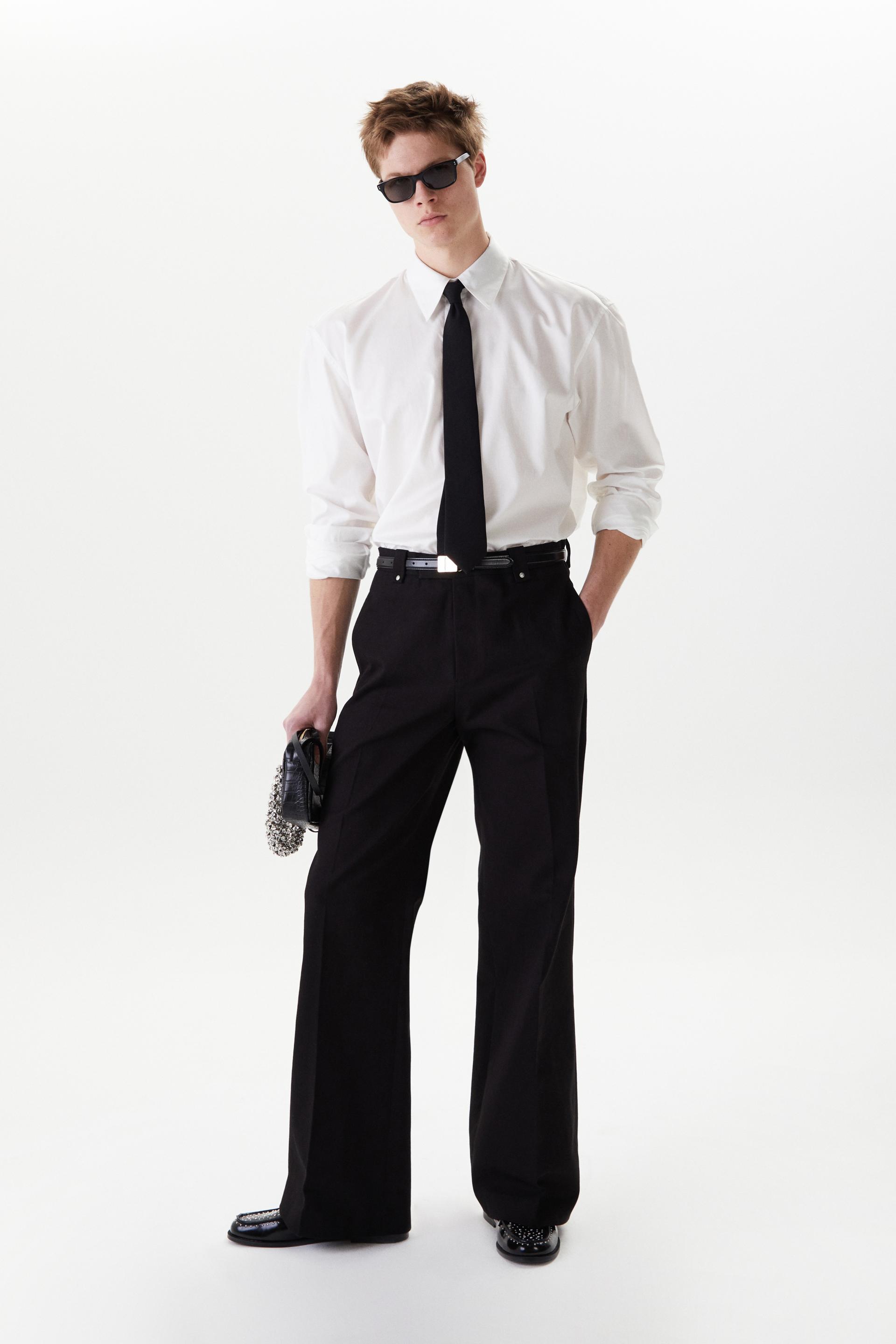 60년대 카나비 스트리트 룩에서 영감을 얻은 울 트라우저 입니다. 활용도 높은 코튼 트윌 패브릭을 사용했습니다. 밑단으로 넓어지는 와이드 플레어 실루엣과 벨트 루프에 더해진 콘초 스터드가 세련된 대비를 연출합니다. 내부 마감까지 테일러드 메이킹으로 완성한 하이 퀄리티 클래식 아이템입니다.