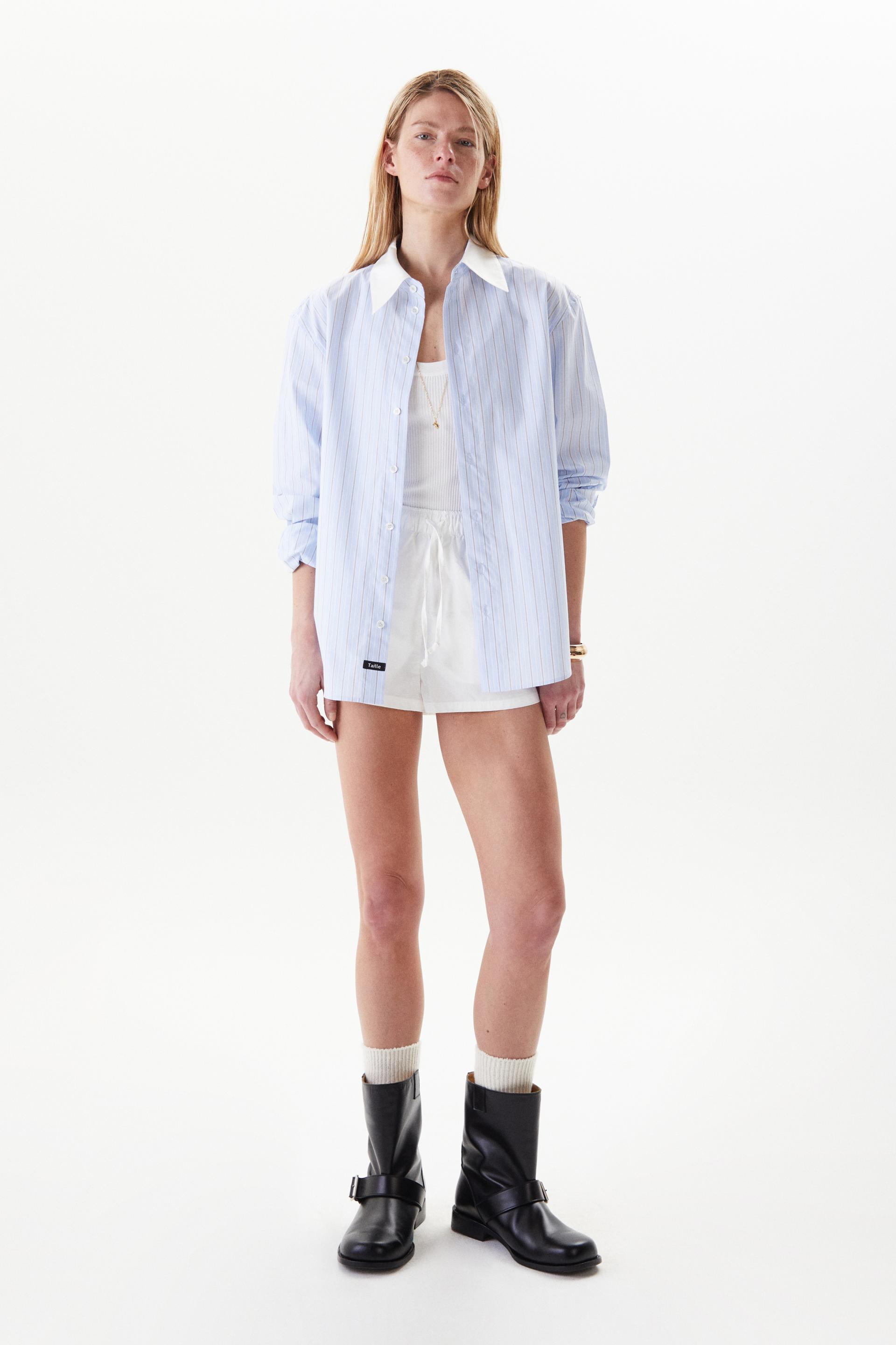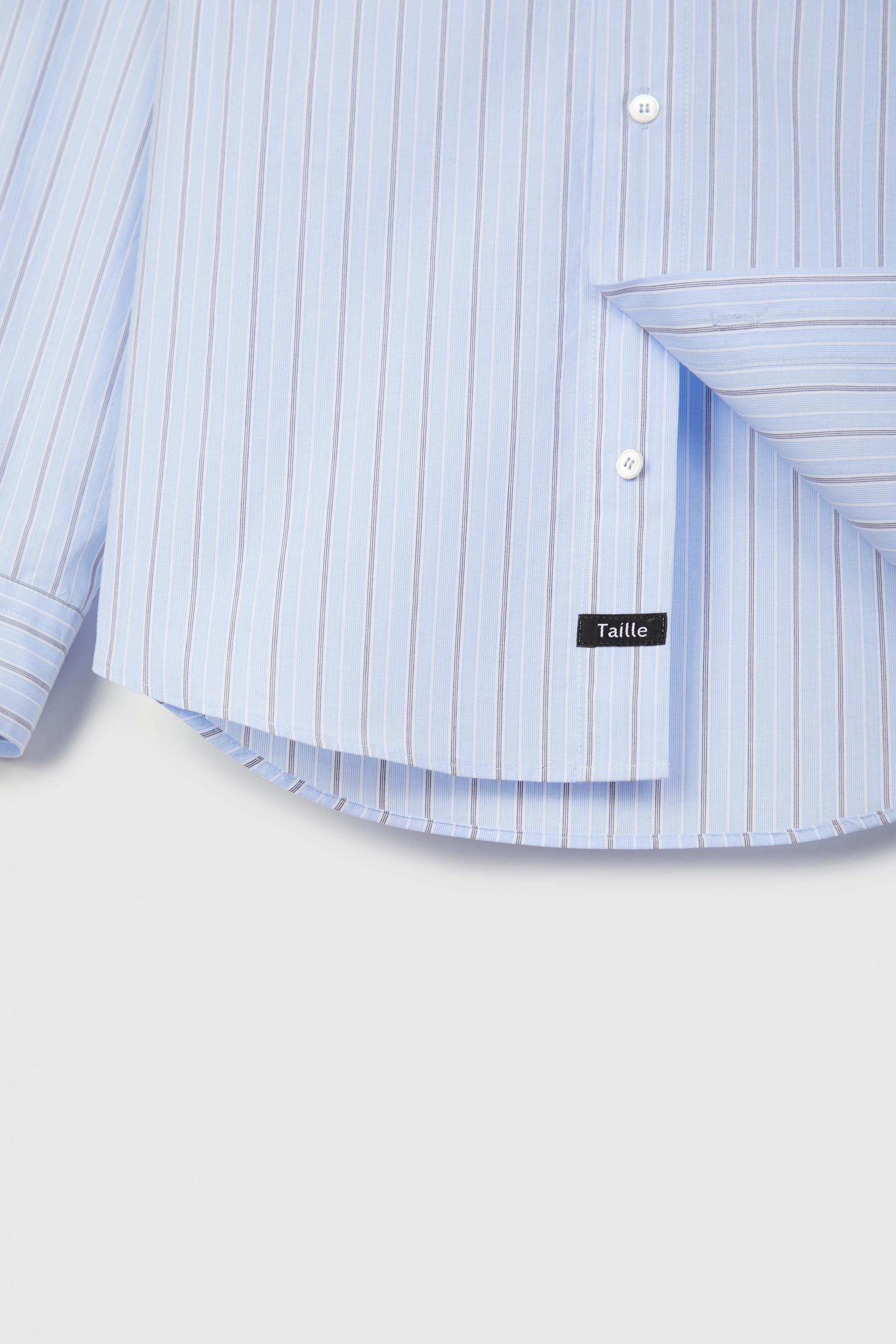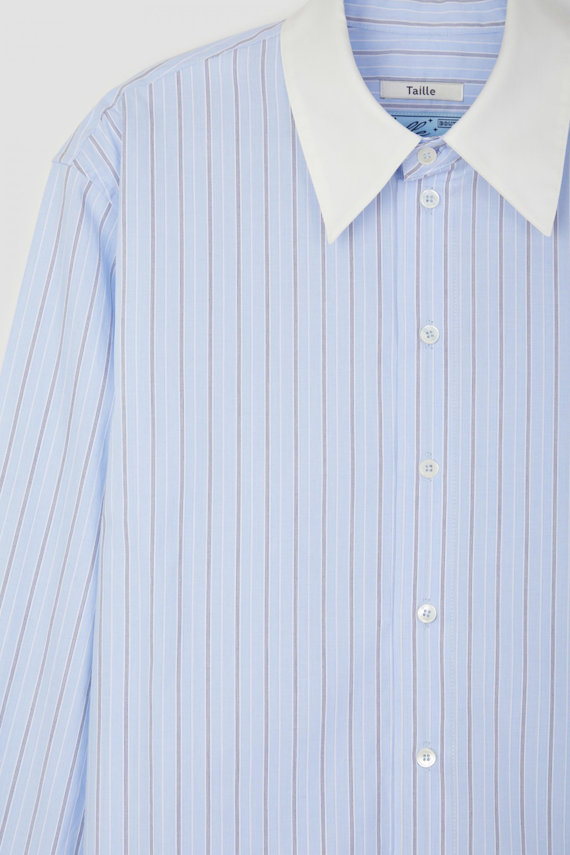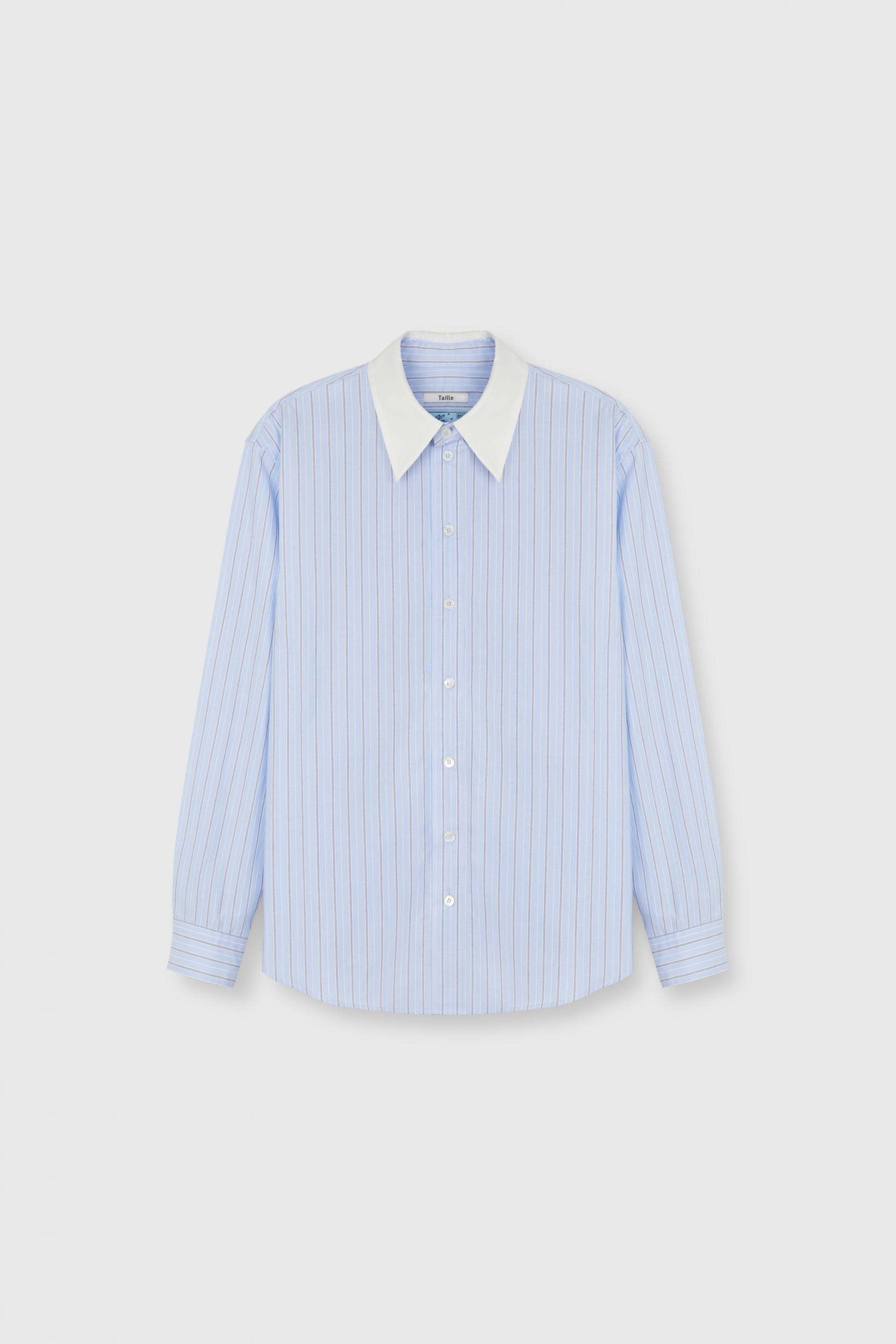 간결한 터치감의 스트라이프 코튼 셔츠입니다. 컨트라스트 칼라와 라이트 블루컬러 멀티 스트라이프가 유니크하고 세련된 분위기를 연출합니다. 스탠다드 칼라에 레귤러 핏 타입이며 싱글니들 테일러링 베이스로 봉제, 사용된 단추는 모두 천연 자개단추 입니다.