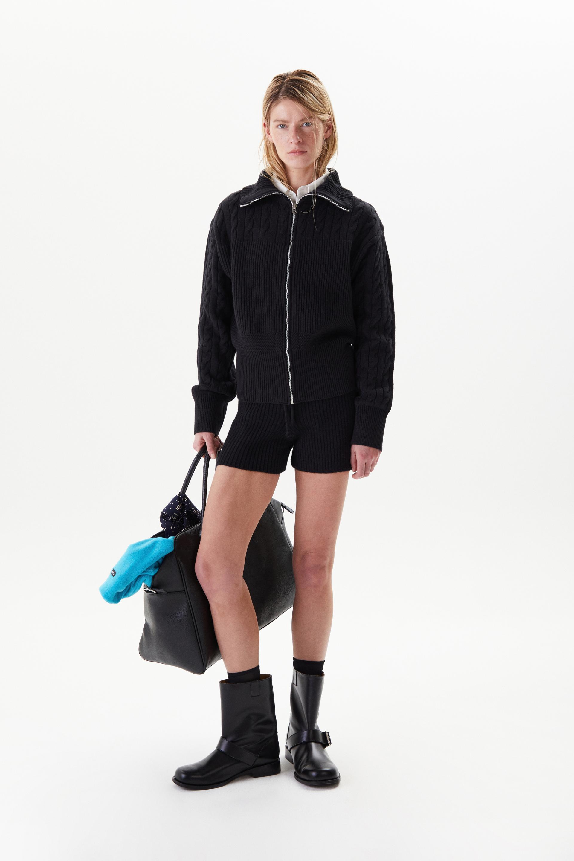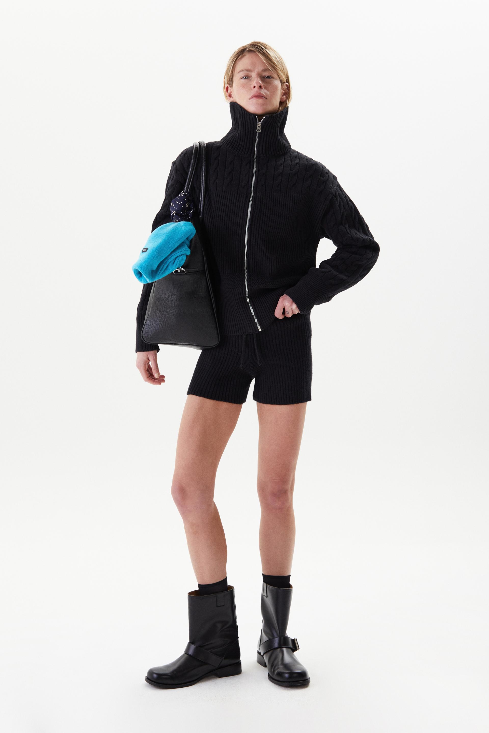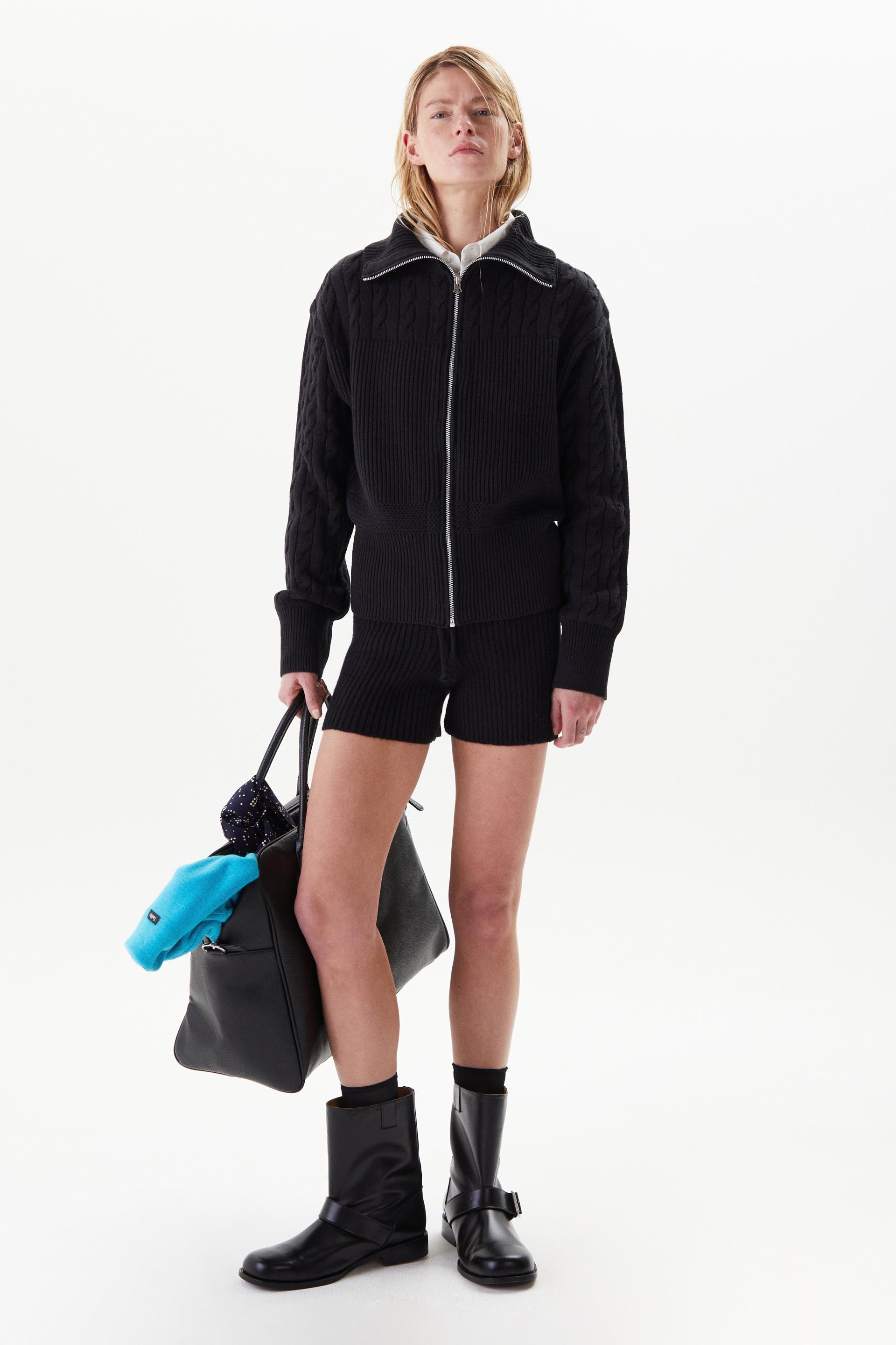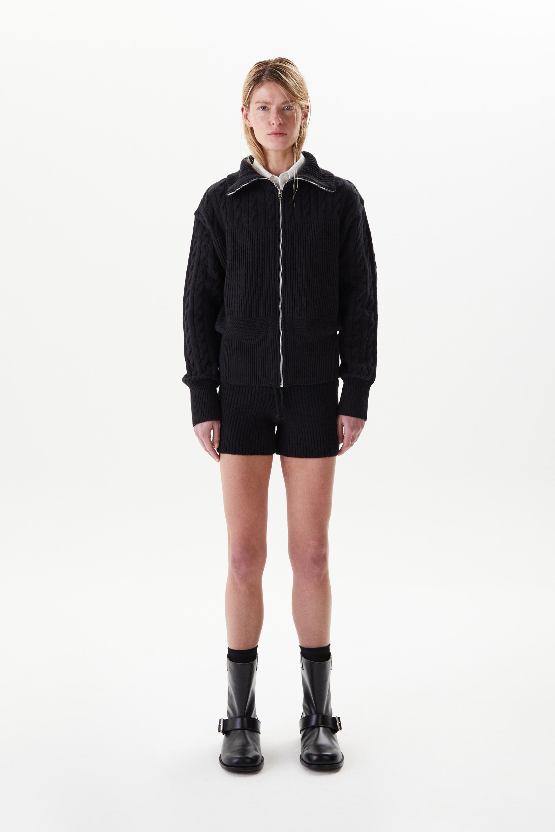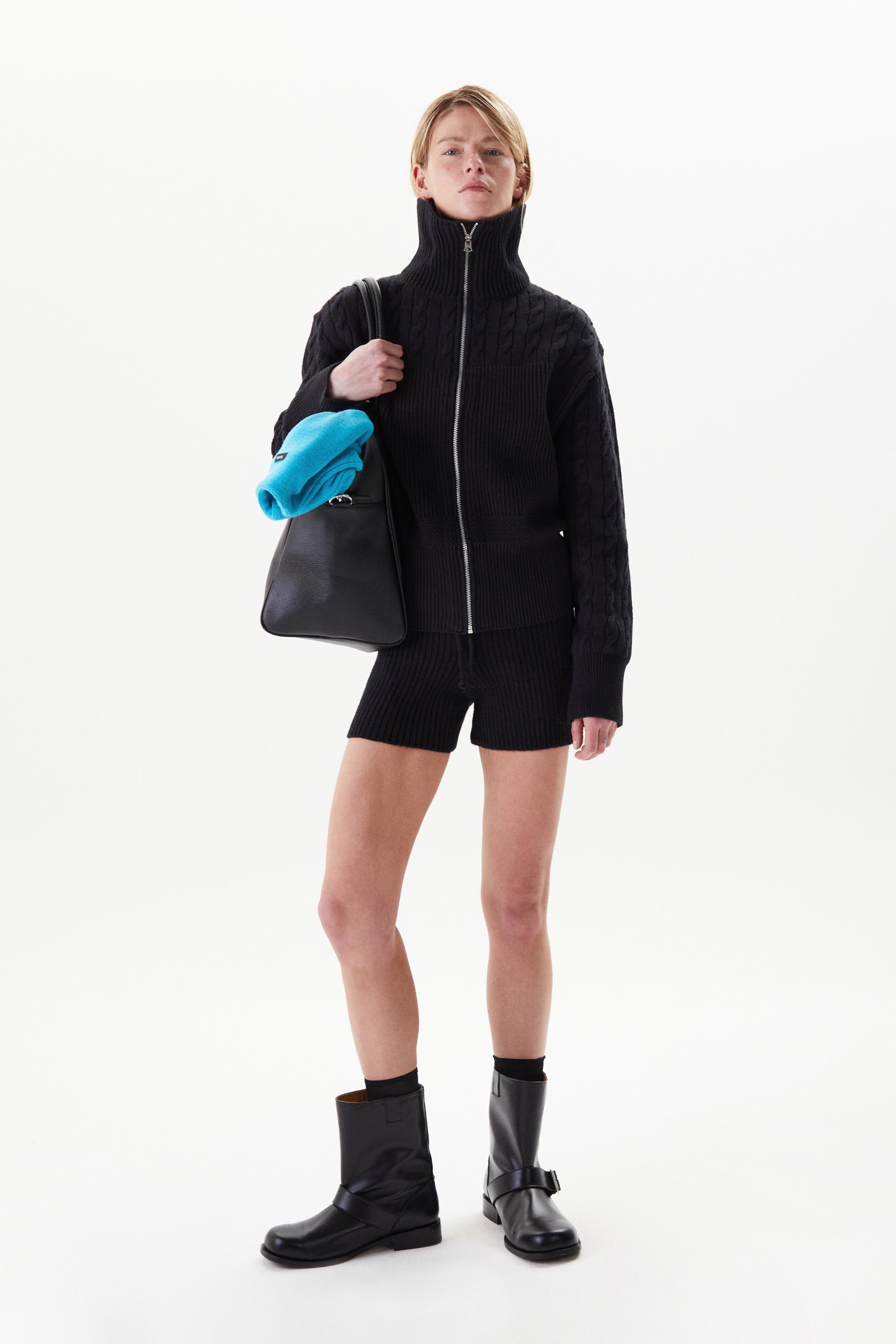 볼륨감이 돋보이는 로우게이지 하이넥 집업 스웨터입니다. 어깨부터 소매까지의 케이블 직조와 가슴 아래로 로열 립 직조를 멀티 편직한 시그니처 디자인으로 아이코닉한 실루엣이 특징입니다. 넓은 폭의 하이넥과 립, 터프한 짜임과 크롭한 기장감은 70년대 해안가 마을을 연상시킵니다. 뒷 목 중심에 타일레 블랙 라벨이 장식되어 있으며 볼드한 슬라이더와 YKK® 금속 지퍼를 사용했습니다.