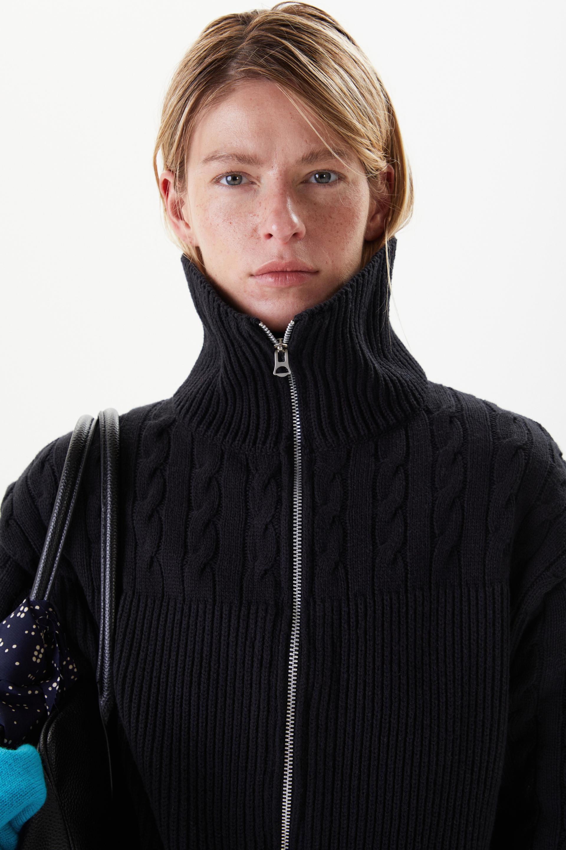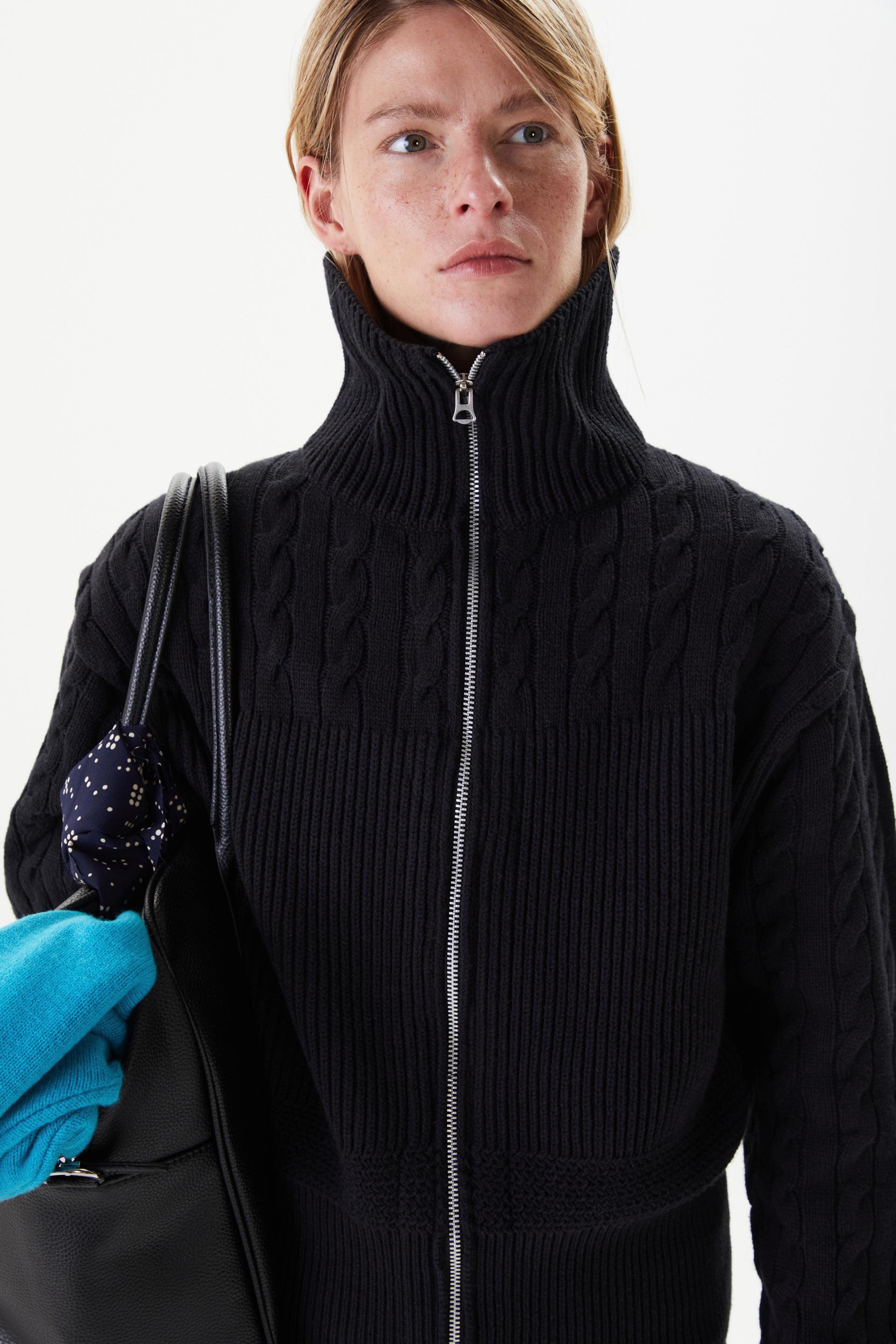 HIGH NECK MULTI CABLE ZIP-UP SWEATER DARK NAVYTIME SALE