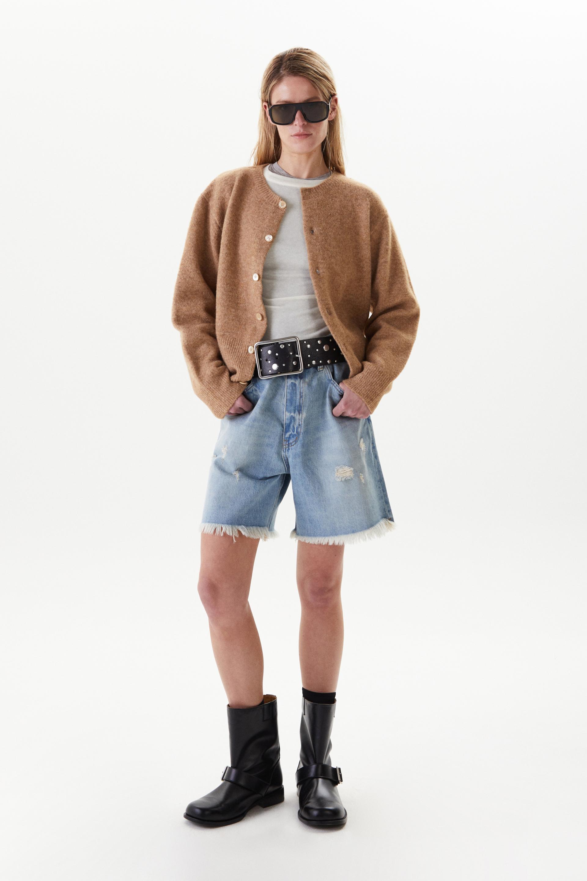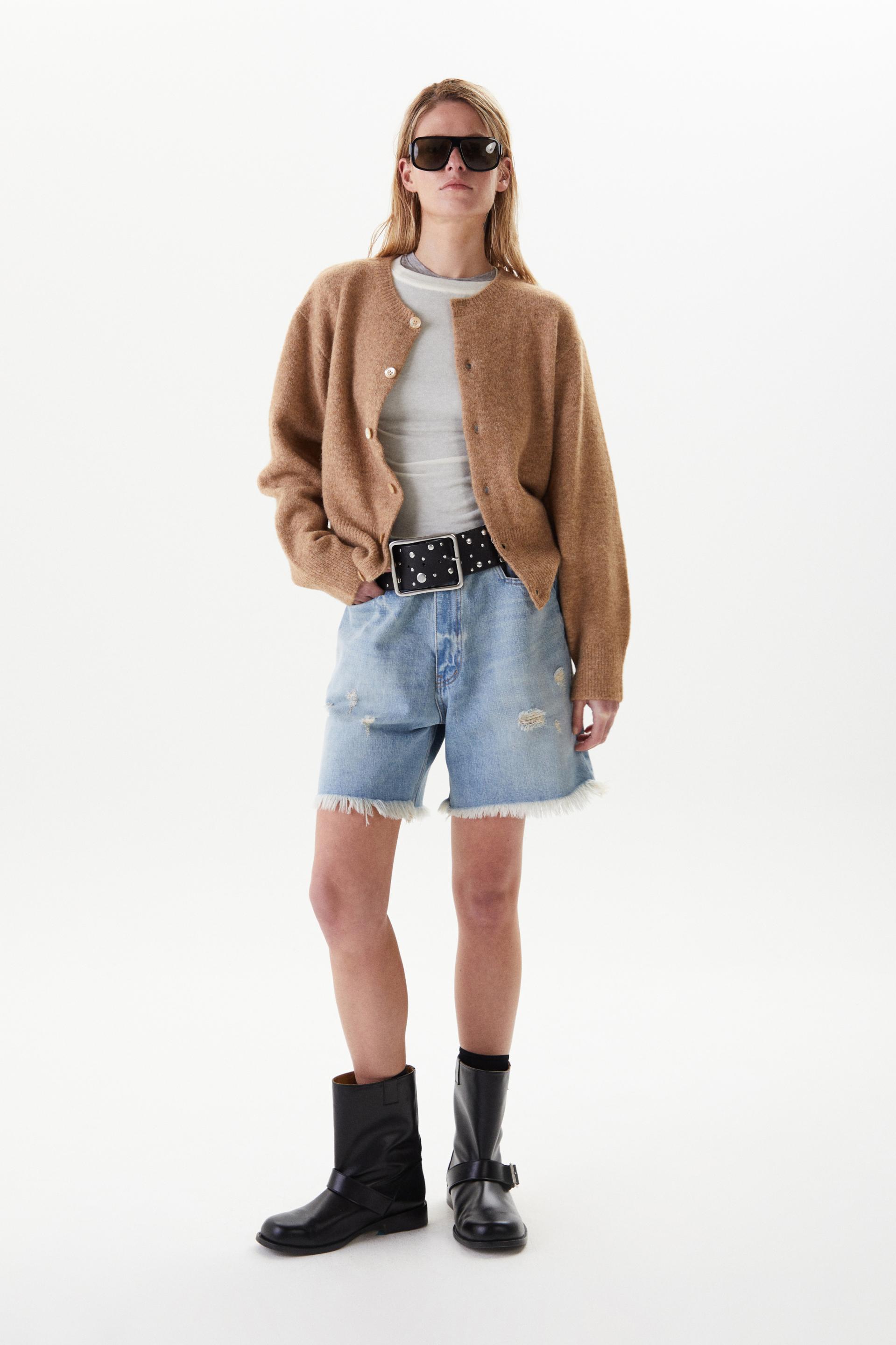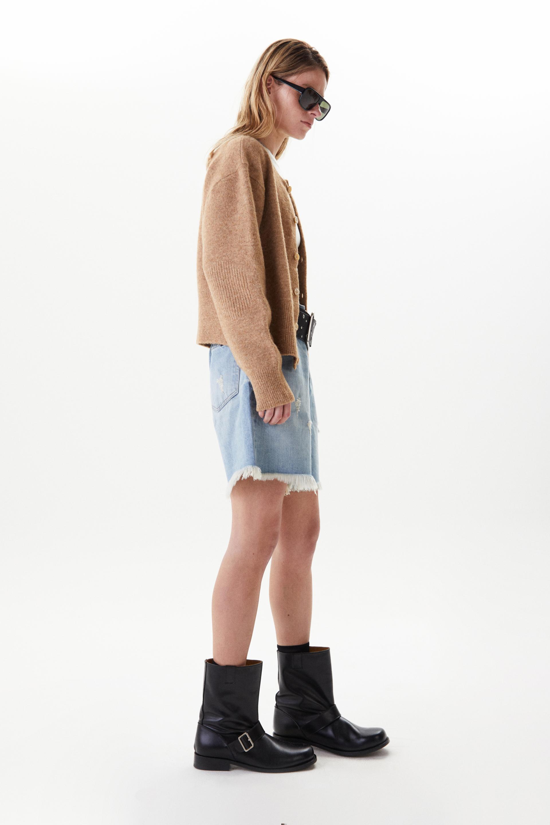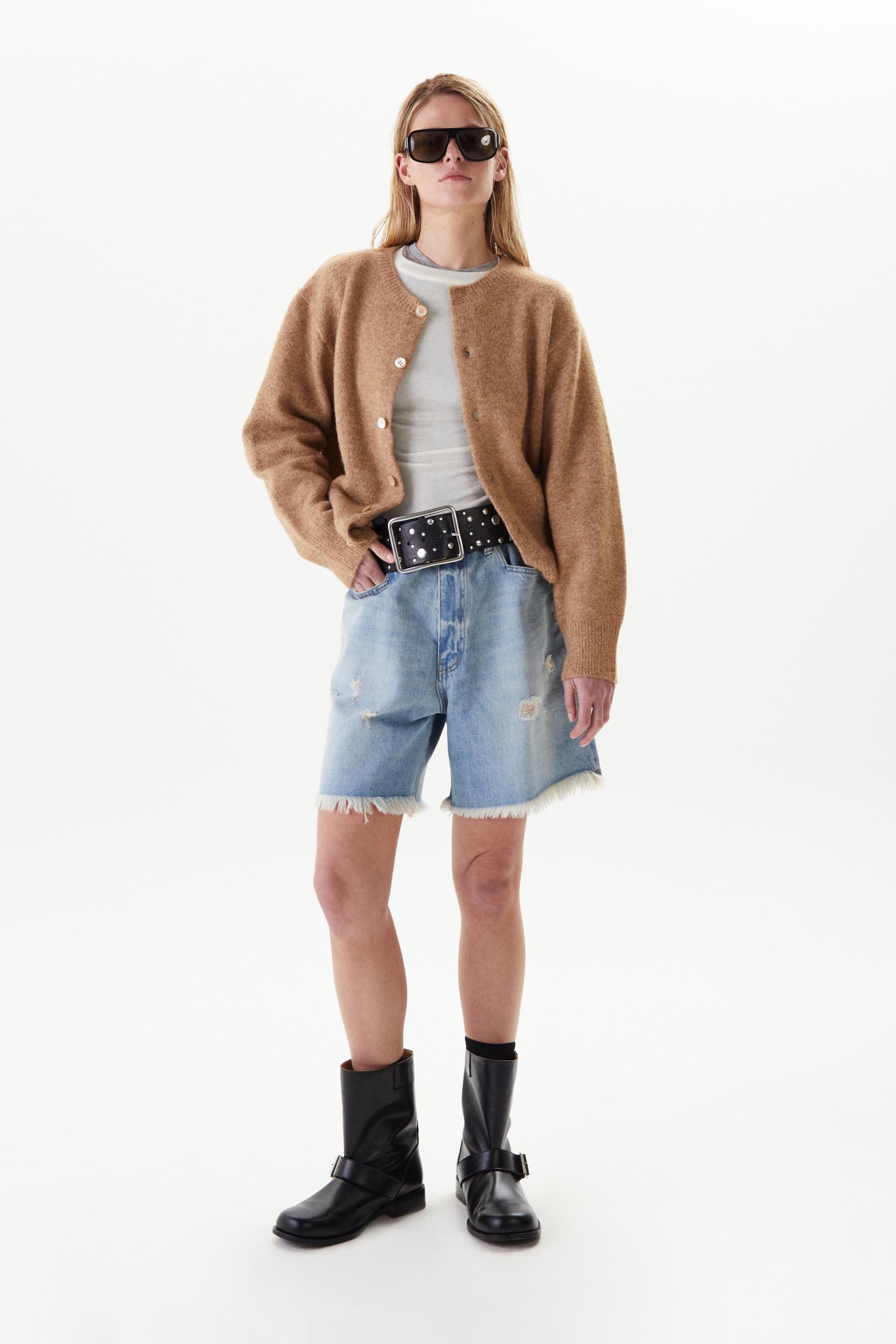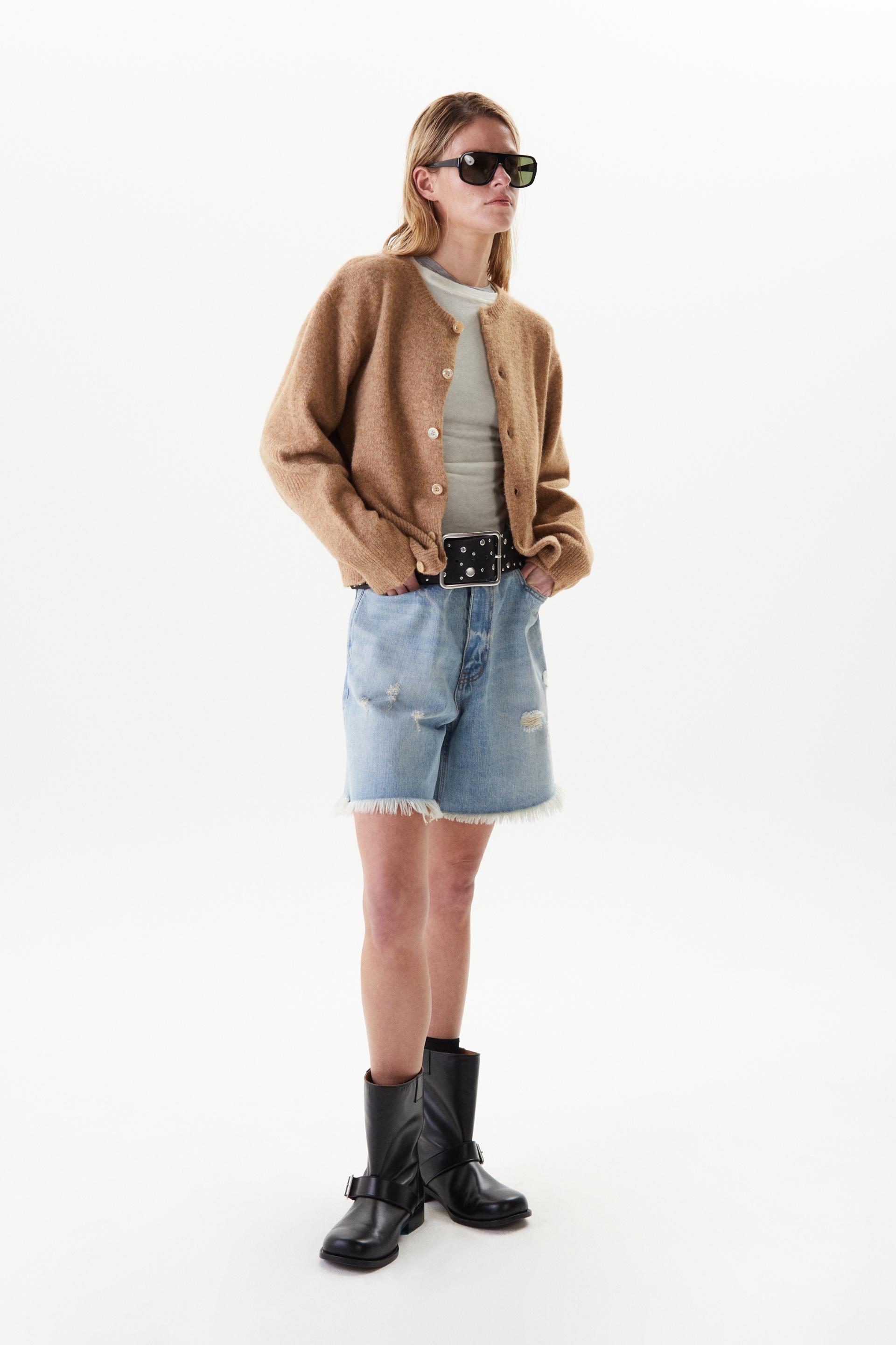 부드럽고 섬세한 터치의 타일레 시그니처 디자인 울 가디건 입니다. 캐시미어 라이크 특수가공을 거친 포근한 울 혼방 원사는 은은한 배색으로 고유의 컬러감을 지녔습니다. 넓은 폭의 립과 크롭한 기장감, 자연스러운 드레이프의 오버 실루엣이 편안하지만 드레시한 분위기의 룩을 완성시켜줍니다. 팔꿈치 변형 리브 패치, 뒷 목 중심에 타일레 블랙 라벨이 장식되어 있으며 사용된 단추는 천연 자개단추 입니다.