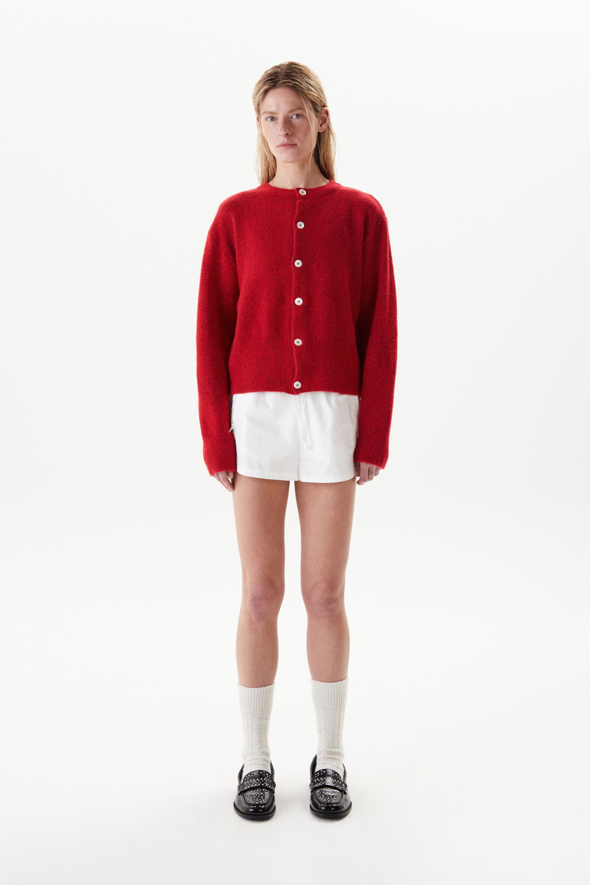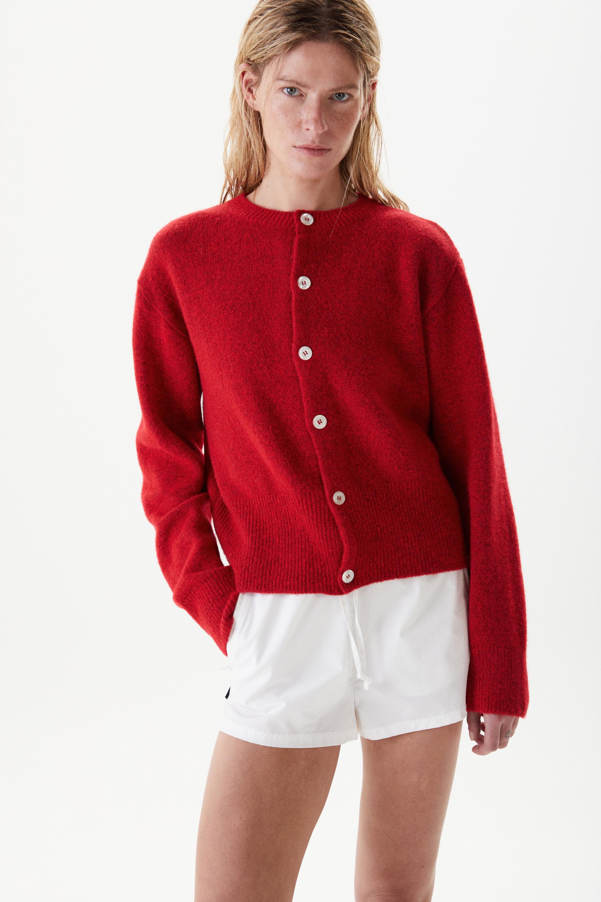 부드럽고 섬세한 터치의 타일레 시그니처 디자인 울 가디건 입니다. 캐시미어 라이크 특수가공을 거친 포근한 울 혼방 원사는 은은한 배색으로 고유의 컬러감을 지녔습니다. 넓은 폭의 립과 크롭한 기장감, 자연스러운 드레이프의 오버 실루엣이 편안하지만 드레시한 분위기의 룩을 완성시켜줍니다. 팔꿈치 변형 리브 패치, 뒷 목 중심에 타일레 블랙 라벨이 장식되어 있으며 사용된 단추는 천연 자개단추 입니다.