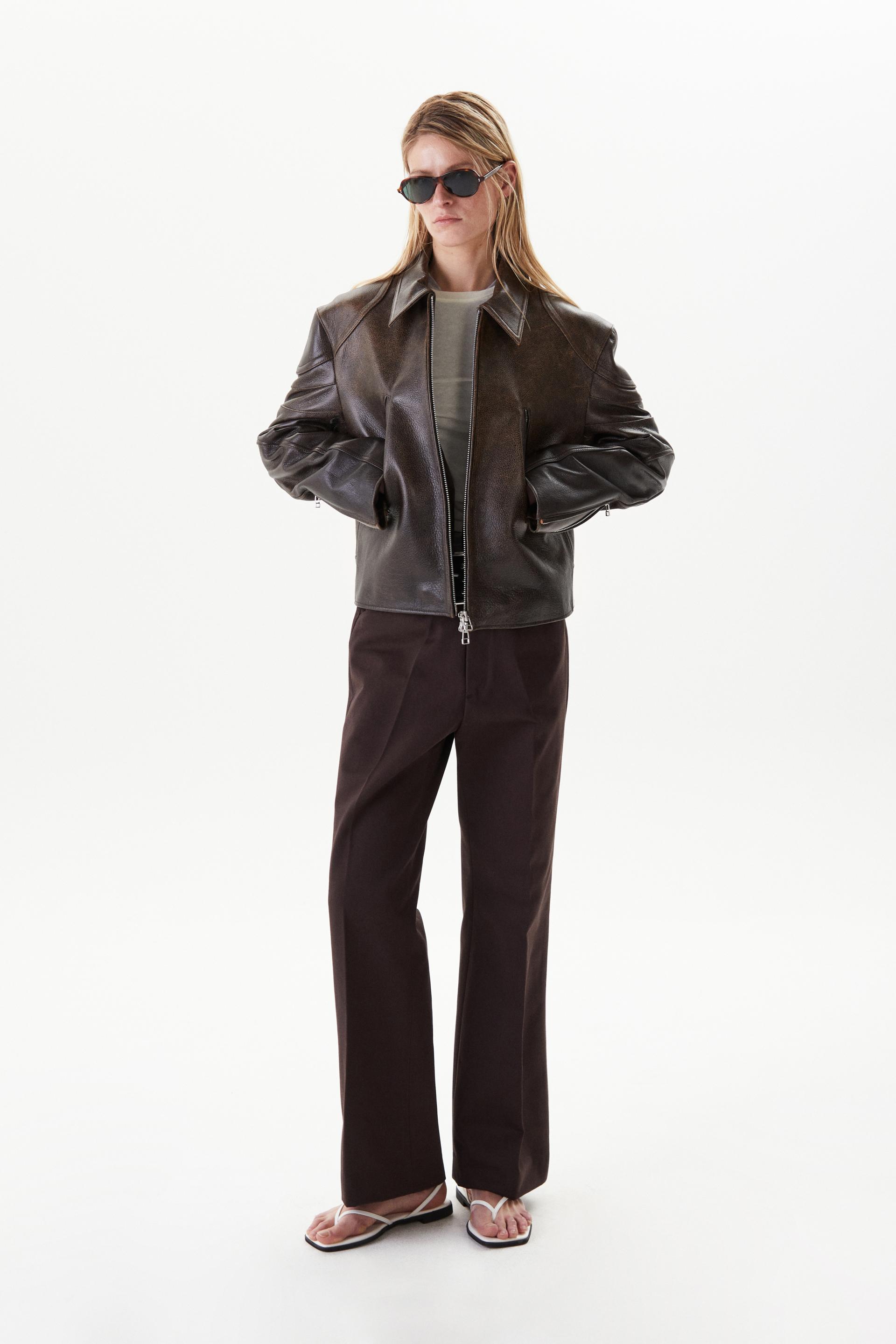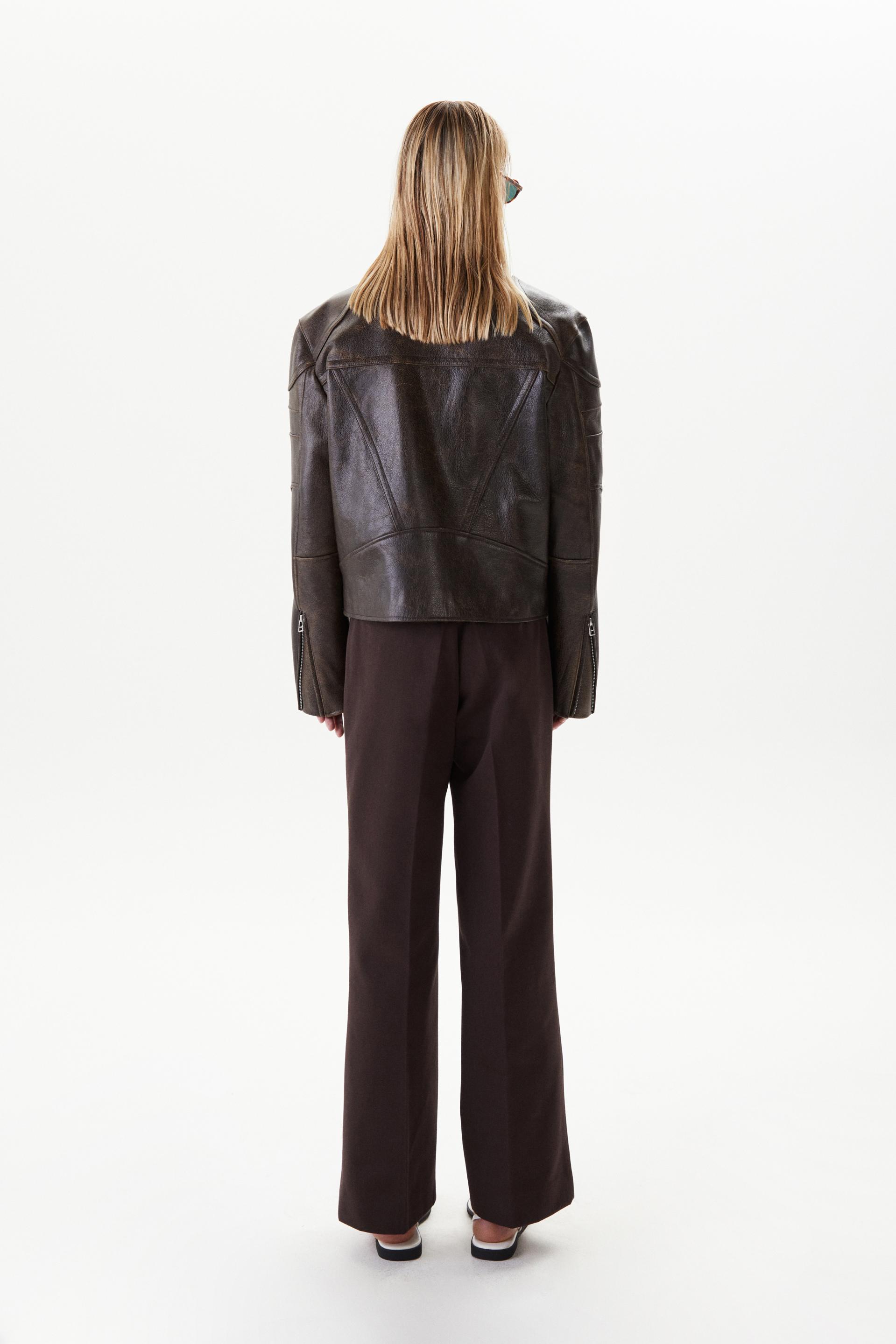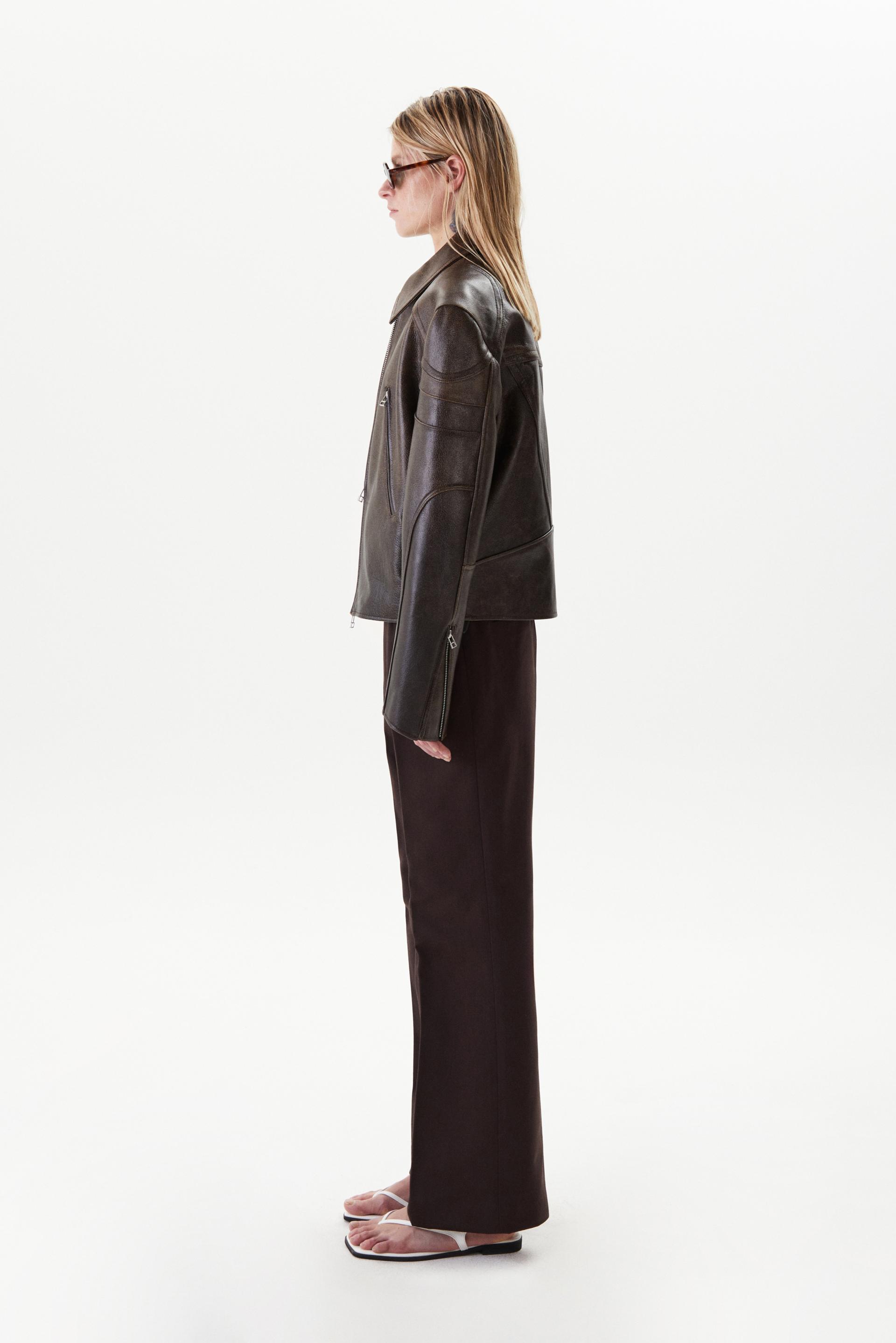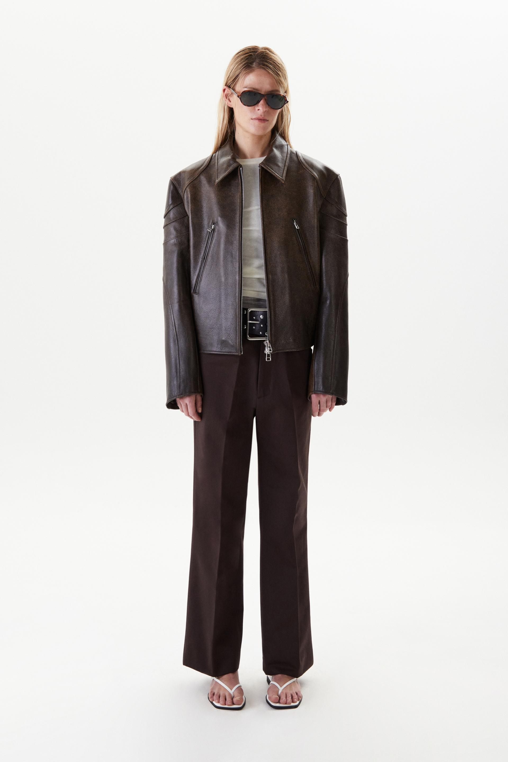 아이코닉한 실루엣의 카우하이드 레더 재킷입니다. 모터사이클 재킷의 오리지널리티에 현대적 테일러링 패턴을 더한 타일레 시그니처 디자인입니다. 강조된 어깨에 크롭한 기장감을 특징으로 숄더 프로텍터와 입체 절개가 있는 지퍼 슬리브, 전면부 두 개의 지퍼 포켓이 있고 볼드한 사이즈의 YKKⓇ 2 way 지퍼를 사용했습니다. 빈티지 가공과 오일 폴리싱을 거쳐 특별한 질감을 가진 가죽으로 제작, 제한적인 디테일로 구성한 클래식 아이템이며 경년의 변화가 기대되는 레더 재킷입니다.