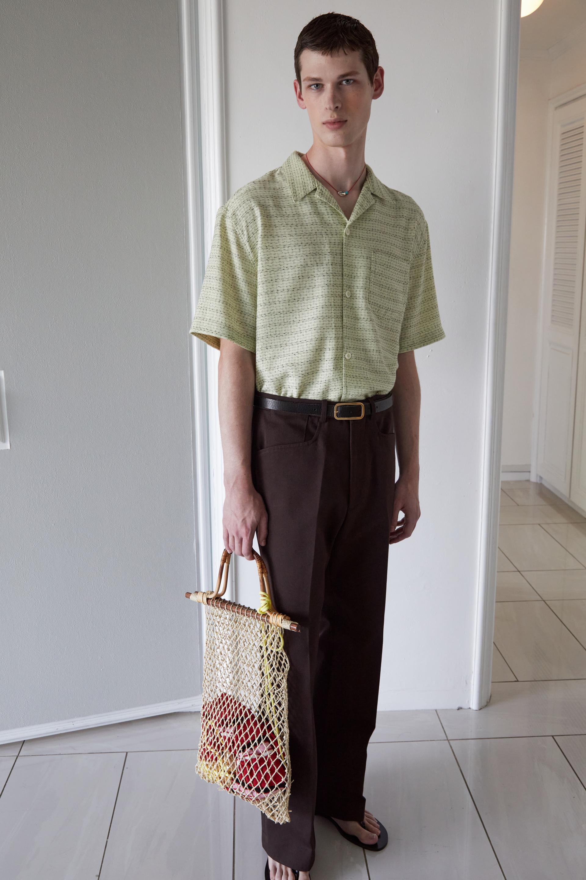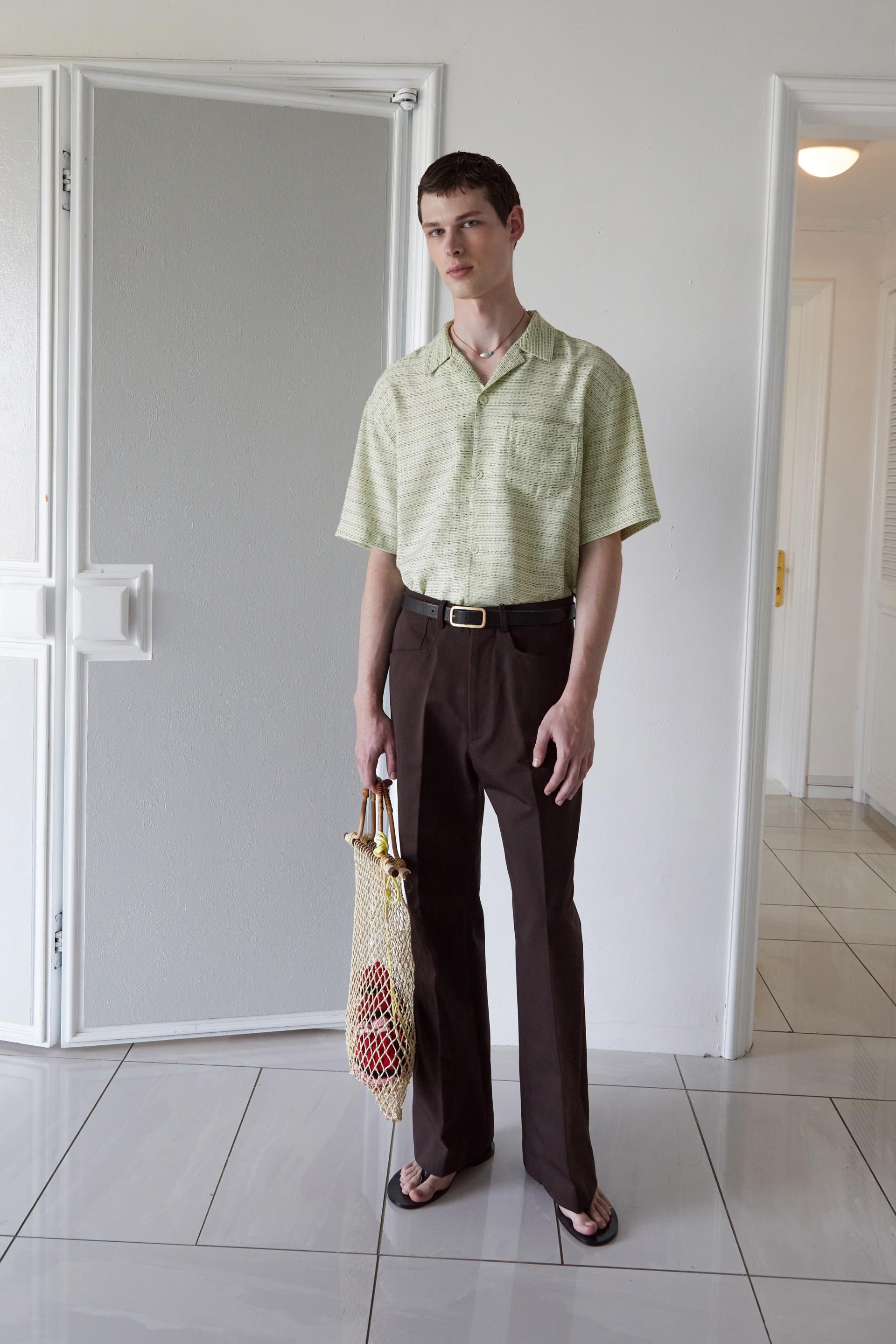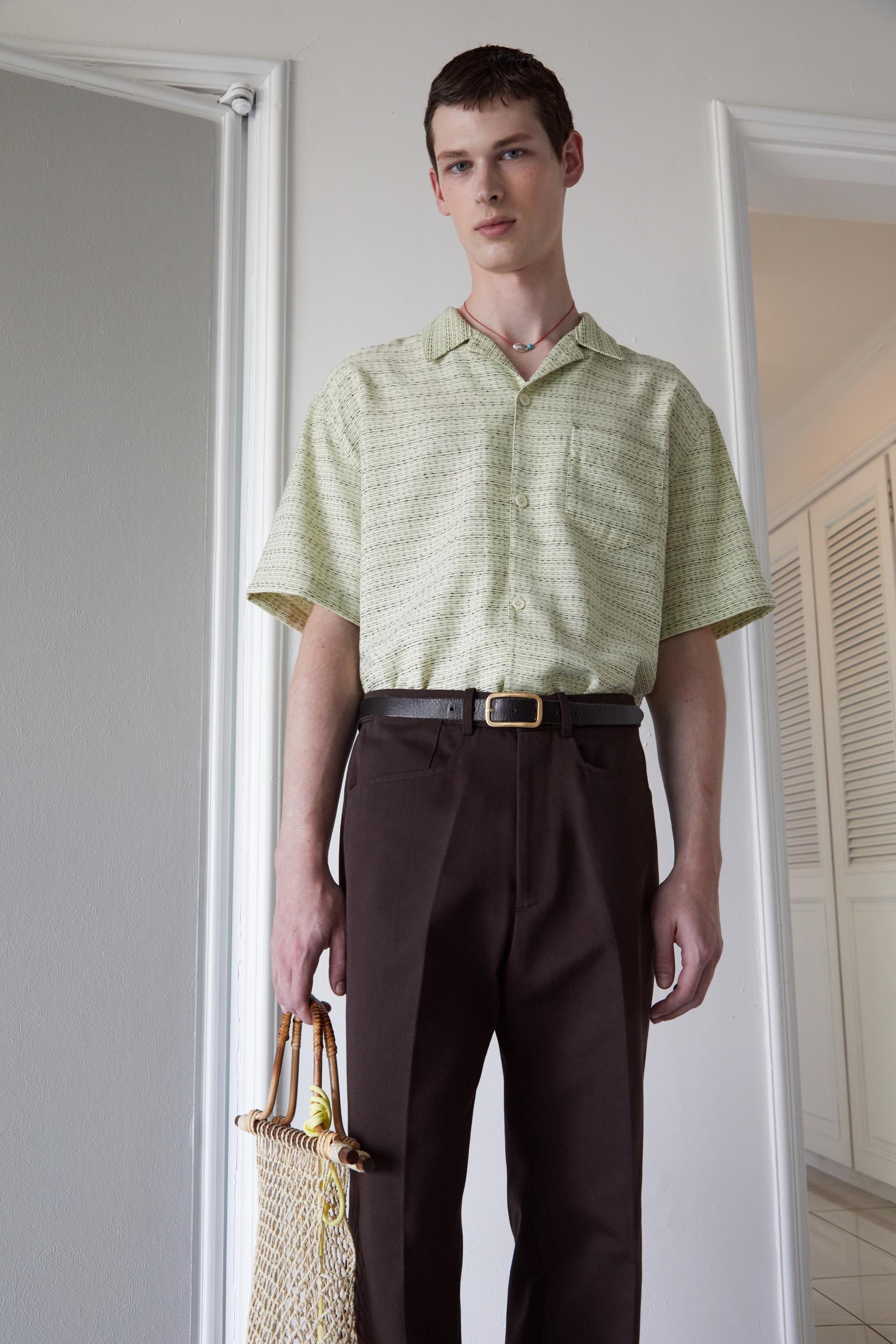 유니크한 직조가 돋보이는 자카드 셔츠입니다. 낮은 채도의 옐로우 바탕에 불규칙 넵이 특징인 자카드 패브릭은 바캉스 웨어는 물론 드레시한 아웃핏에도 조화로운 아이템입니다. 레귤러 박스핏에 컨버터블 쿠반 칼라 포맷, 사용된 단추는 천연 자개단추입니다,