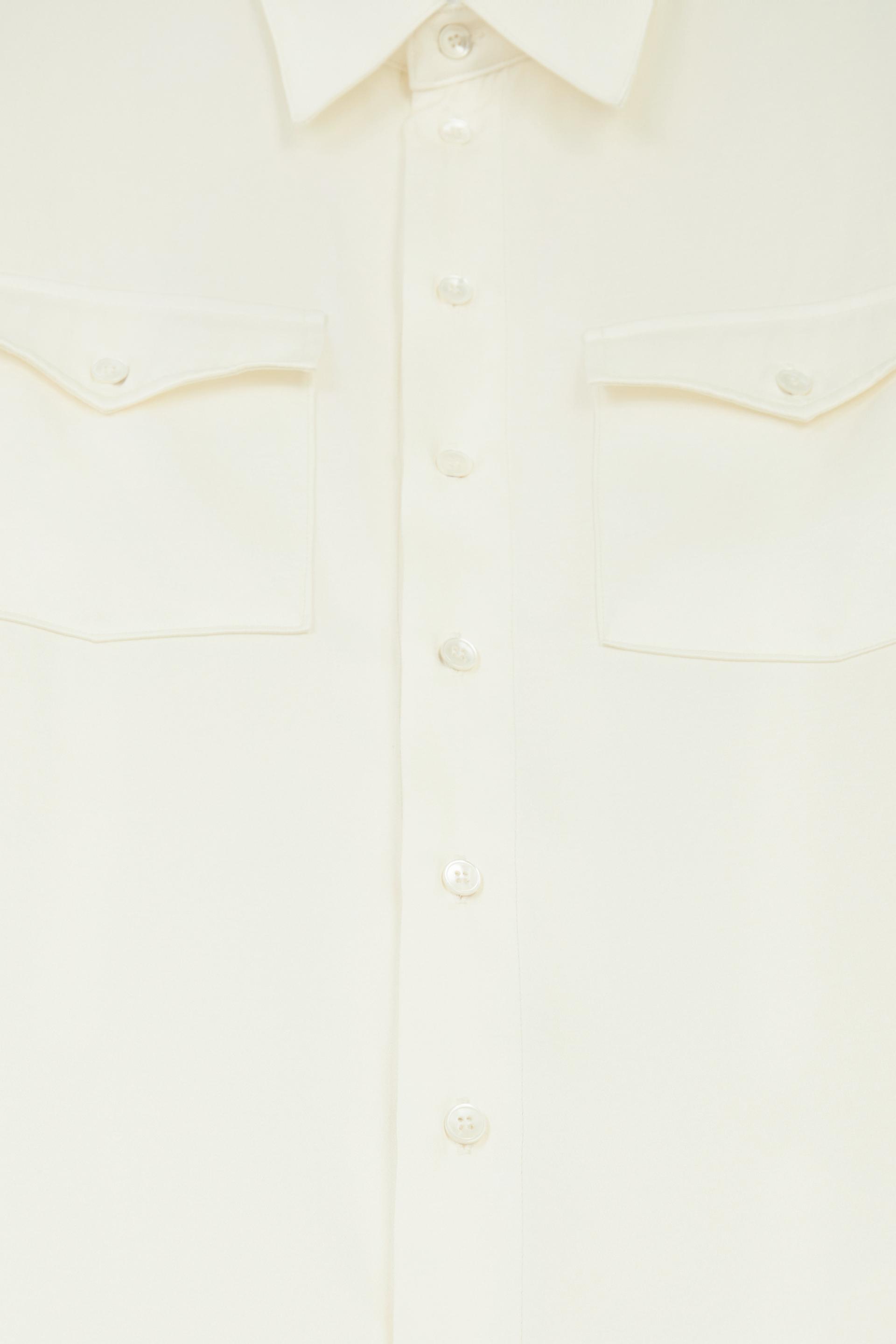 Natural pearl buttons and pearl snap on sleeve