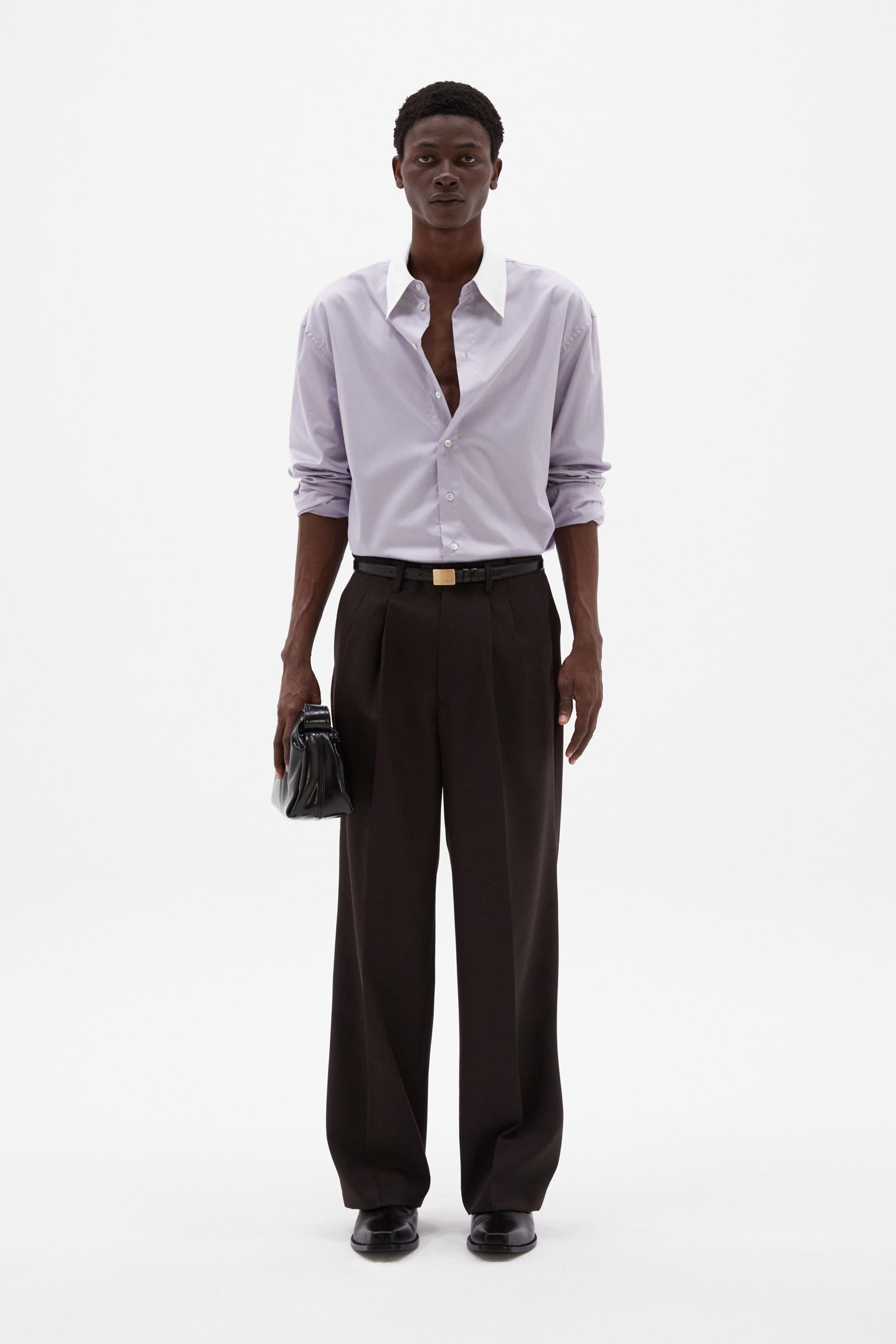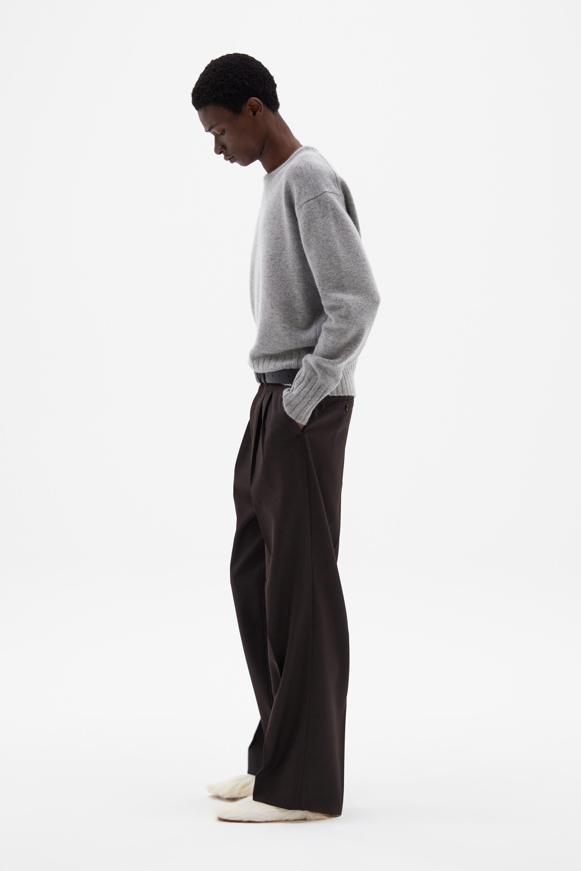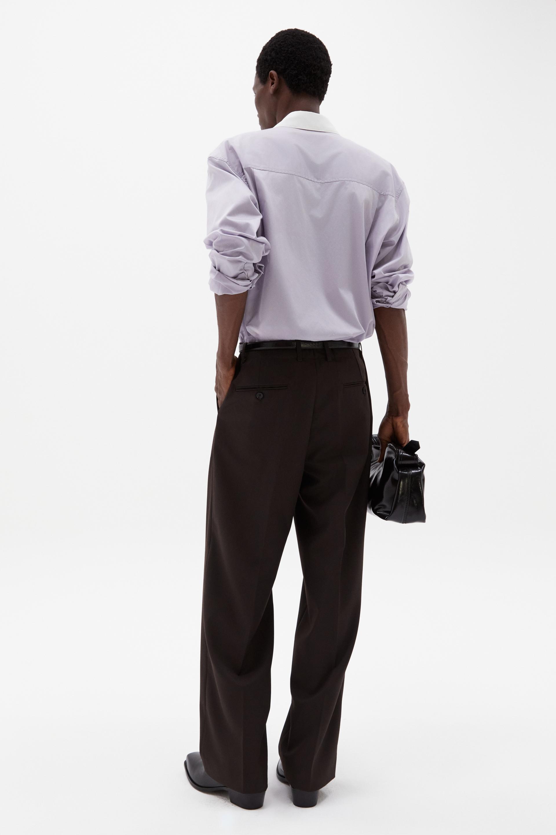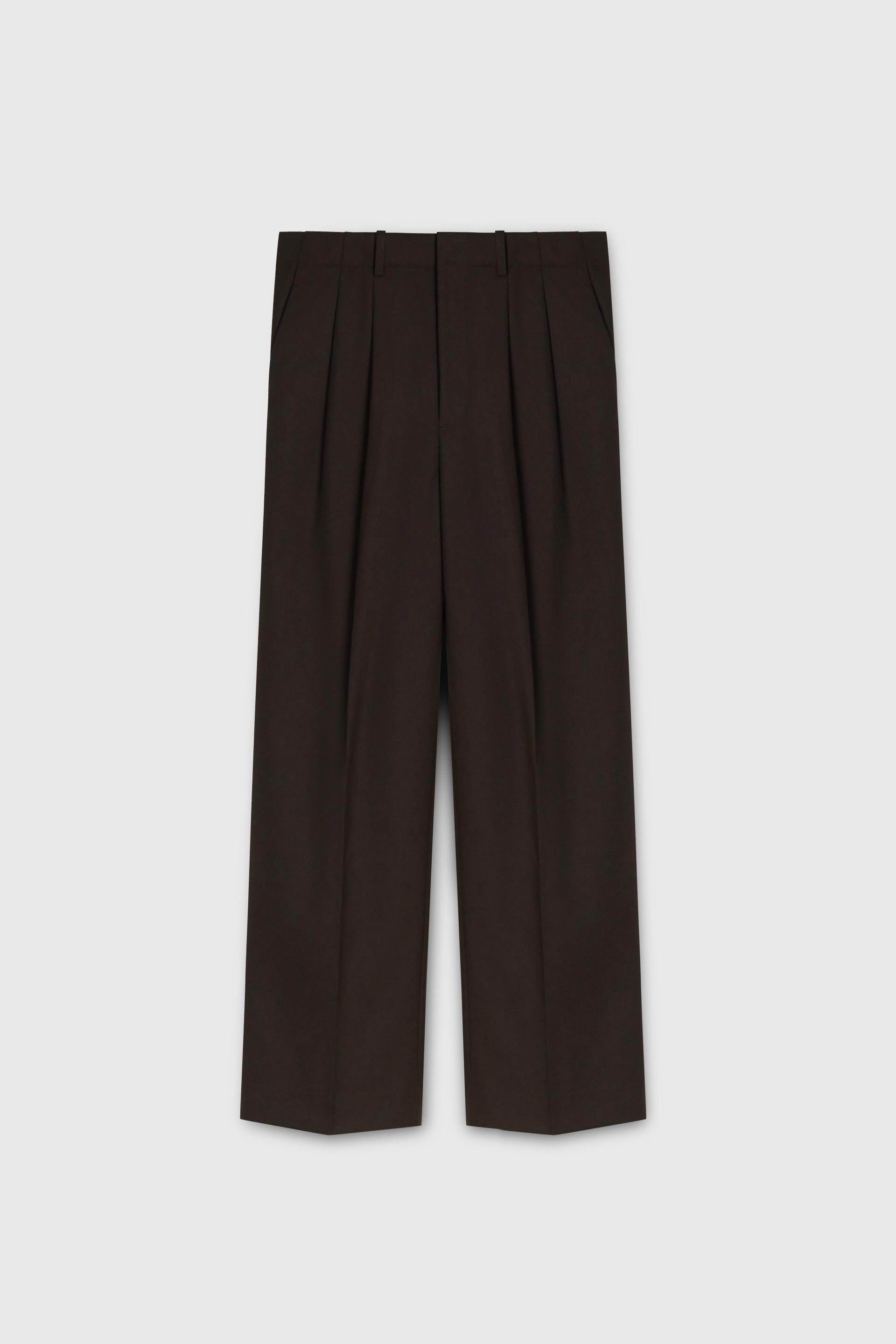 여유로운 실루엣의 테일러드 트라우저 입니다. 두 개의 플리츠가 볼륨을 유지하는 벨트리스 디자인, 밑단으로 넓은 와이드 레그 실루엣이 특징입니다. 탄탄한 직조의 울 혼방 패브릭과 테일러드 베이스로 완성한 클래식 트라우저로 시간에 구애받지 않는 타임리스 아이템입니다.