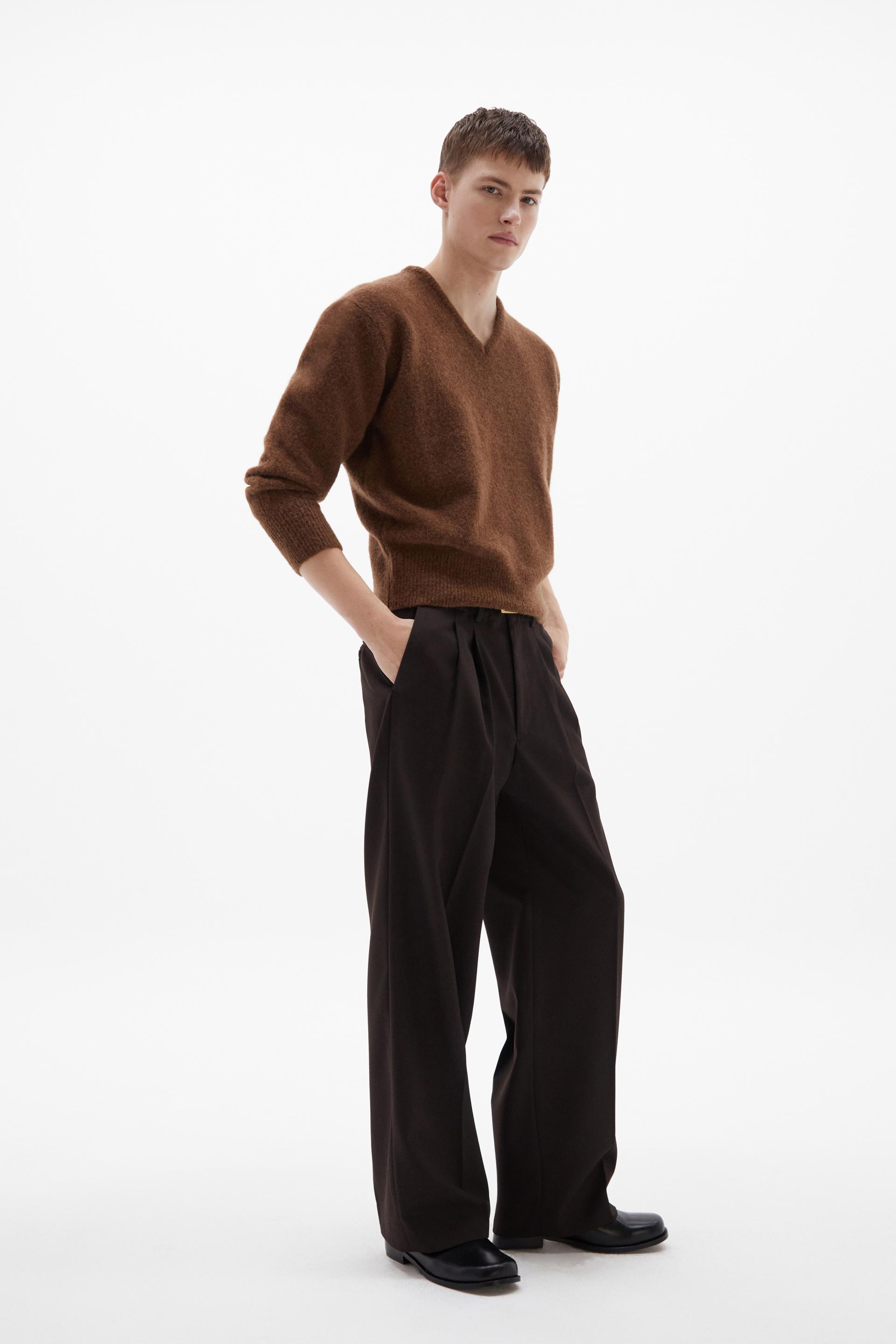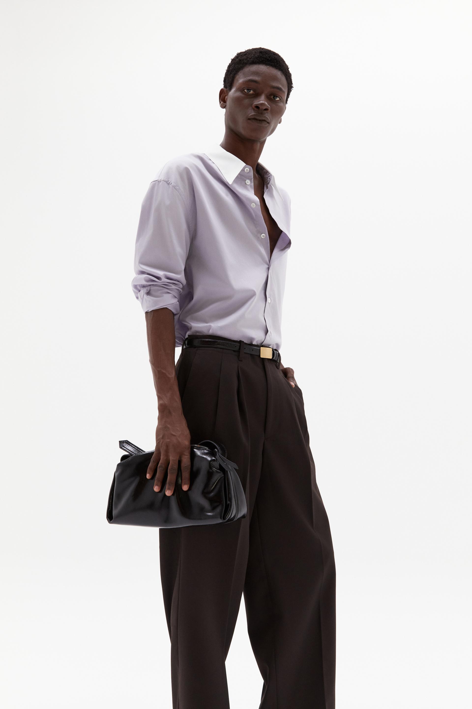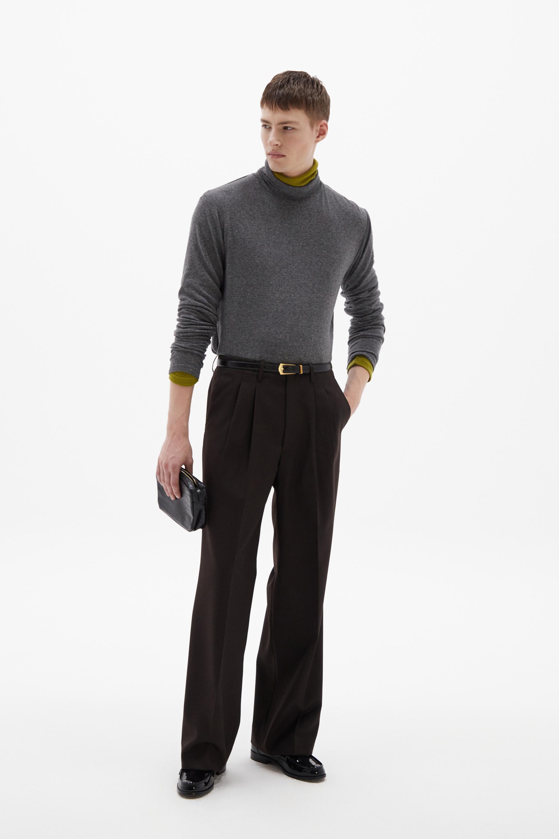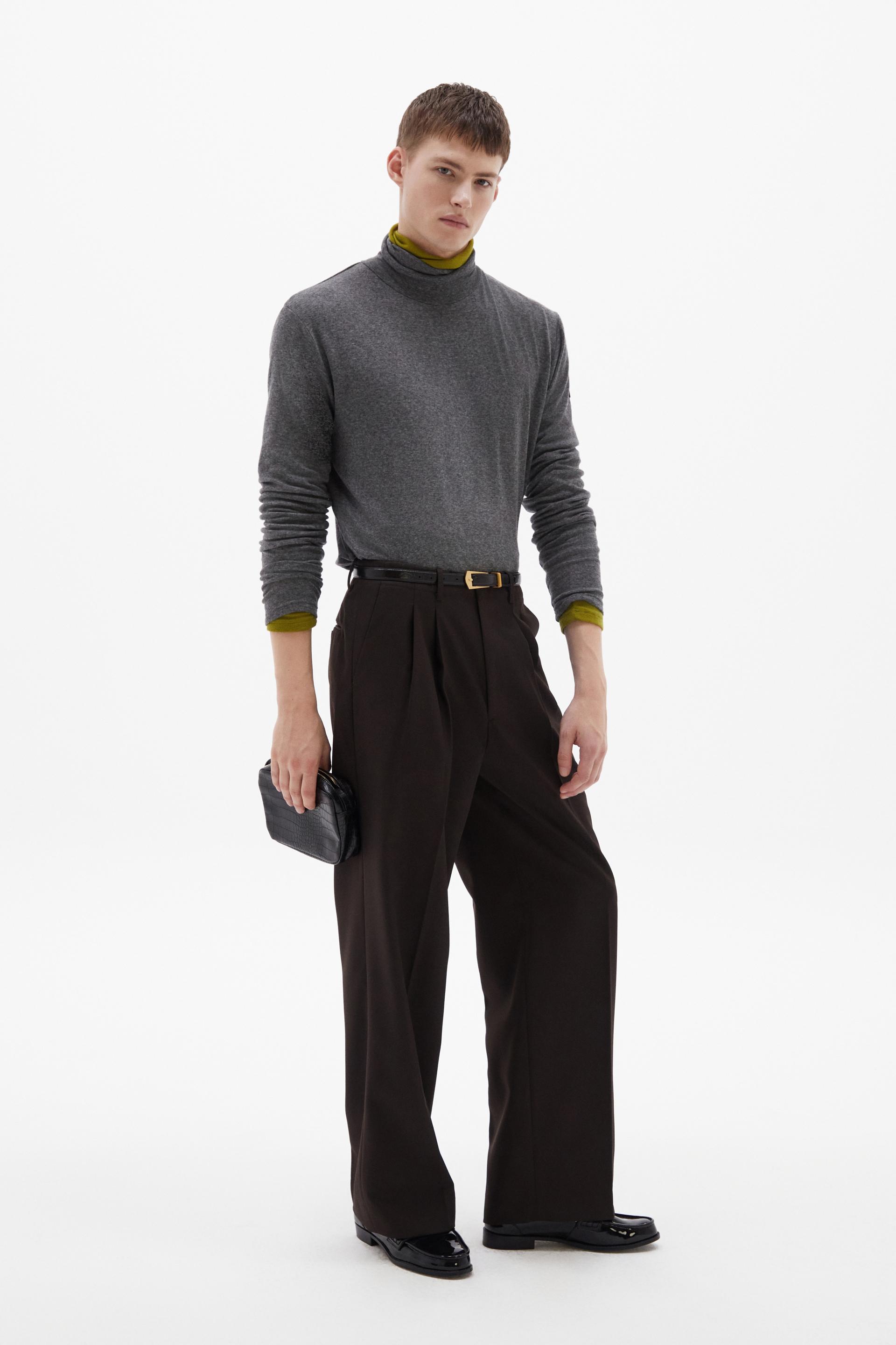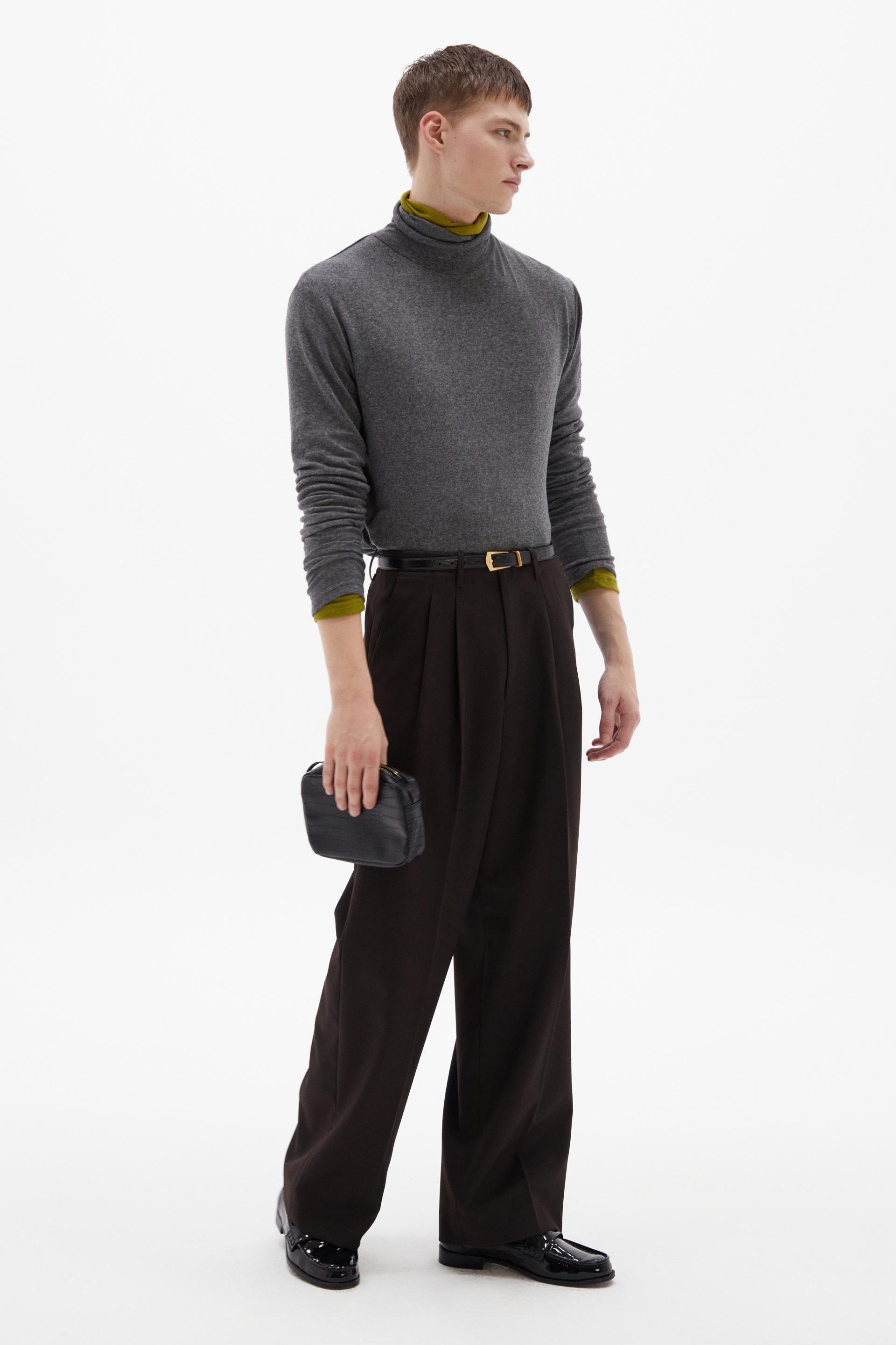여유로운 실루엣의 테일러드 트라우저 입니다. 두 개의 플리츠가 볼륨을 유지하는 벨트리스 디자인, 밑단으로 넓은 와이드 레그 실루엣이 특징입니다. 탄탄한 직조의 울 혼방 패브릭과 테일러드 베이스로 완성한 클래식 트라우저로 시간에 구애받지 않는 타임리스 아이템입니다.