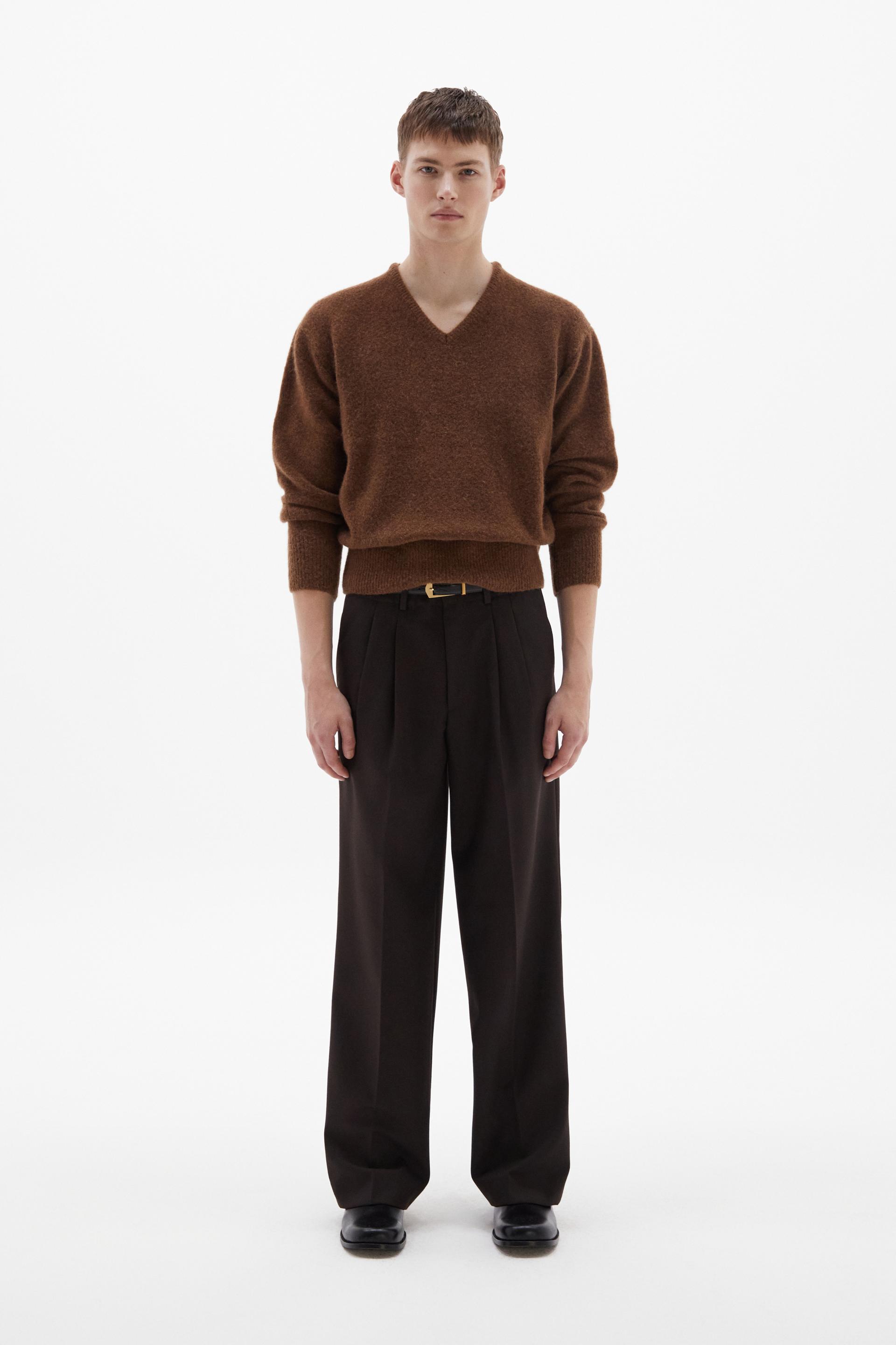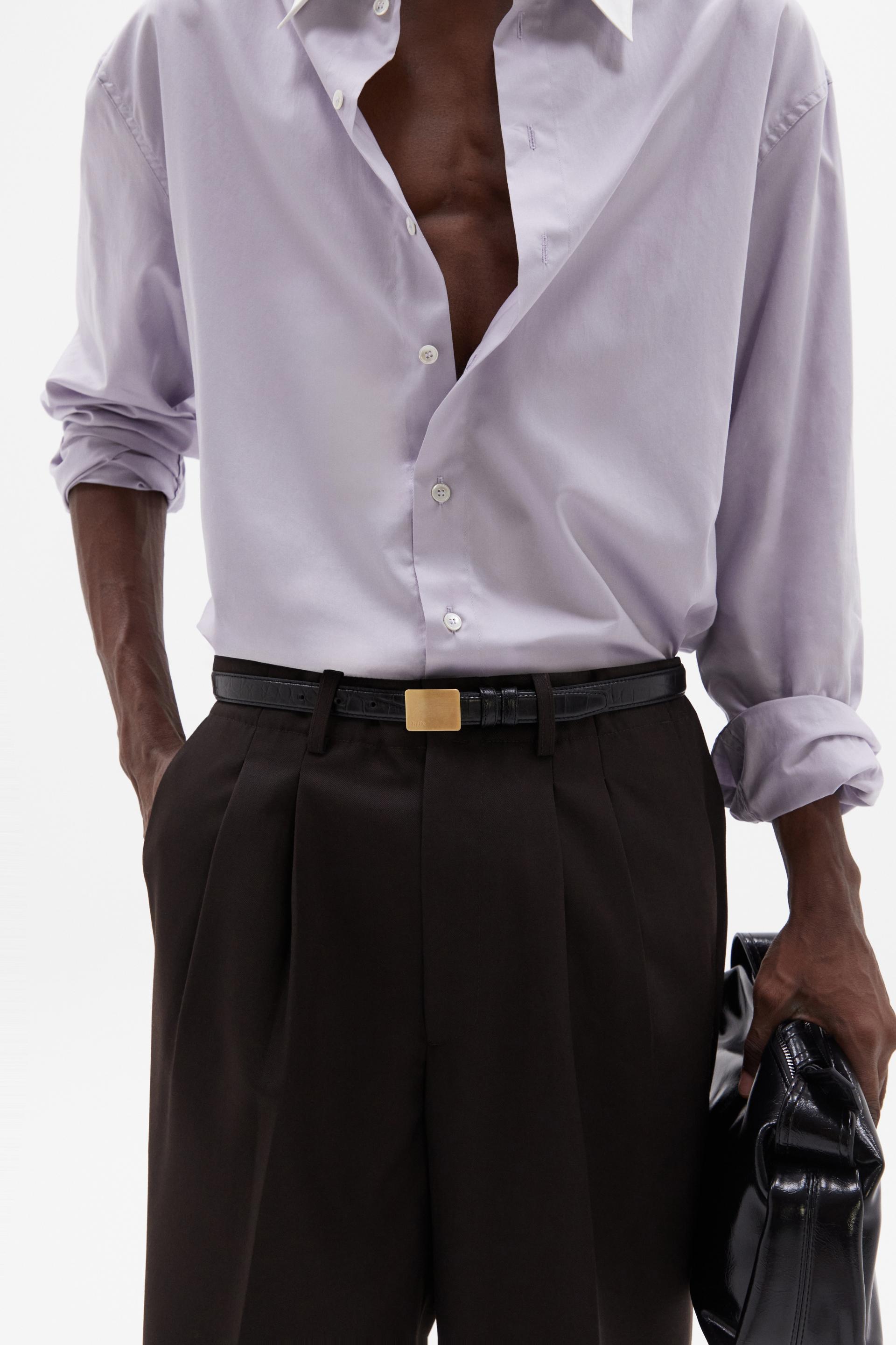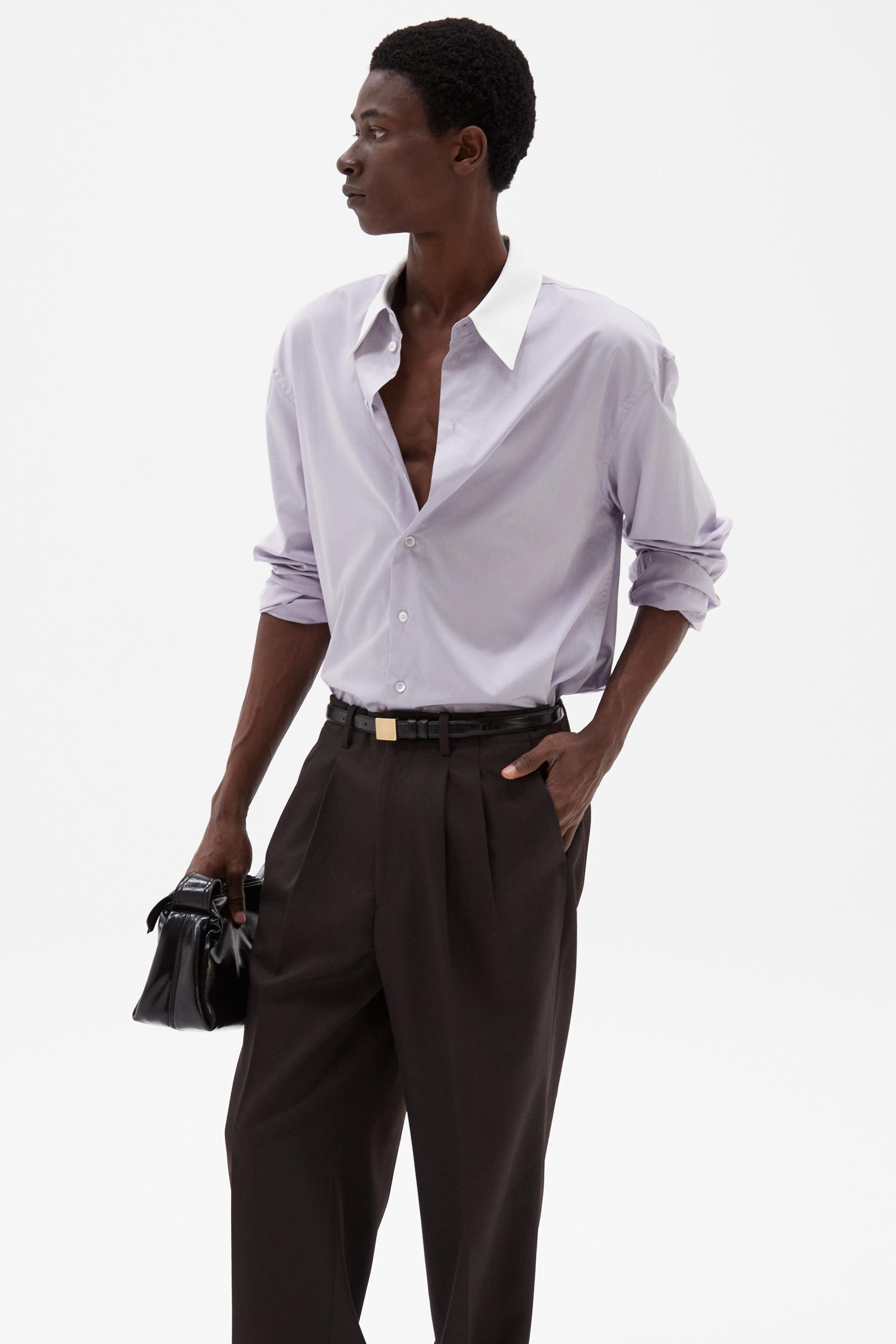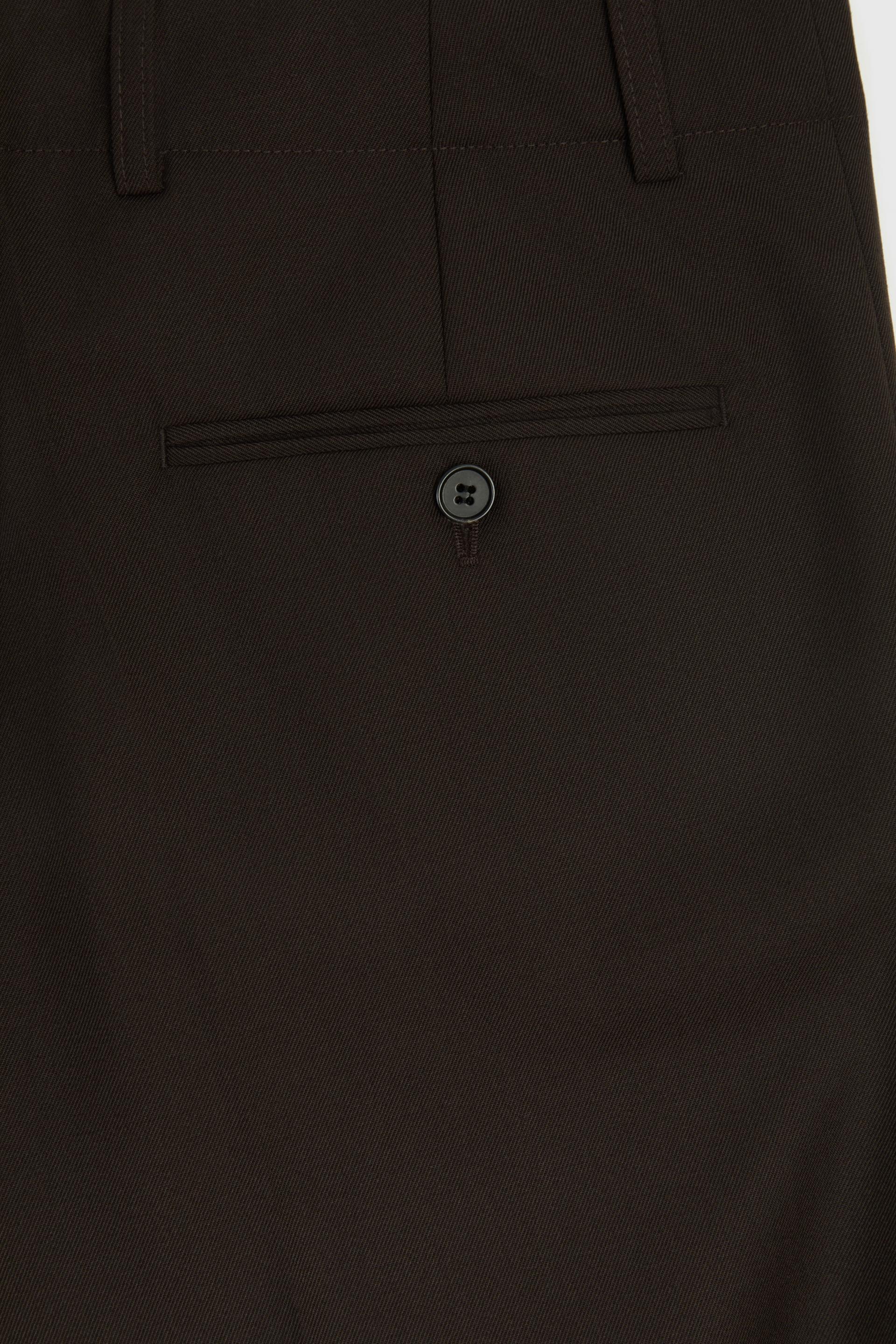 여유로운 실루엣의 테일러드 트라우저 입니다. 두 개의 플리츠가 볼륨을 유지하는 벨트리스 디자인, 밑단으로 넓은 와이드 레그 실루엣이 특징입니다. 탄탄한 직조의 울 혼방 패브릭과 테일러드 베이스로 완성한 클래식 트라우저로 시간에 구애받지 않는 타임리스 아이템입니다.