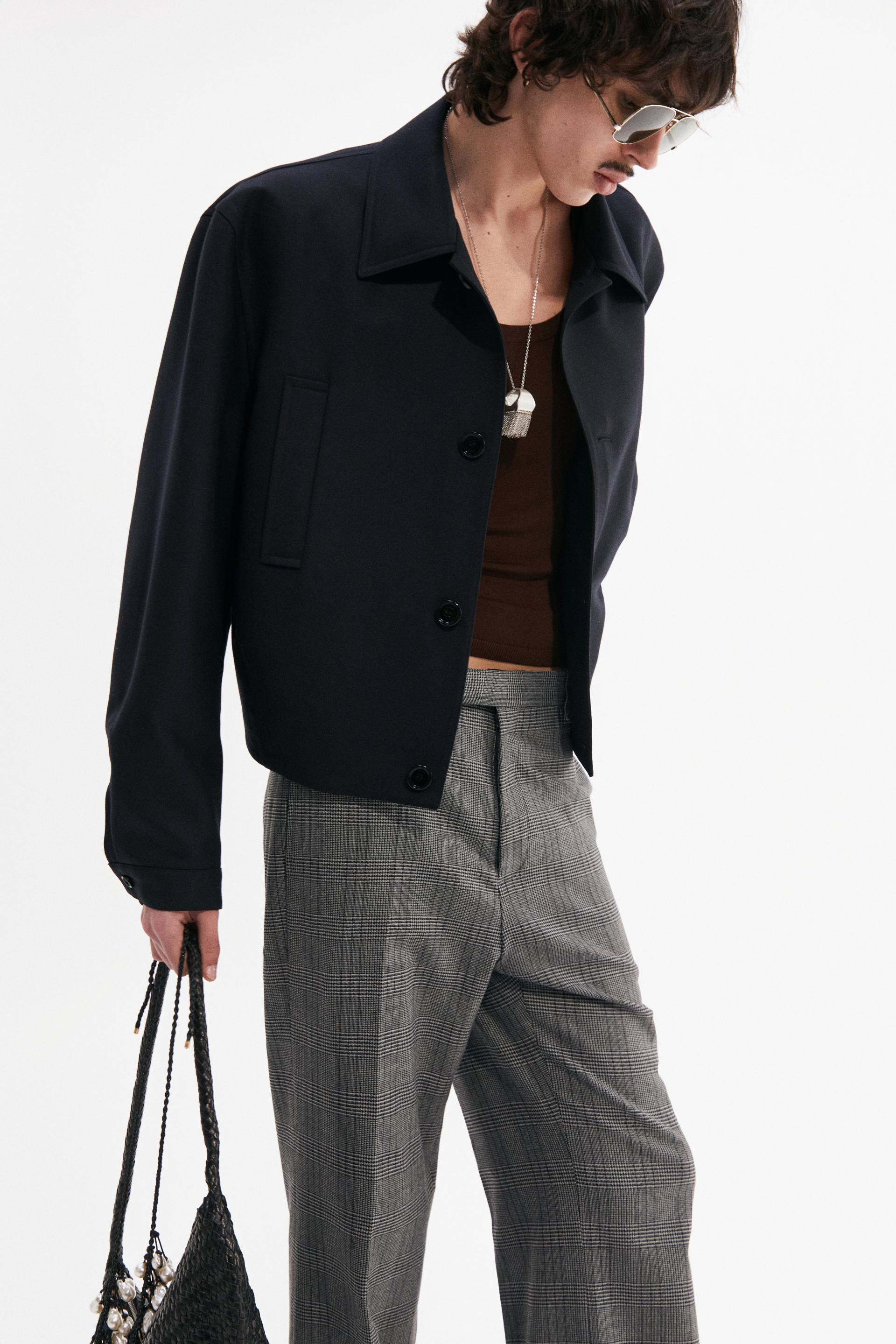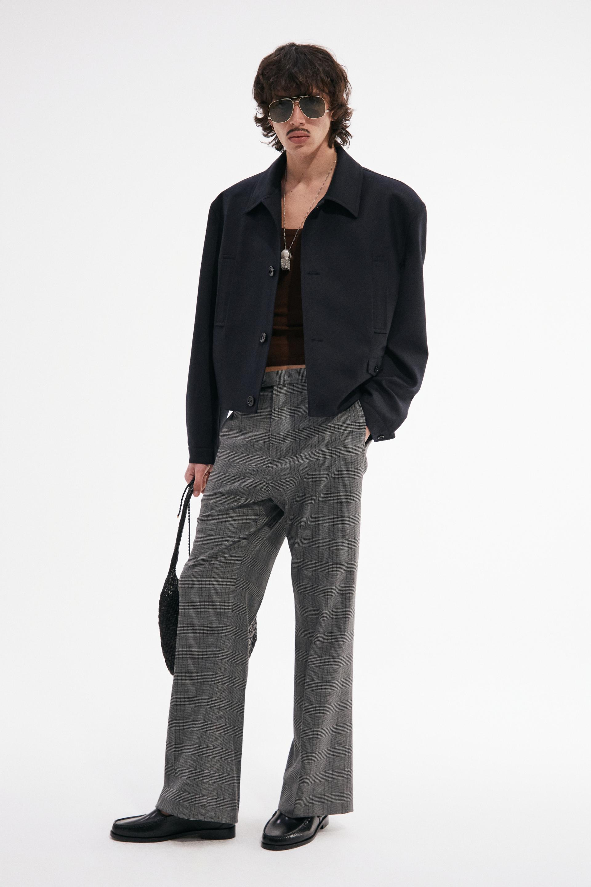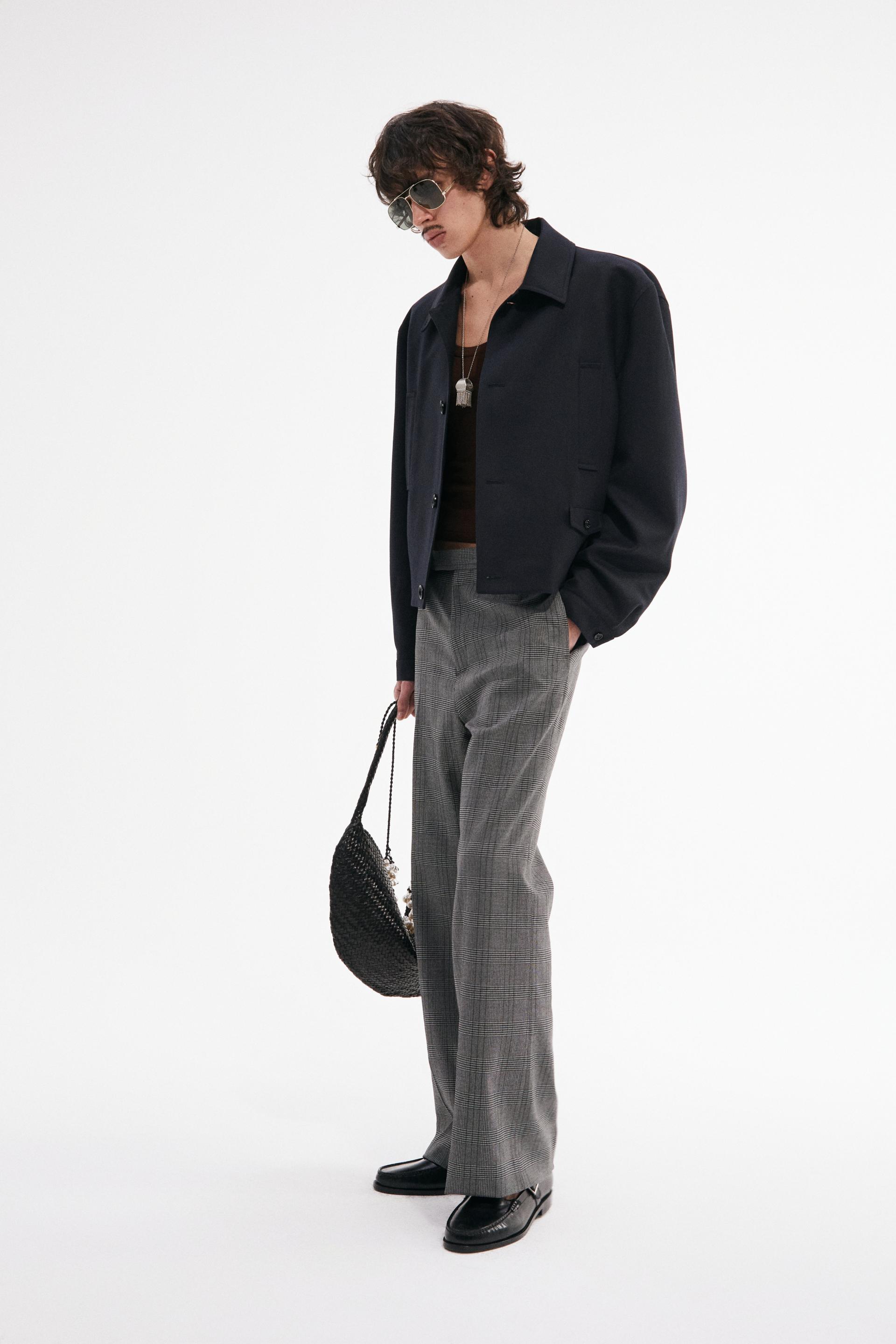 타일레 시그니처 아이템, 60년대 카나비 스트리트 룩에서 영감을 얻은 울 트라우저 입니다. 특유의 조직으로 터치와 회복이 우수한 높은 밀도 파인 울 혼방 패브릭을 사용했습니다. 밑단으로 넓어지는 와이드 플레어 실루엣과 벨트 루프에 더해진 콘초 스터드가 세련된 대비를 연출합니다. 내부 마감까지 테일러드 메이킹으로 완성한 하이 퀄리티 클래식 아이템입니다. 모던과 레트로의 조화가 돋보이는 글렌체크 패턴으로 한층 더 감각적인 스타일링 옵션을 더해보세요.