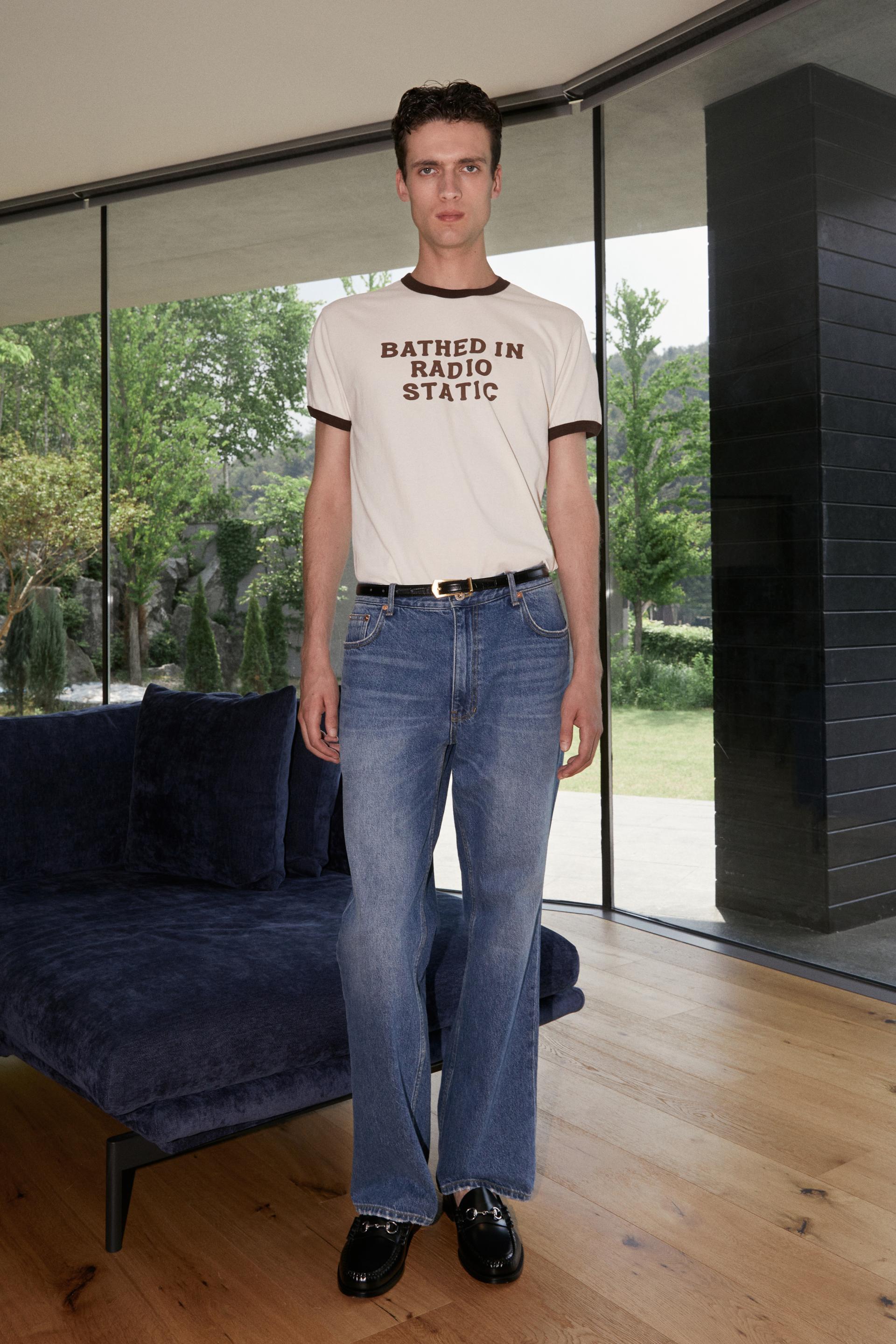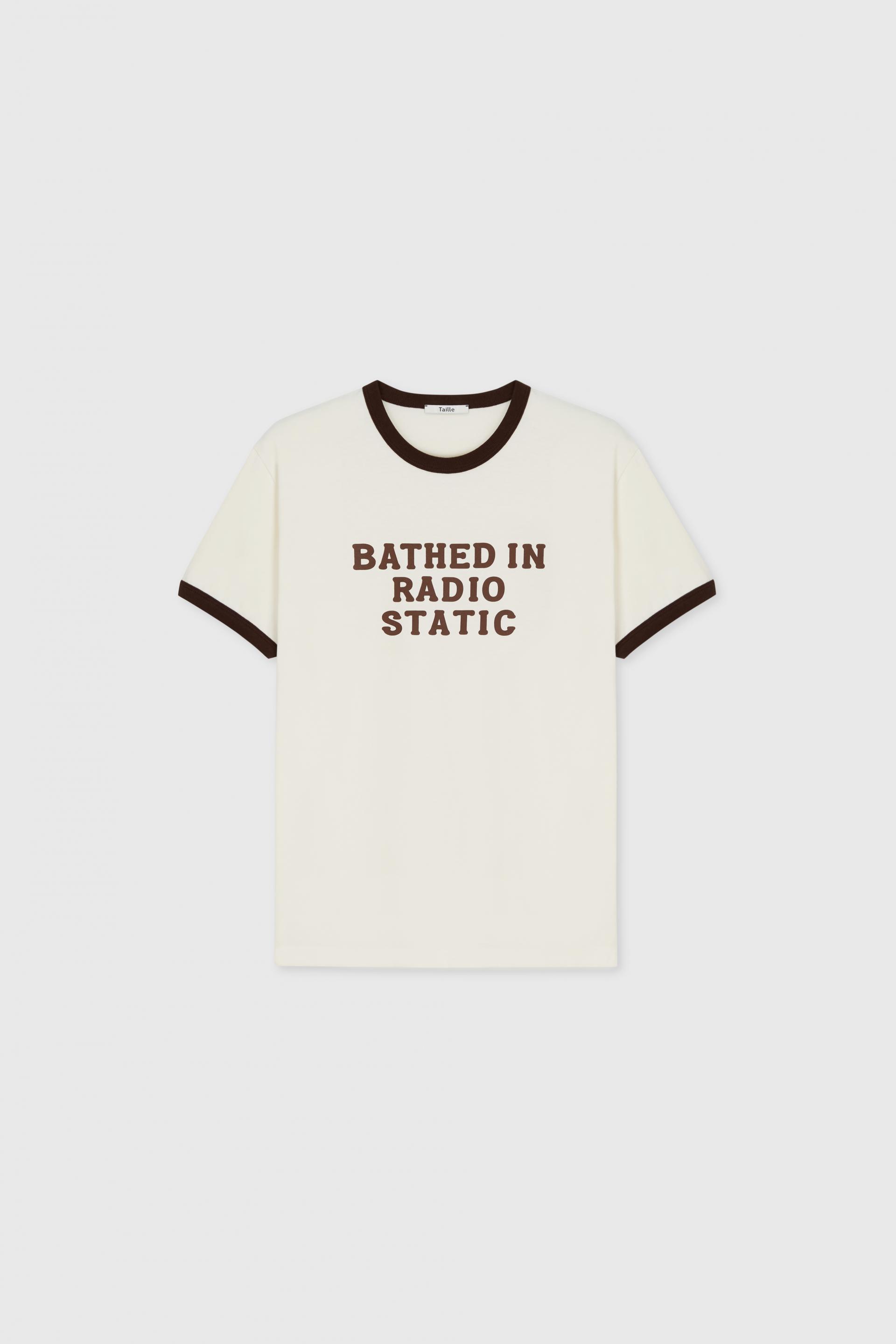레트로한 분위기의 링거 티셔츠입니다. 60년대 비정형 타이포그래피를 재해석한 프린트와 빈티지 컬러웨이가 특징입니다. 섬세하고 컴팩트한 코튼 패브릭에 네크라인과 소매단은 바인딩으로 마감하여 변형이 적습니다.