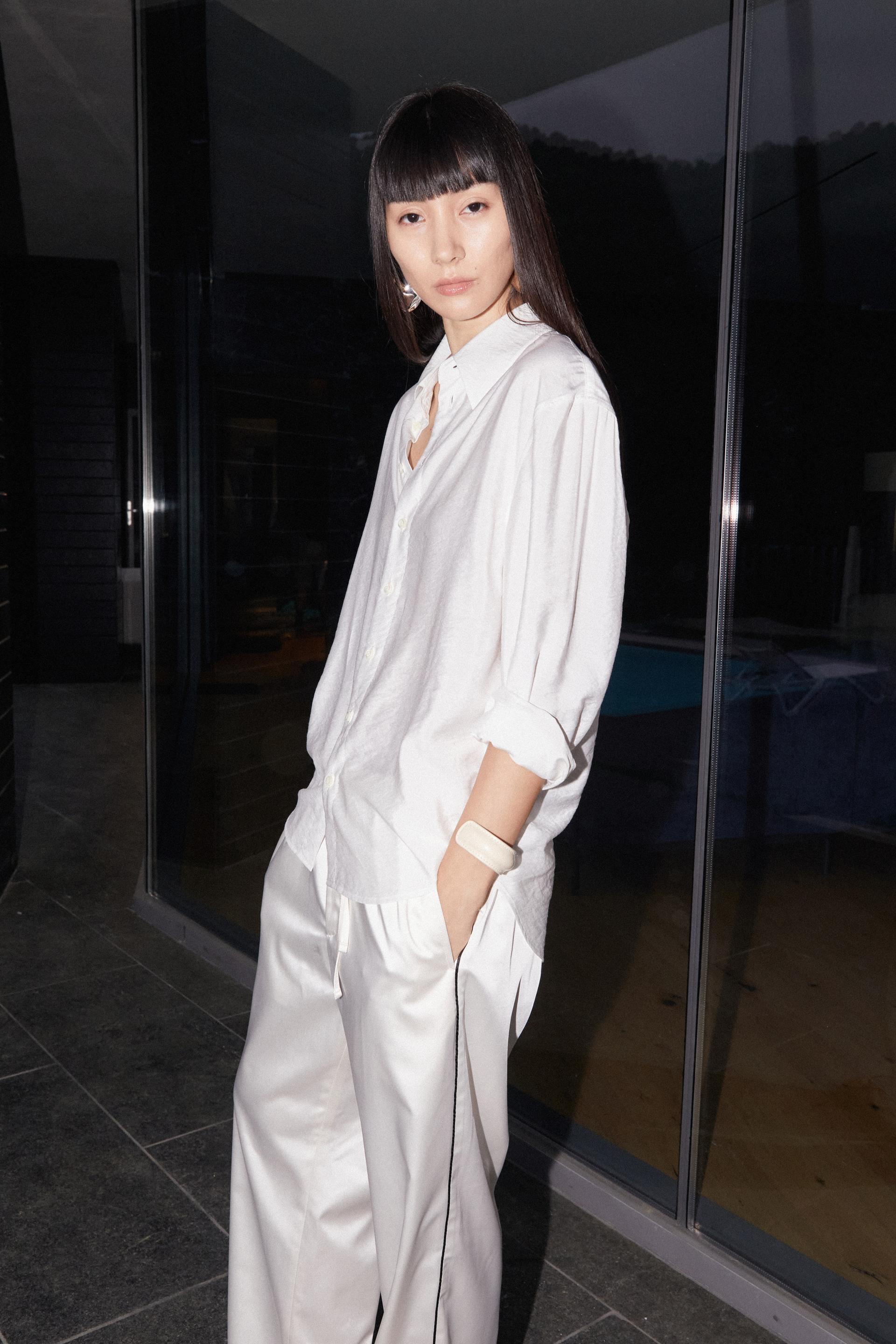 라이트한 비스코스 혼방 소재로 제작된 블랑쉬 꼬모 셔츠입니다. 얇고 섬세한 조직과 은은하게 투명한 실루엣이 어우러져 여름 햇살 아래에서도 쾌적한 착용이 가능합니다. 여유 있는 레귤러 핏과 스탠다드 칼라 디자인으로, 단독은 물론 가벼운 이너 위에 레이어드해도 좋은 활용도 높은 아이템입니다. 천연 자개 단추와 정교한 봉제, 백 요크 위 시그니처 로고자수를 더했으며, 도시의 일상부터 바캉스까지 자연스럽게 어우러지는 분위기를 담은 셔츠입니다.