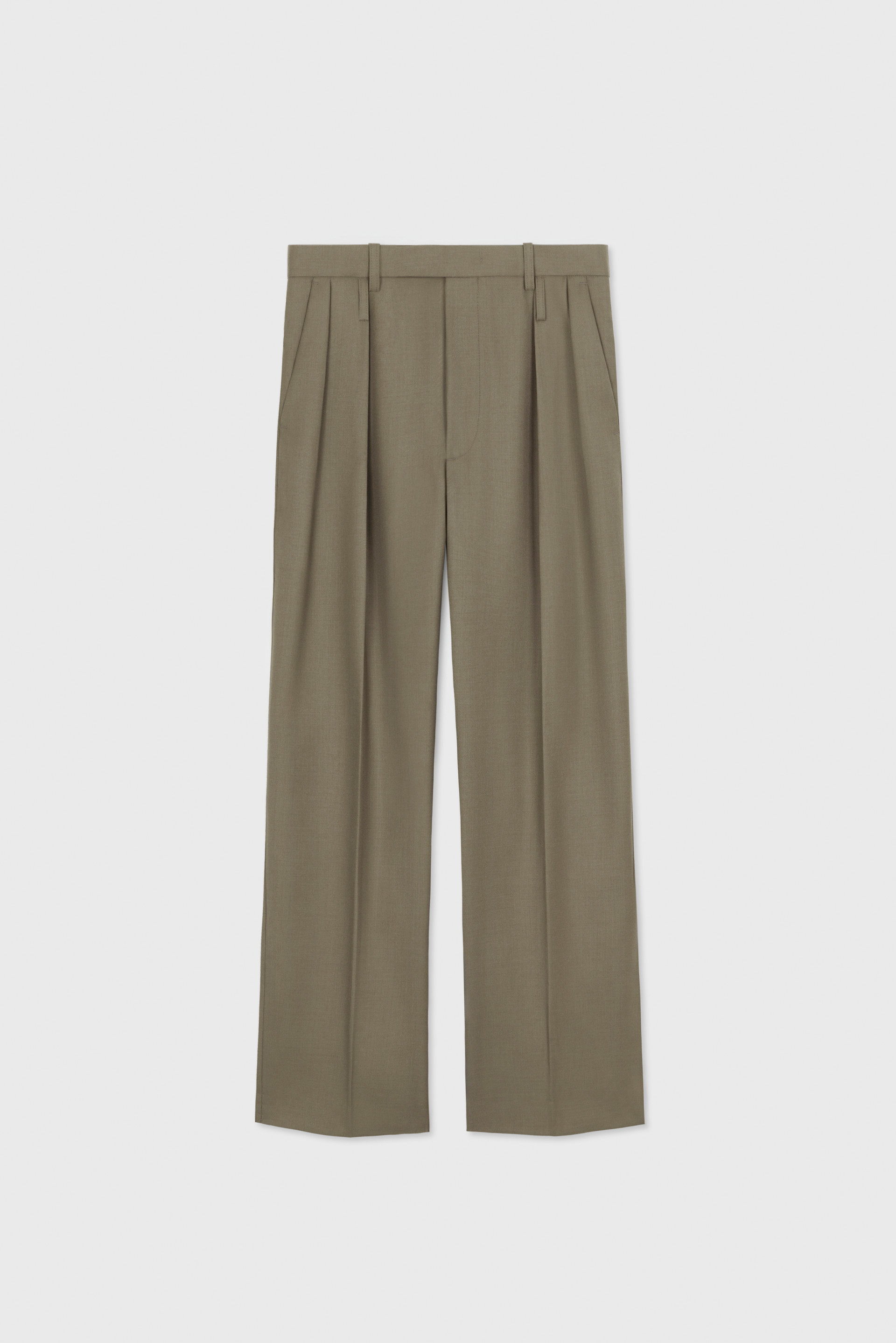 구조적인 실루엣의 토리노 테일러드 트라우저 입니다. 90년대 스모킹 룩의 실루엣을 재해석한 와이드 레그 실루엣에 두 개의 리버스 볼륨 플리츠를 더해 우아하고 정돈된 드레이프가 특징입니다. 더블 벨트 루프로 다양한 연출이 가능하며 세밀한 직조의 울 혼방 패브릭과 테일러드 베이스로 완성한 클래식 트라우저로 시간에 구애받지 않는 타임리스 아이템입니다.