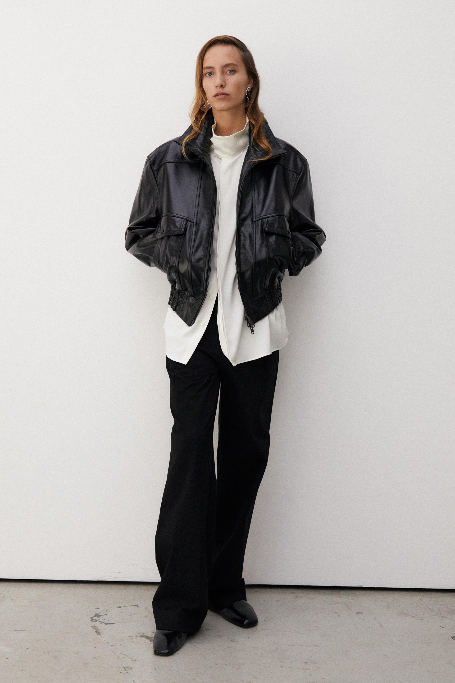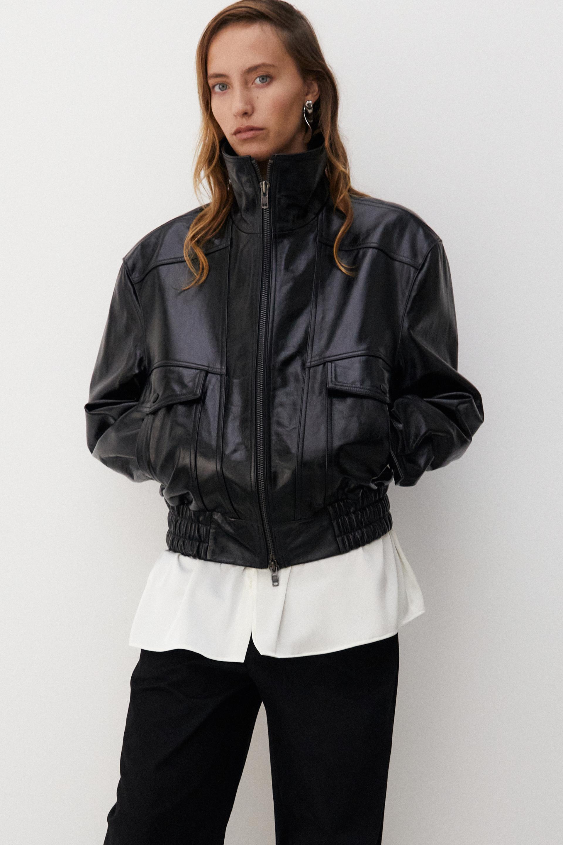 90년대 파워 드레싱 코드가 더해진 플라이트 보머를 재해석한 레더 재킷입니다. 터프한 광택이 더해진 오일 풀업 레더는 깊은 색감과 빈티지한 질감이 조화로운 우아함을 표현합니다. 오버사이즈 실루엣에 강조된 곡선형 숄더, 접어서도 연출할 수 있는 하이넥 칼라와 경쾌한 총장이 제품 전반의 무드를 구성합니다. 제한적인 디테일로 구성한 클래식 아이템으로 시간에 구애받지 않는 디자인의 레더 재킷입니다.