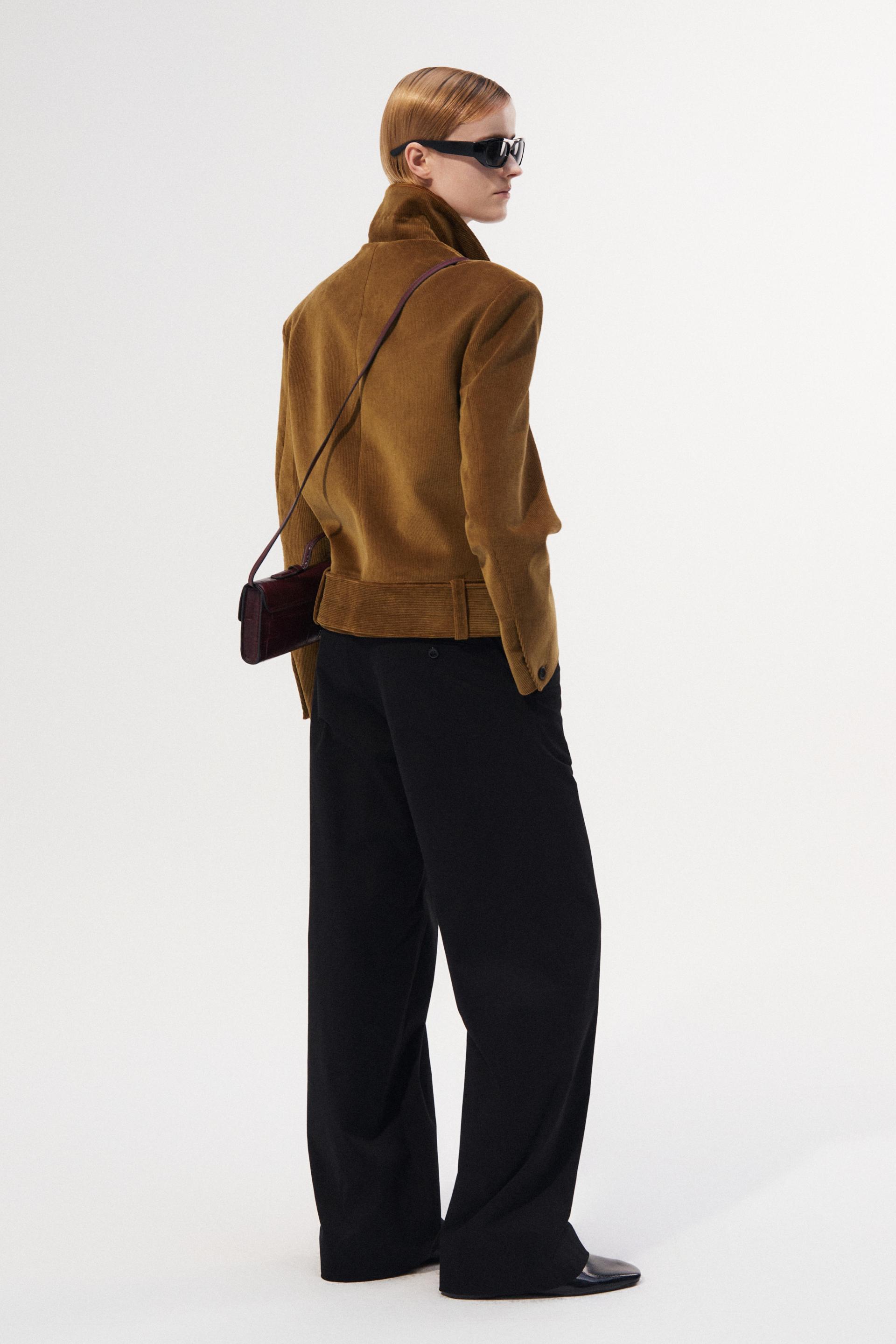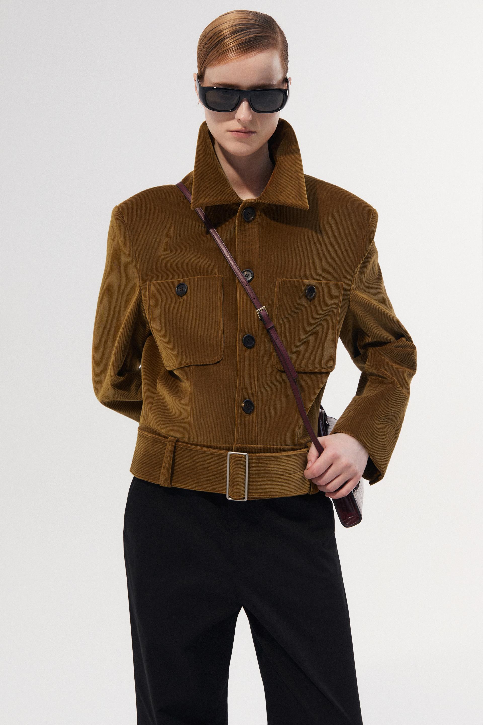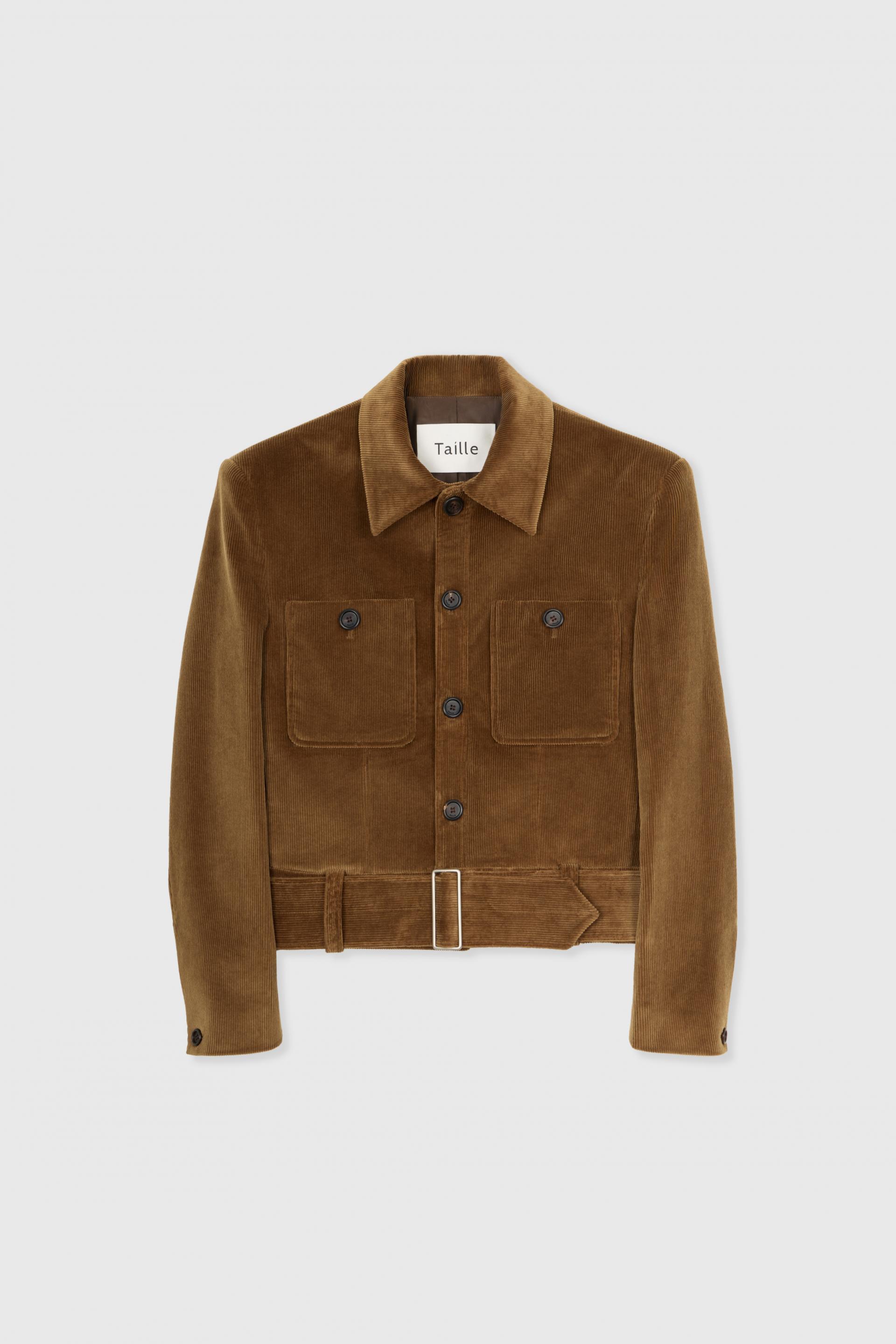 40년대 초 모터 재킷에 현대적 테일러링을 더해 재해석한 쇼트 재킷입니다. 깊고 오묘한 파티나 컬러링의 코듀로이 소재는 빈티지하면서 우아한 분위기를 동시에 연출합니다. 날카롭게 프레스된 세트인 슬리브와 짧은 기장감, 볼드한 벨트가 주는 절제된 터프함은 감각적인 룩의 완성도를 더합니다.