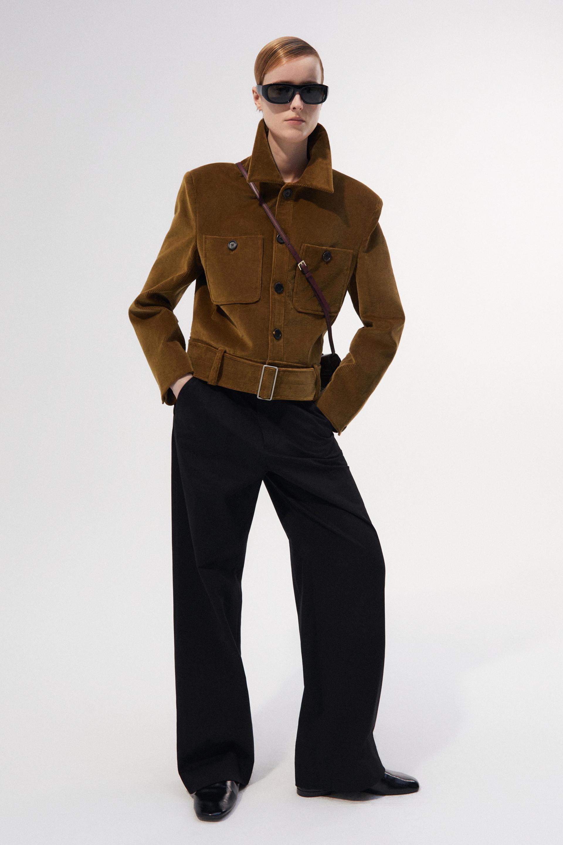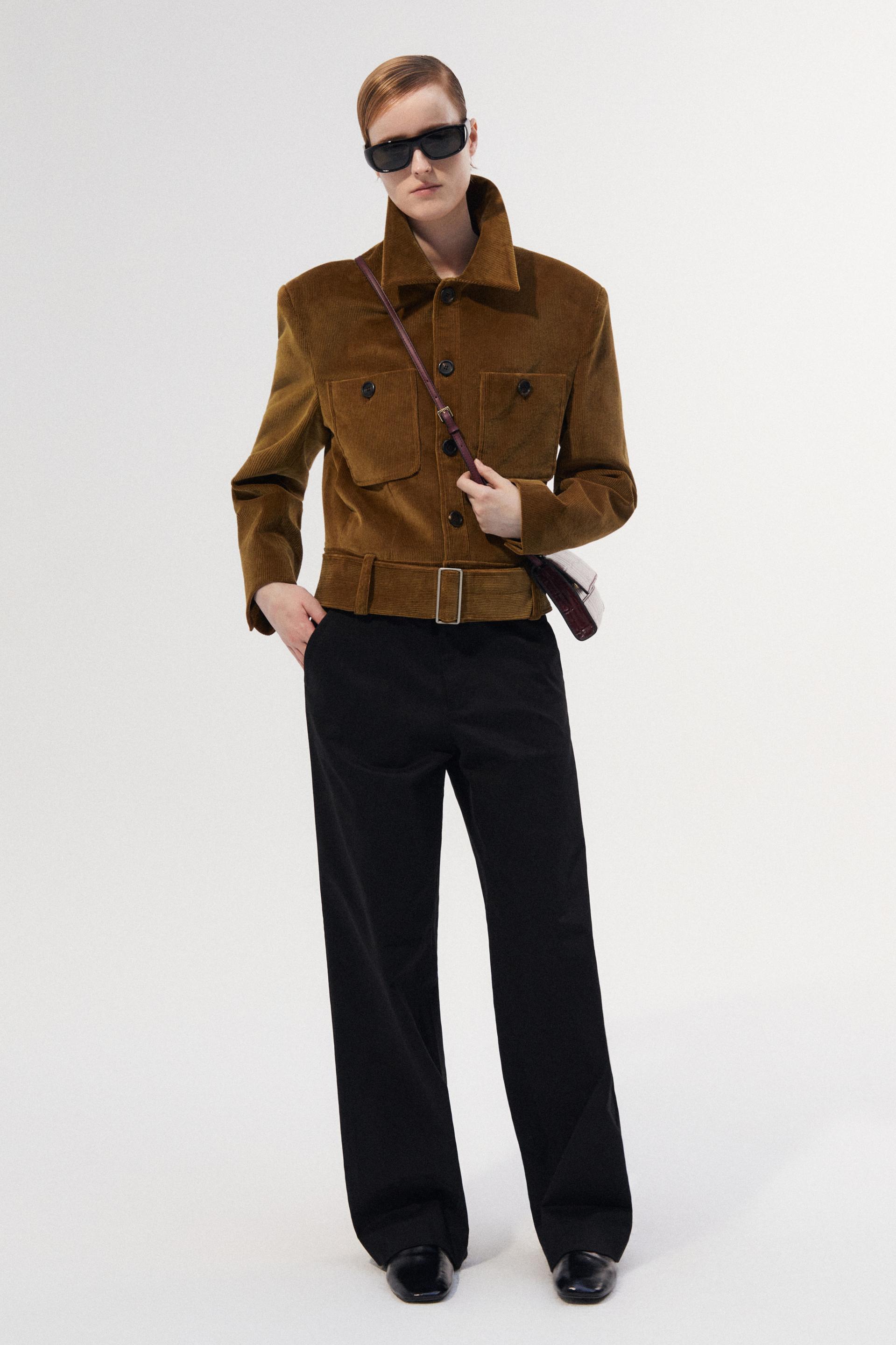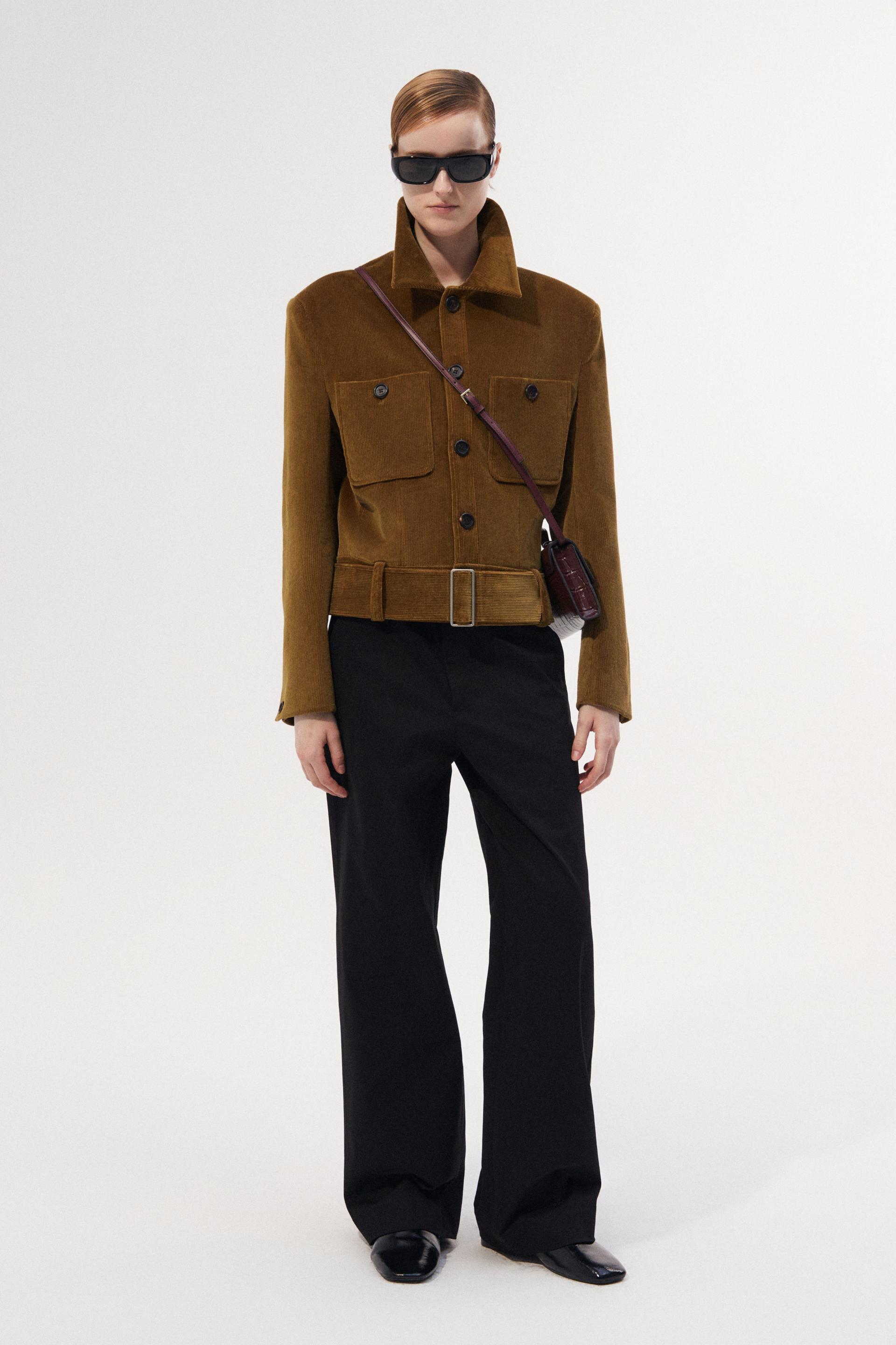 40년대 초 모터 재킷에 현대적 테일러링을 더해 재해석한 쇼트 재킷입니다. 깊고 오묘한 파티나 컬러링의 코듀로이 소재는 빈티지하면서 우아한 분위기를 동시에 연출합니다. 날카롭게 프레스된 세트인 슬리브와 짧은 기장감, 볼드한 벨트가 주는 절제된 터프함은 감각적인 룩의 완성도를 더합니다.