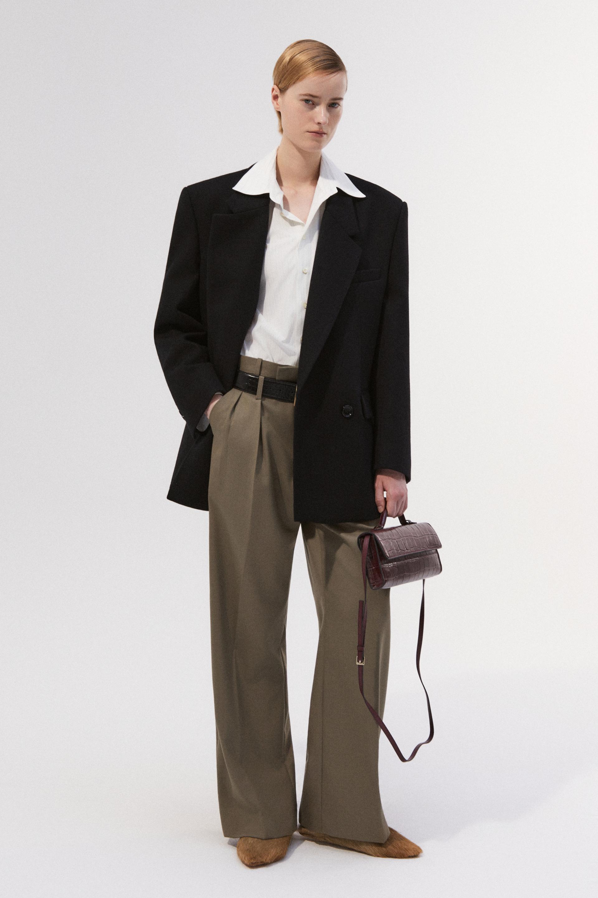 구조적인 실루엣의 토리노 테일러드 트라우저 입니다. 90년대 스모킹 룩의 실루엣을 재해석한 와이드 레그 실루엣에 두 개의 리버스 볼륨 플리츠를 더해 우아하고 정돈된 드레이프가 특징입니다. 더블 벨트 루프로 다양한 연출이 가능하며 세밀한 직조의 울 혼방 패브릭과 테일러드 베이스로 완성한 클래식 트라우저로 시간에 구애받지 않는 타임리스 아이템입니다.