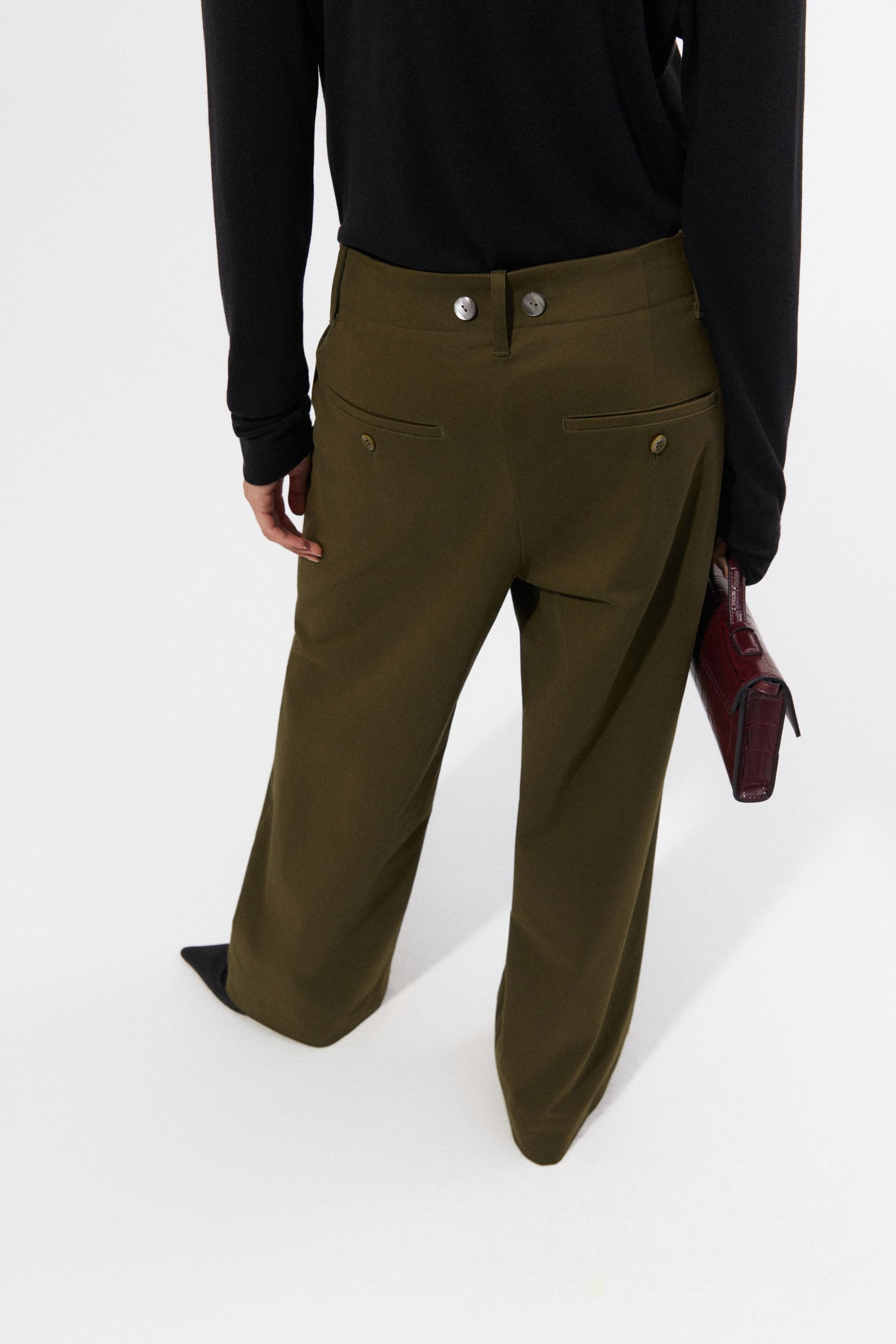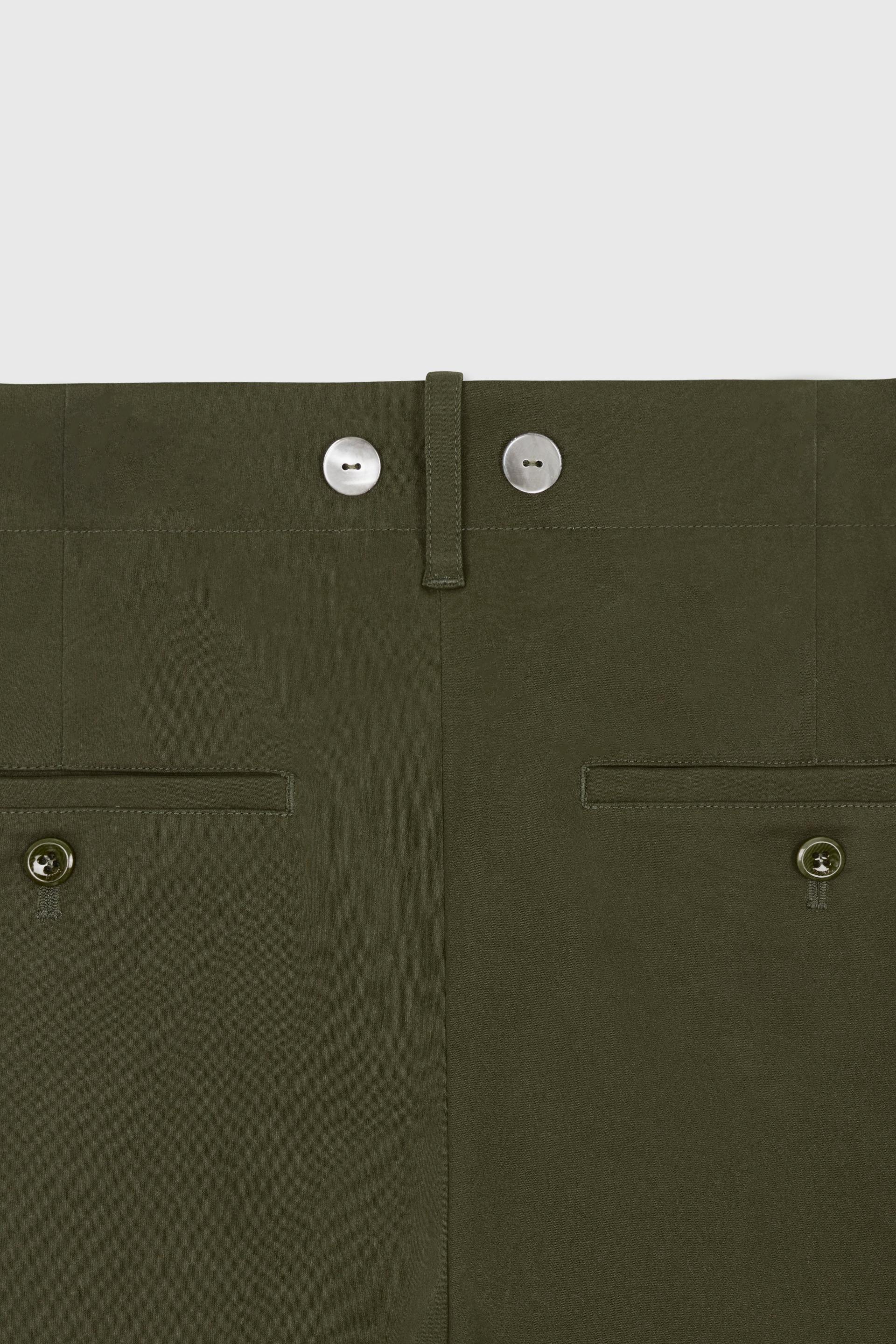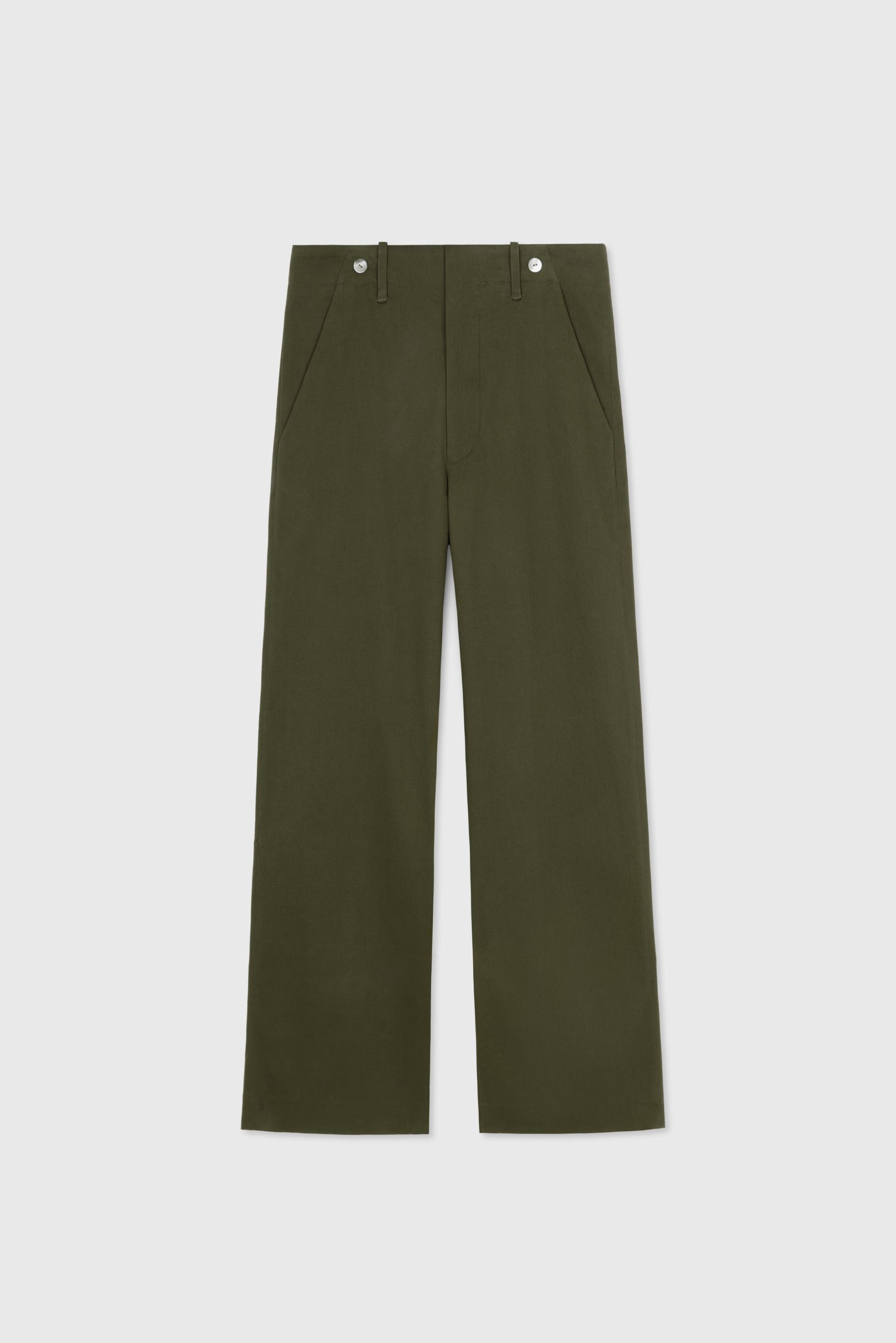 매트한 표면과 섬세한 밀도가 돋보이는 코튼 드릴 소재 브레이스 트라우저 입니다. 밴드리스 디자인에 서스팬더 버튼을 오마주한 자개 장식 단추가 특징적이며 헤리티지 스타일의 와이드 레그 실루엣입니다. 테일러드 베이스로 완성한 클래식 트라우저로 시간에 구애받지 않는 타임리스 아이템입니다.