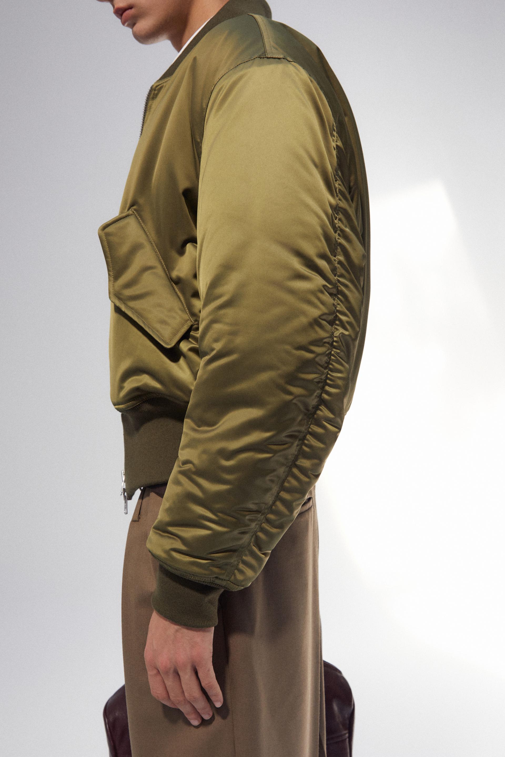 70년대 오리지널 플라이트 재킷을 제한적인 요소로 재구성한 보머 재킷입니다. 빛에 따라 반사되는 미묘한 톤과 광택이 현대적인 분위기를 더하는 메모러블 서지 소재와, 강조된 실루엣으로 완성된 아이코닉 시즌 아이템입니다. 빈티지 슬라이더 투웨이 지퍼는 다양한 실루엣 연출이 가능하고 소매 곡선을 따라 셔링으로 강조한 볼륨 슬리브와 밑단은 울 리브로 마감되었습니다. 충전재는 7.4oz 특수가공 신슐레이트를 사용해 뛰어난 통기성과 보온성을 지녔습니다.