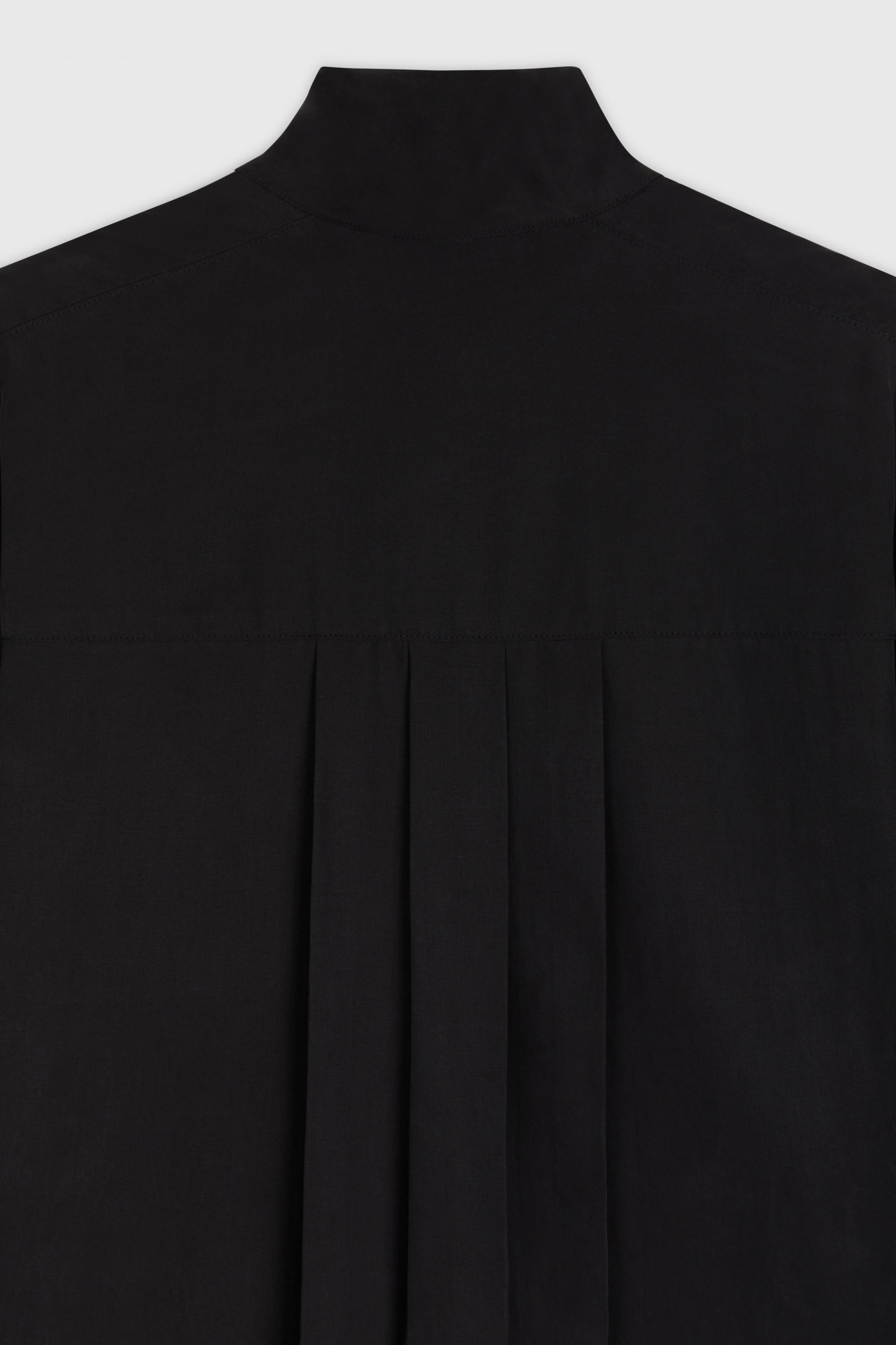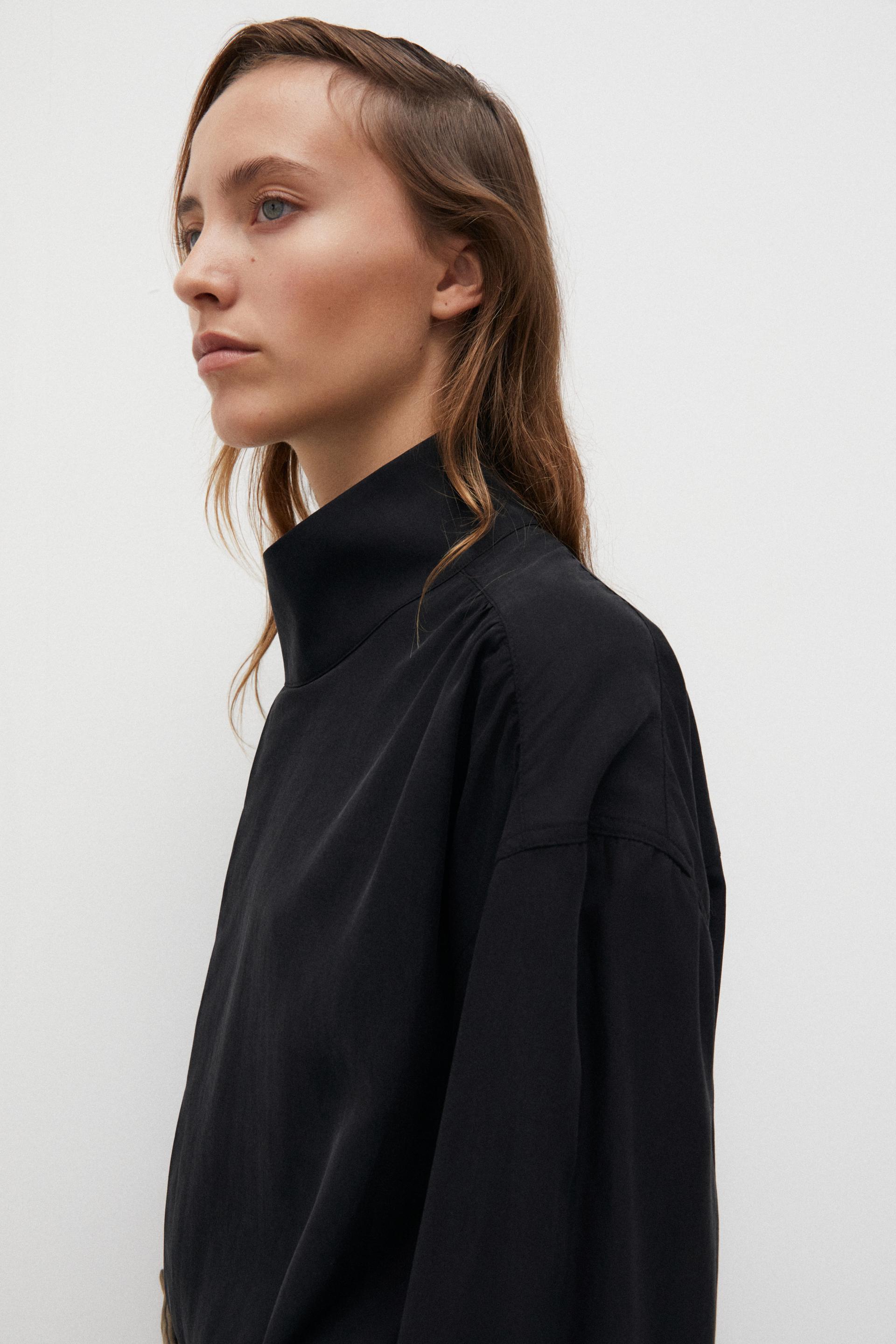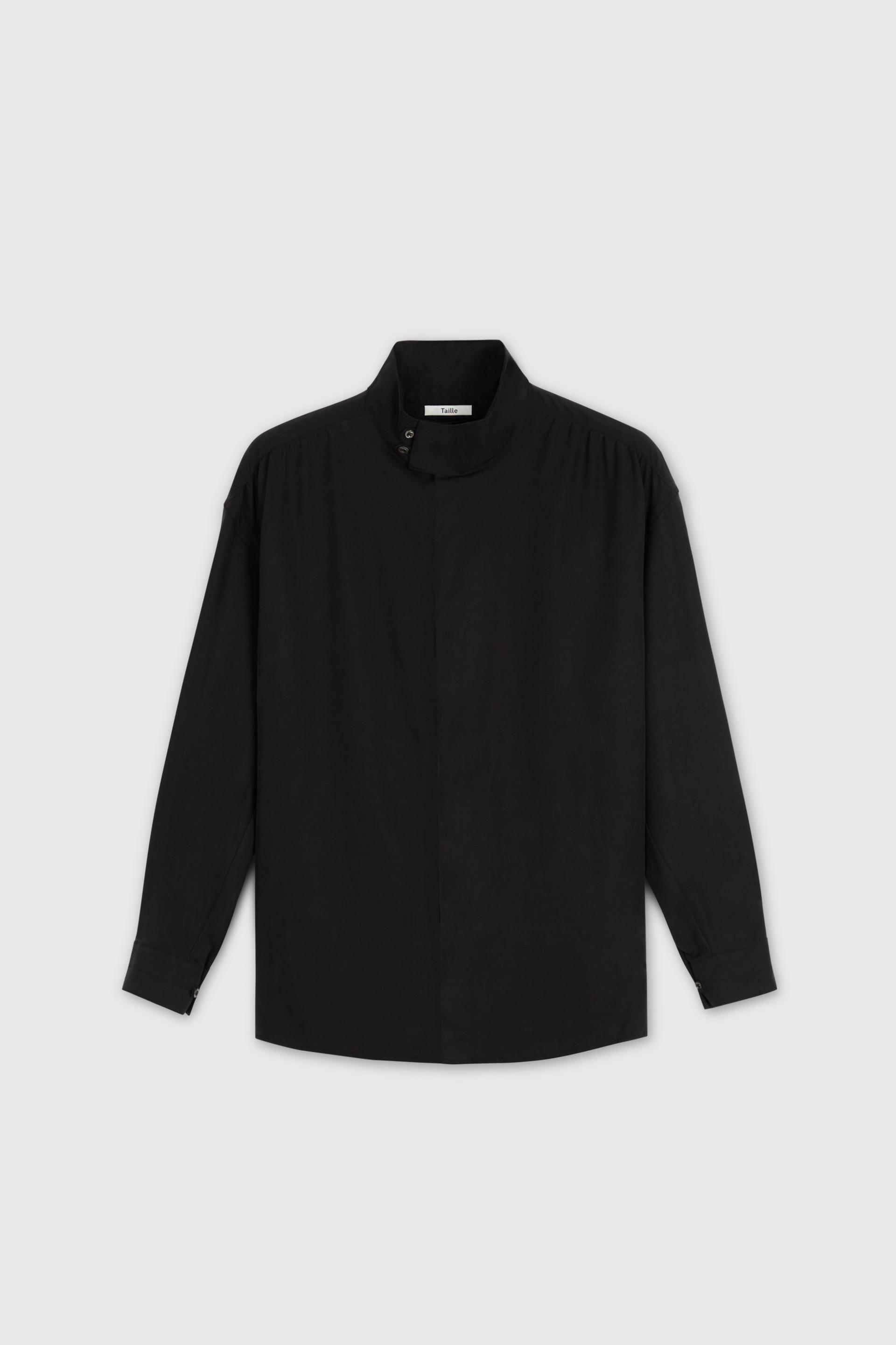 16세기 르네상스 풍 슈미즈를 현대적인 구조감, 매니시한 실루엣을 비추어 재해석한 셔츠입니다. 부드러운 드레이프가 특징인 텐셀 소재에 셔링을 더한 퍼프슬리브와 요크 절개는 중성적이고 우아하게 특별한 아웃핏을 구성합니다. 히든 플라켓과 여유있는 하이넥 타입, 후면에는 레이어 플리츠를 더해 입체적인 실루엣을 강조했습니다. 고전적 장식을 제한적이고 간결하게 재해석하여, 우아하면서도 동시대적인 분위기를 드러내는 키 아이템입니다.