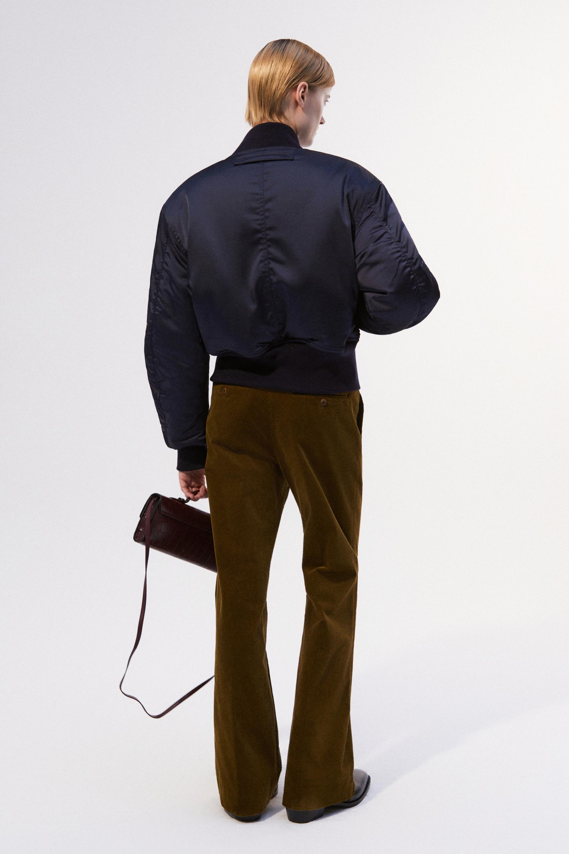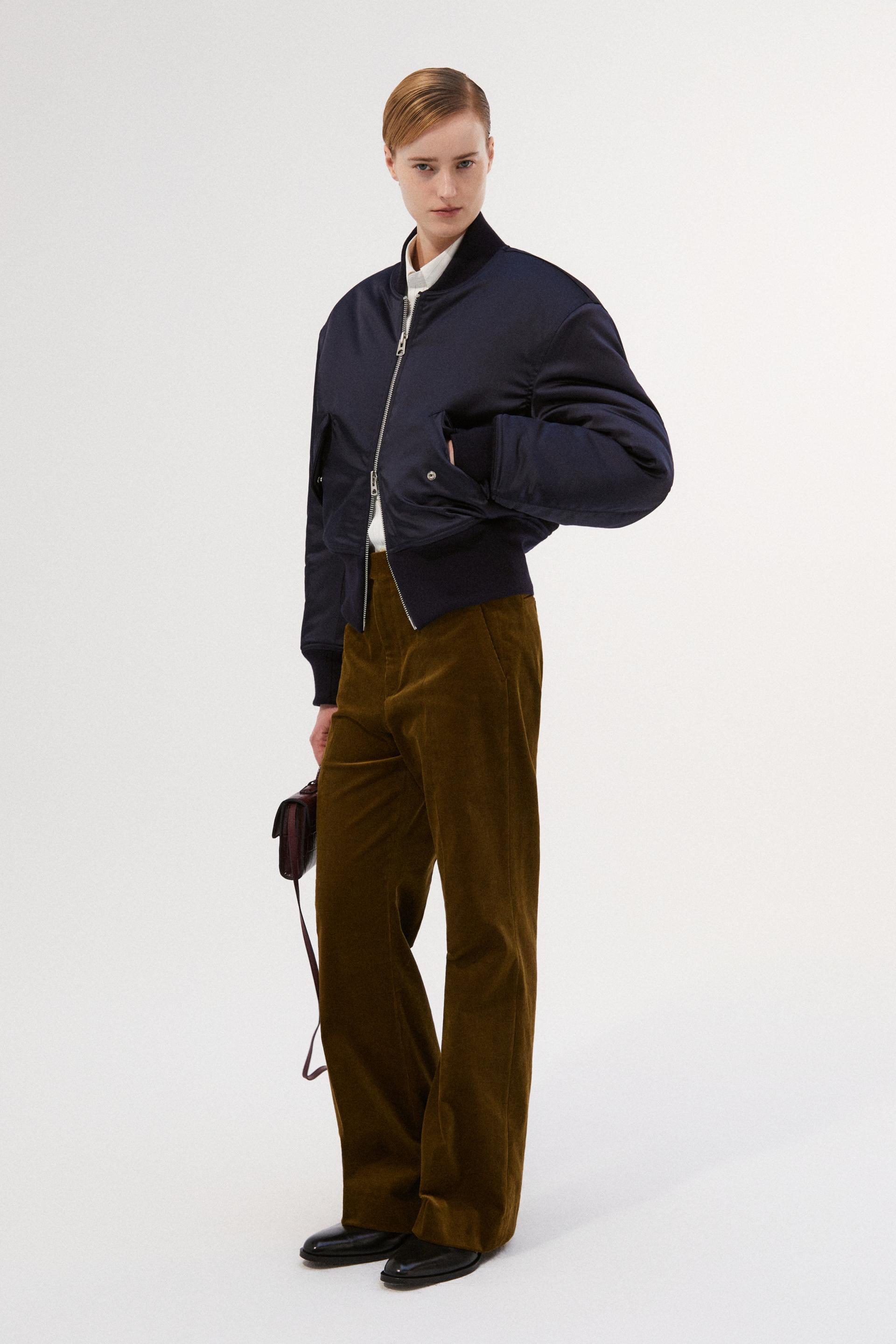 70년대 오리지널 플라이트 재킷을 제한적인 요소로 재구성한 보머 재킷입니다. 빛에 따라 반사되는 미묘한 톤과 광택이 현대적인 분위기를 더하는 메모러블 서지 소재와, 강조된 실루엣으로 완성된 아이코닉 시즌 아이템입니다. 빈티지 슬라이더 투웨이 지퍼는 다양한 실루엣 연출이 가능하고 소매 곡선을 따라 셔링으로 강조한 볼륨 슬리브와 밑단은 울 리브로 마감되었습니다. 충전재는 7.4oz 특수가공 신슐레이트를 사용해 뛰어난 통기성과 보온성을 지녔습니다.
