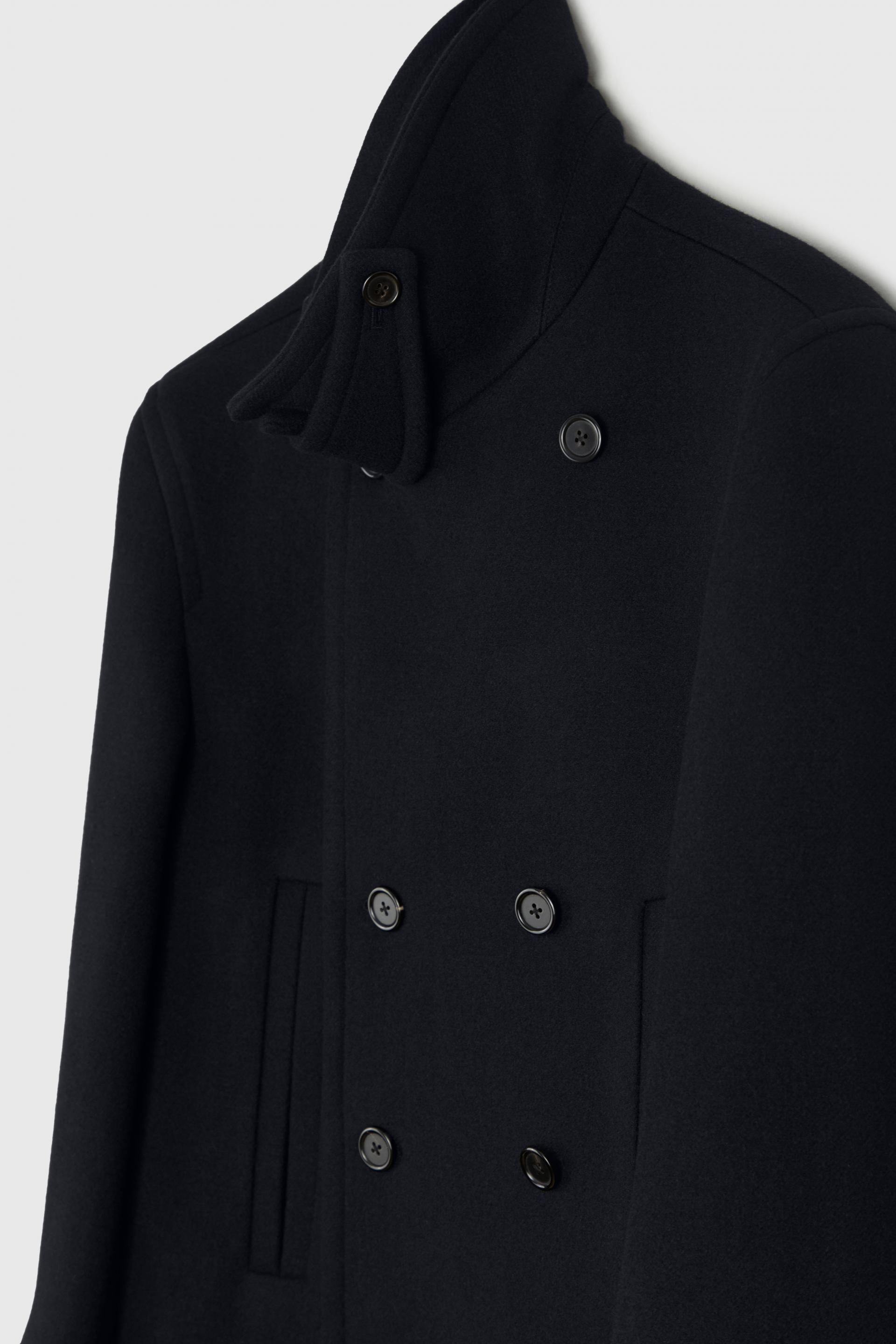 타일레 시그니처 코트 컬렉션, 단단한 질감과 은은한 광택을 가진 멜톤 울 소재 리퍼 코트입니다. 브리티시 테일러링 스타일의 숄더라인과 간결한 박스 실루엣이 우아하고 모던한 분위기를 연출합니다. 오리지널 리퍼 코트를 재해석한 아이템으로 앞 단을 모두 여밀 수 있는 리퍼 칼라와 넥밴드, 오버사이즈 머프 포켓이 있습니다. 패드를 삭제한 언컨스트럭티드 패턴을 적용, 어깨를 감싸는 편안한 착용감이 특징이며 정교한 테일러링 베이스로 메이킹 한 클래식 아이템입니다.