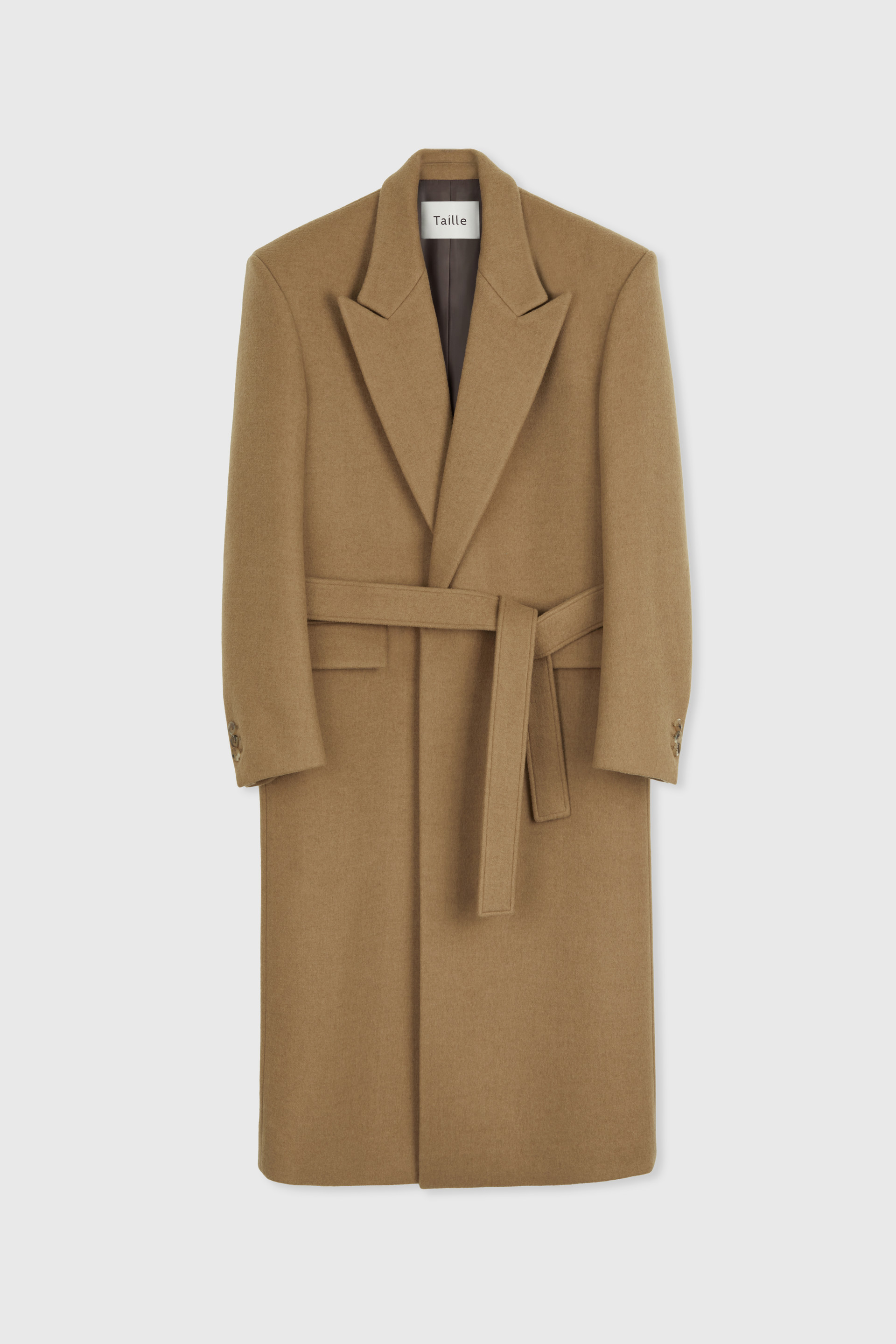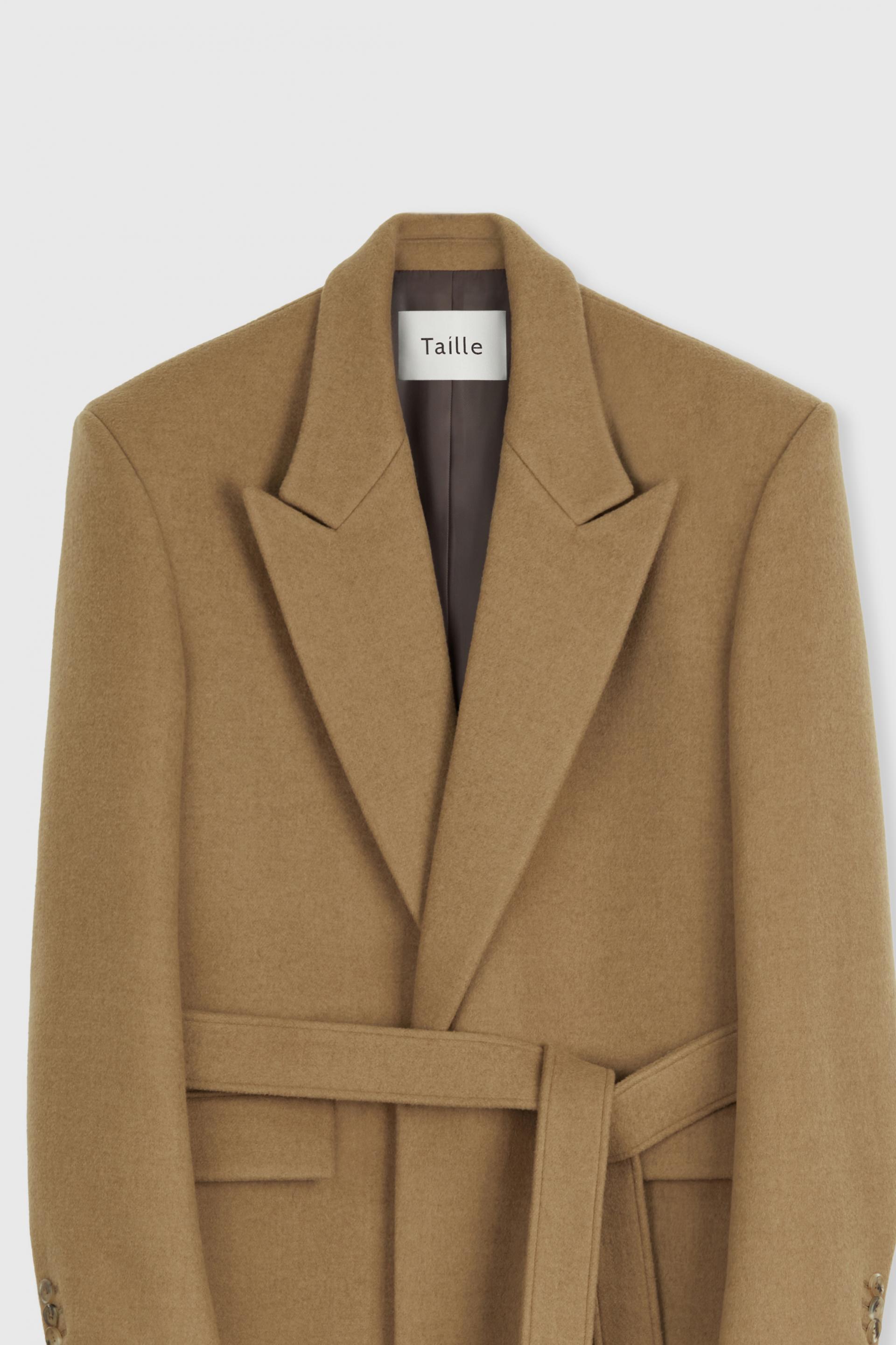 타일레 시그니처 코트 컬렉션, 부드러운 감촉과 라이트한 볼륨의 소프트 울 소재 로브 코트입니다. 정교한 테일러링이 돋보이는 박스 실루엣의 숄더라인에 자연스러운 드레이프가 우아한 분위기를 연출합니다. 싱글 브레스티드 포맷에 피크드 라펠, 다양한 실루엣을 연출할 수 있는 웨이스트 벨트와 볼륨있는 소매의 섬세한 곡선이 특징입니다. 사토리얼 베이스로 완성된 하이 퀄리티 클래식 코트로 소매에는 리얼버튼이 적용되었고 사용된 단추는 모두 천연 소뿔단추입니다.