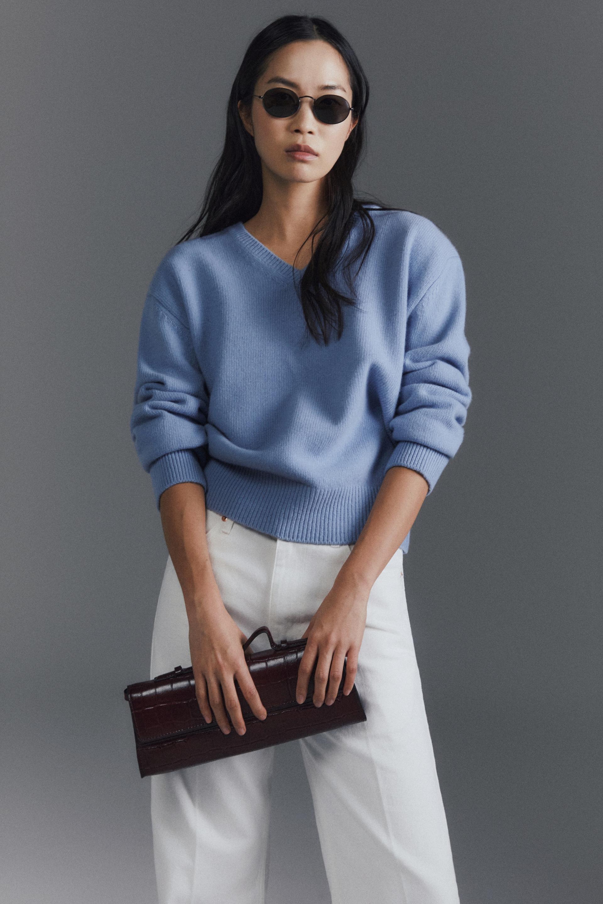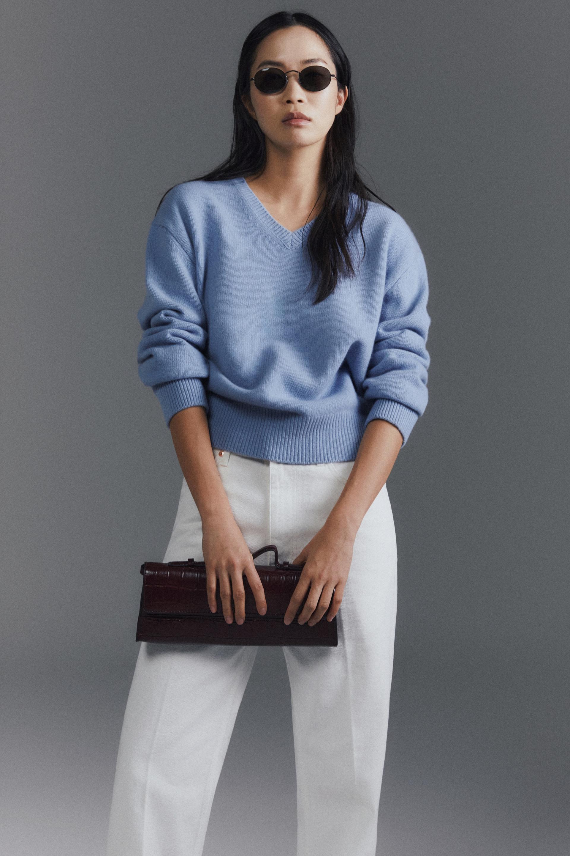 PARMA WOOL TL CLASSIC V-NECK SWEATER IVY BLUE