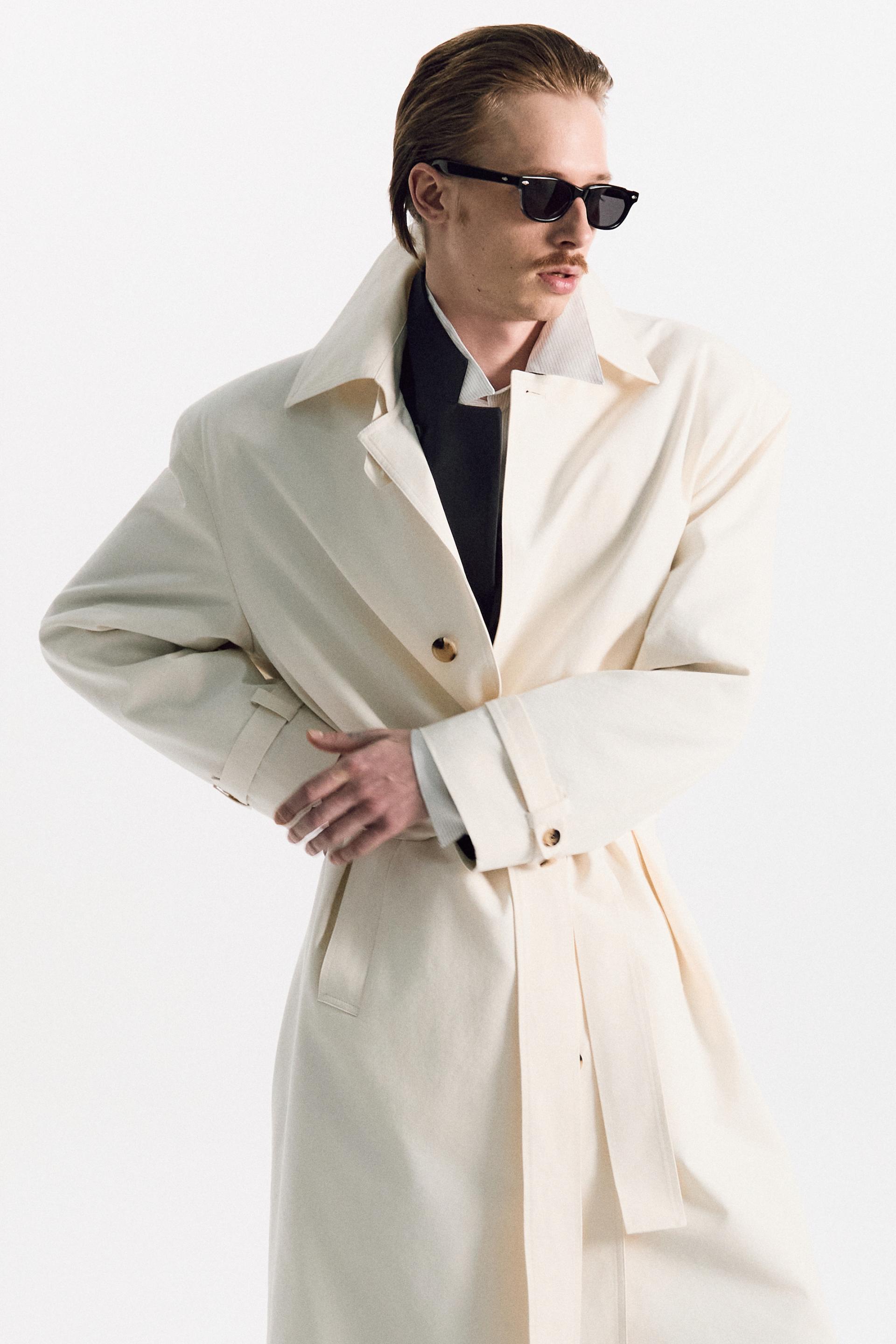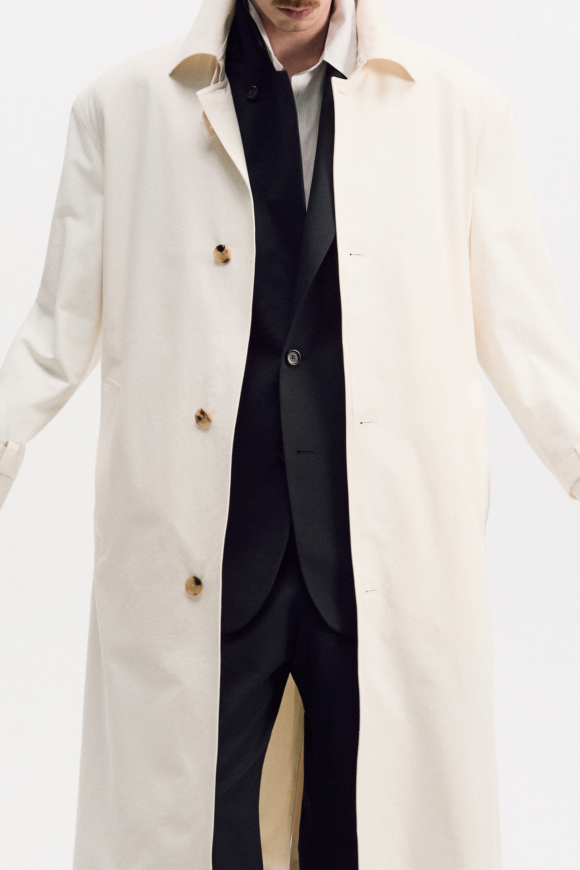 파시 트렌치 코트 본은 코튼 레이온 소재가 만들어내는 우아한 드레이프와 아이코닉한 오버사이즈 실루엣을 중심으로 설계된 헤리티지 아이템입니다. 싱글 브레스티드 여밈, 넓은 스프레드 칼라, 강조된 어깨와 볼륨있게 떨어지는 슬리브는 정교한 테일러링 베이스로 완성됩니다. 불필요한 디테일을 최소화해 고유의 실루엣과 드레이프에 집중한 디자인은 어떠한 아웃핏에도 자연스러운 감각을 더합니다.