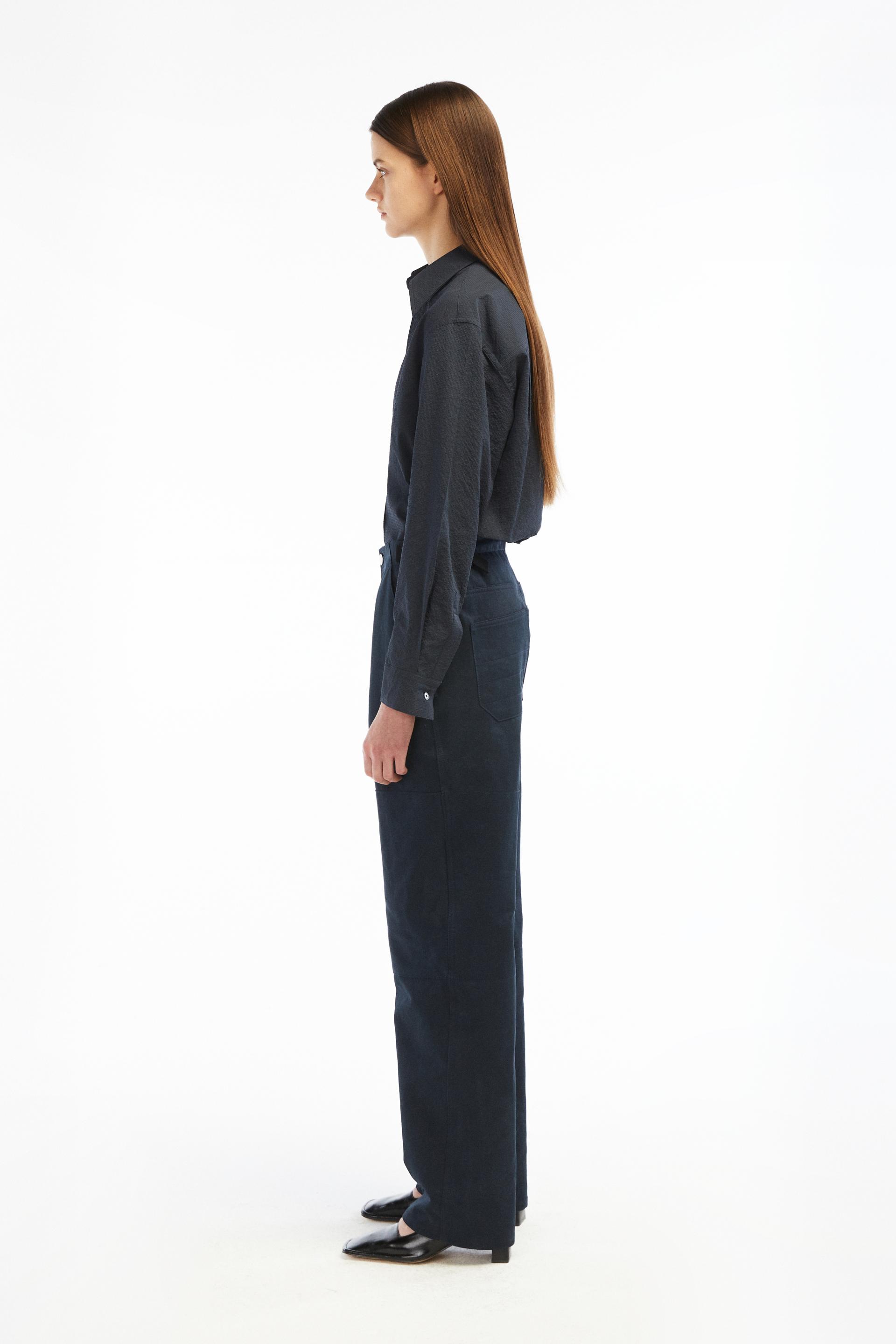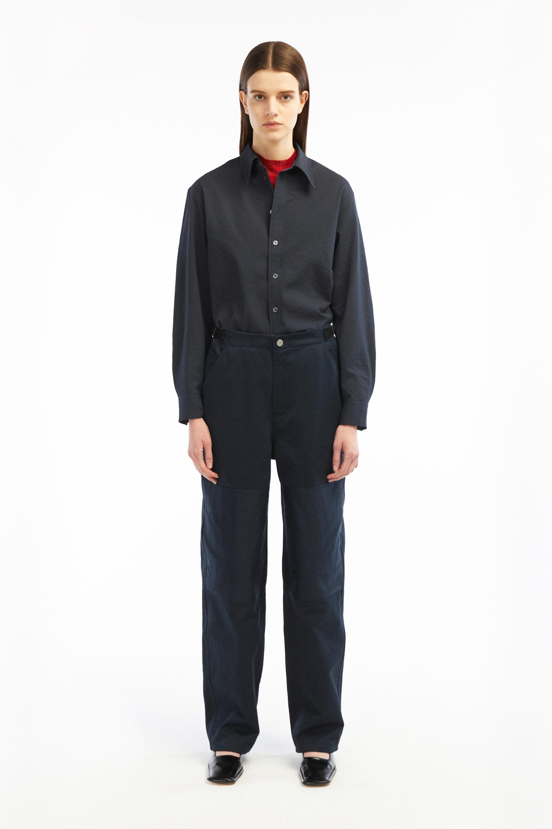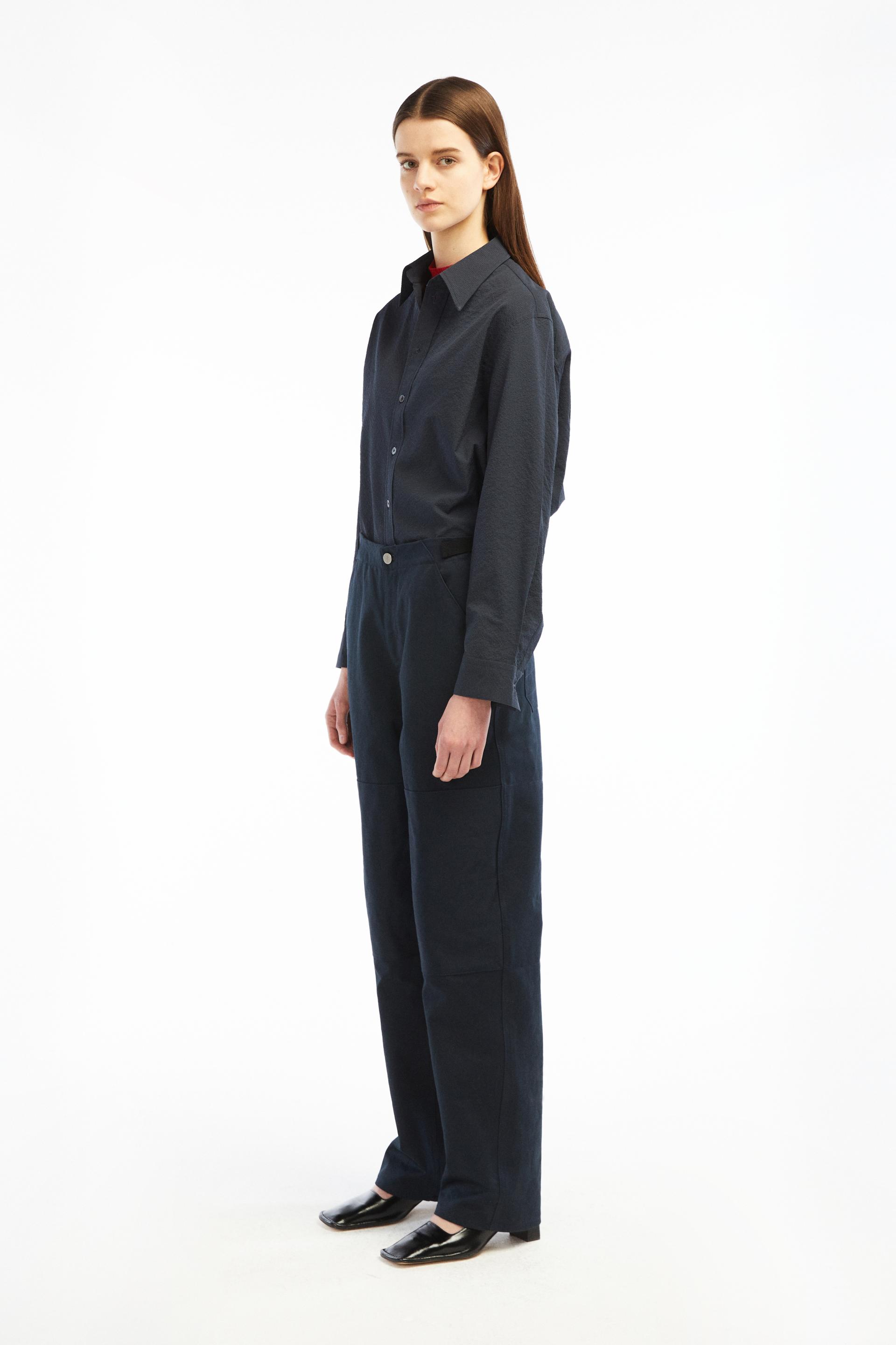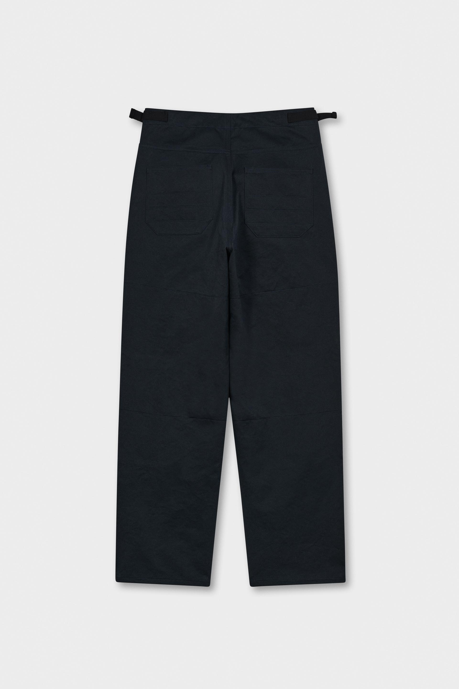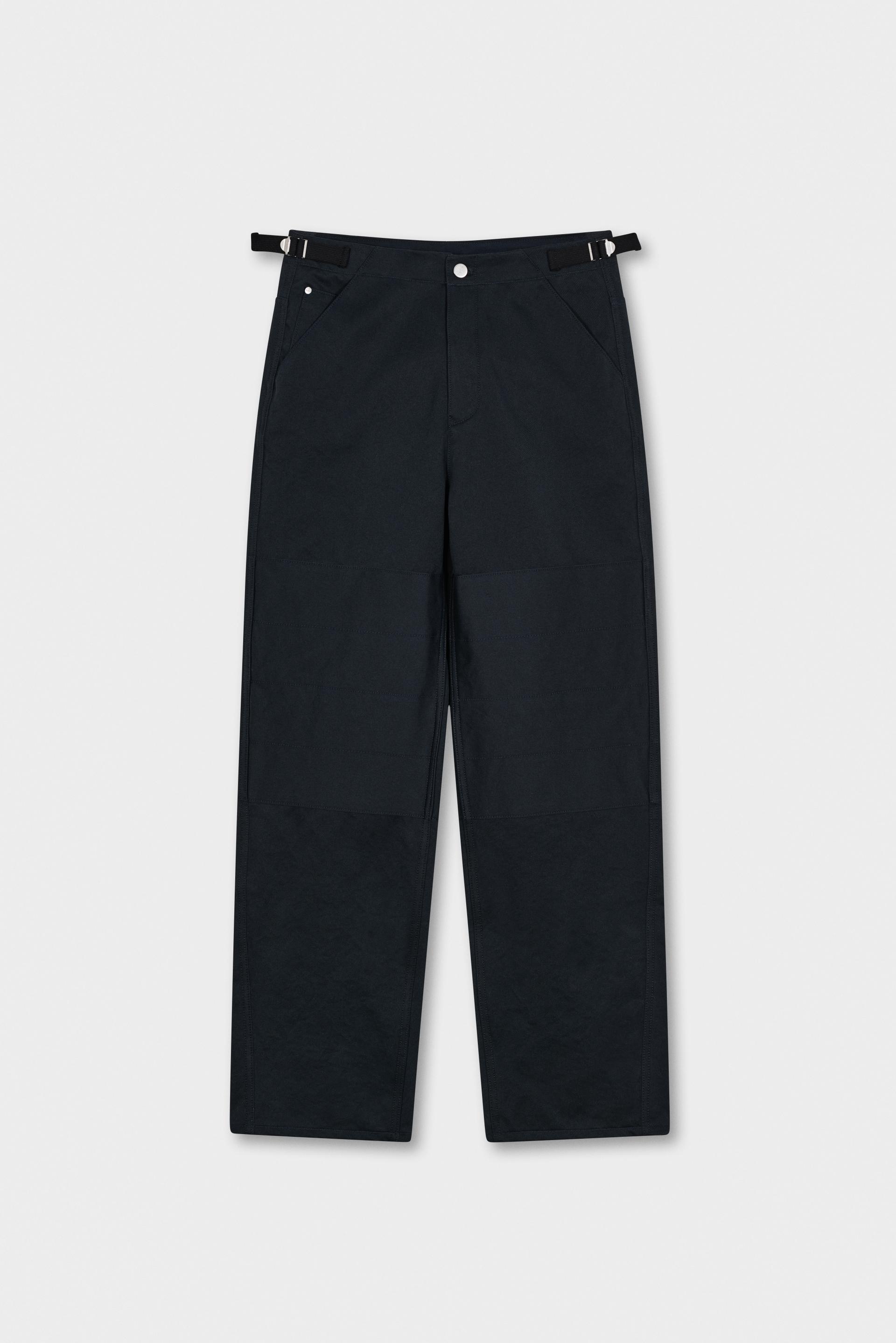 60-70년대 공예작가들의 아뜰리에 워크웨어에 영감을 얻은 팬츠입니다. 무릎에 덧대어진 패치와 퀼팅스티치가 특징적인 디자인으로 러스틱하지만 세련된 분위기를 가진 아이템입니다. 벨트리스 포맷에 본 직조 코튼소재 사이드어드저스트가 있고 밑단까지 여유가 있는 와이드 테이퍼드 핏입니다.