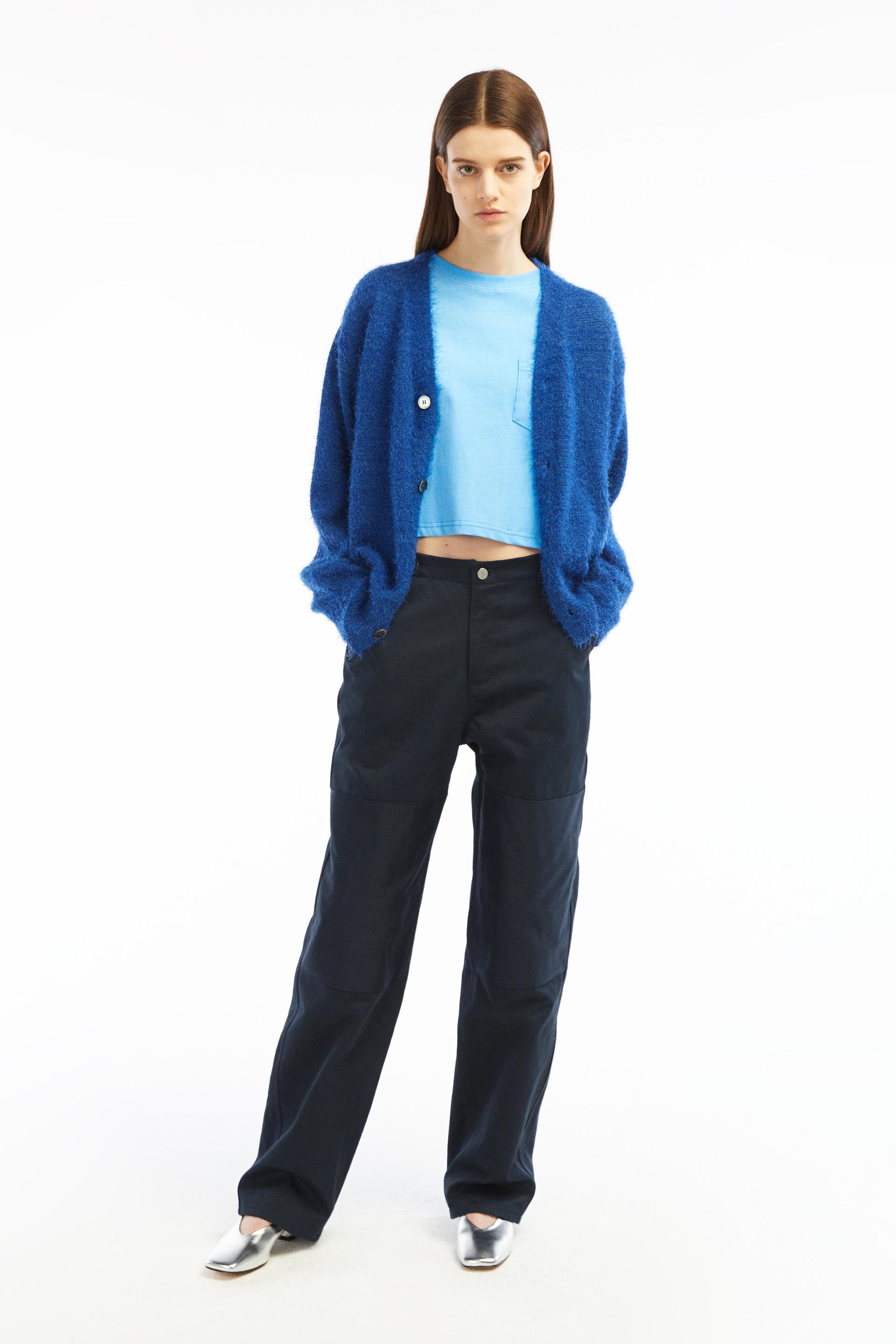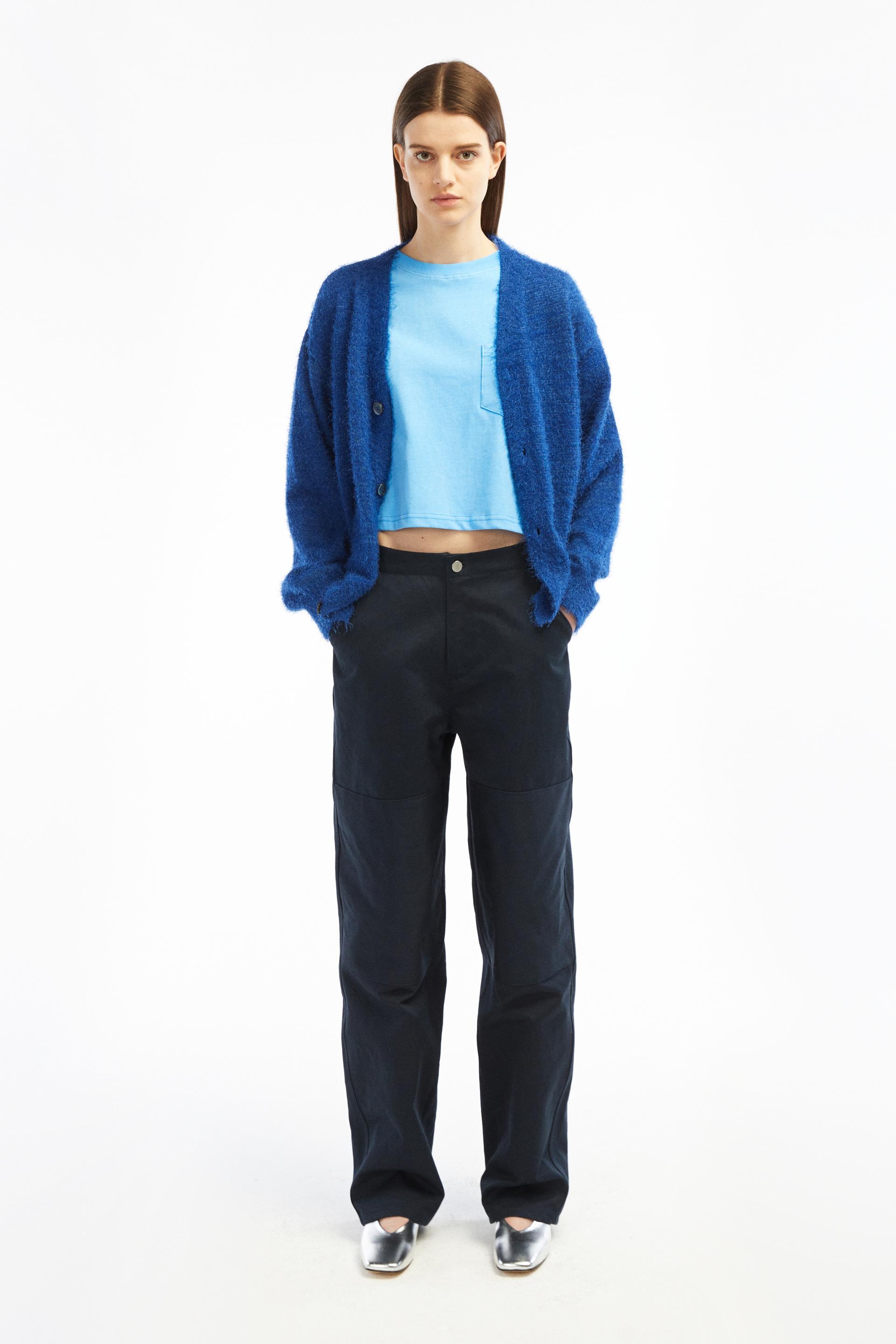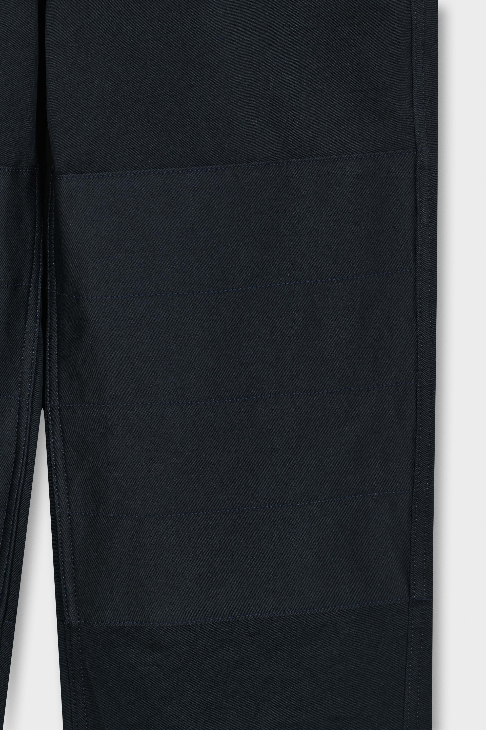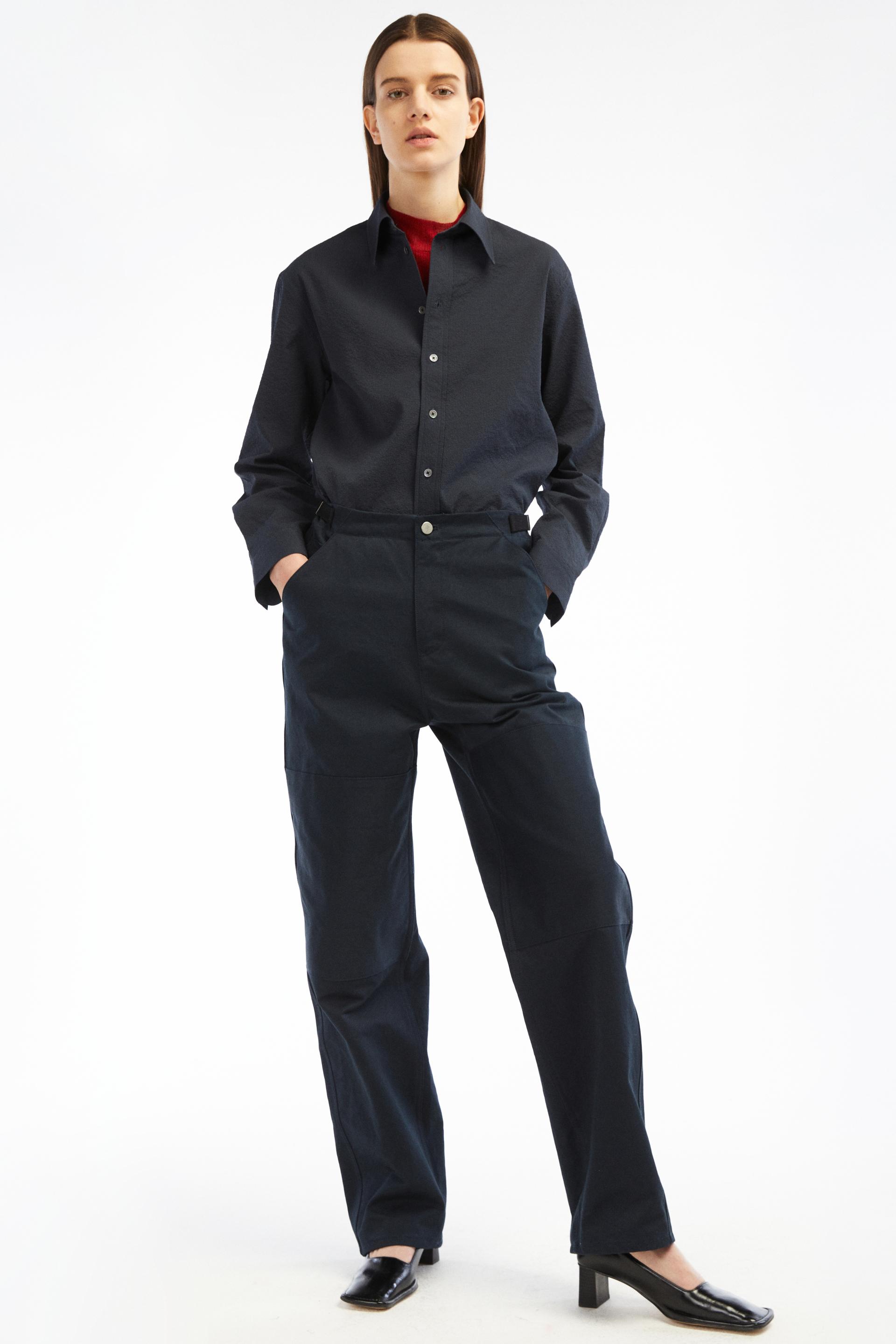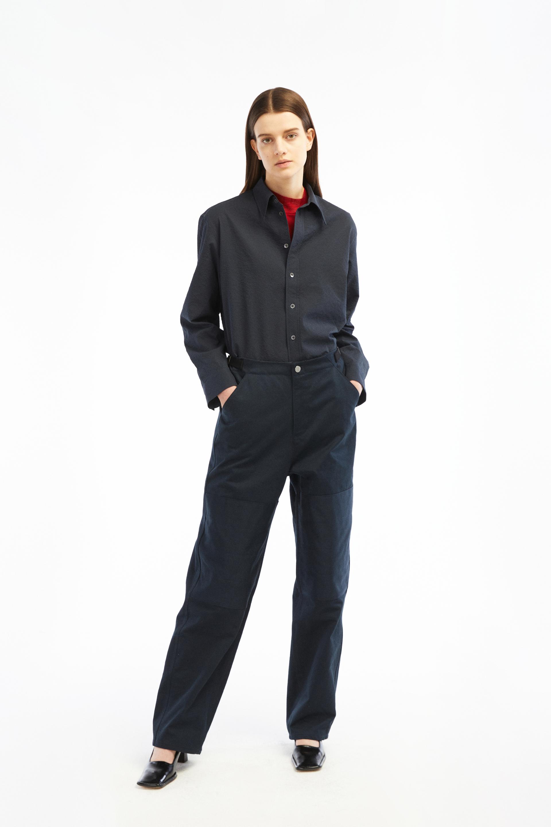 60-70년대 공예작가들의 아뜰리에 워크웨어에 영감을 얻은 팬츠입니다. 무릎에 덧대어진 패치와 퀼팅스티치가 특징적인 디자인으로 러스틱하지만 세련된 분위기를 가진 아이템입니다. 벨트리스 포맷에 본 직조 코튼소재 사이드어드저스트가 있고 밑단까지 여유가 있는 와이드 테이퍼드 핏입니다.