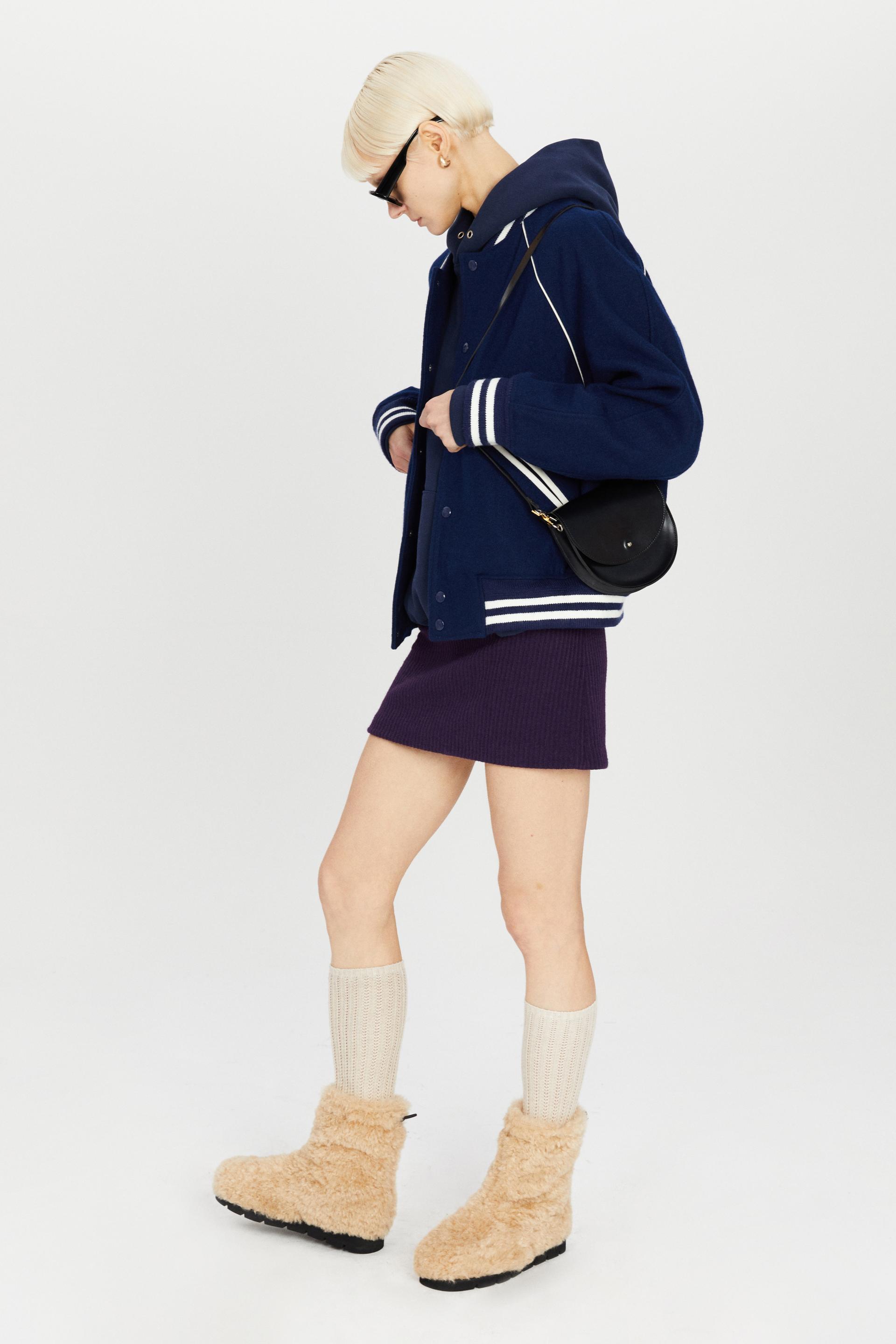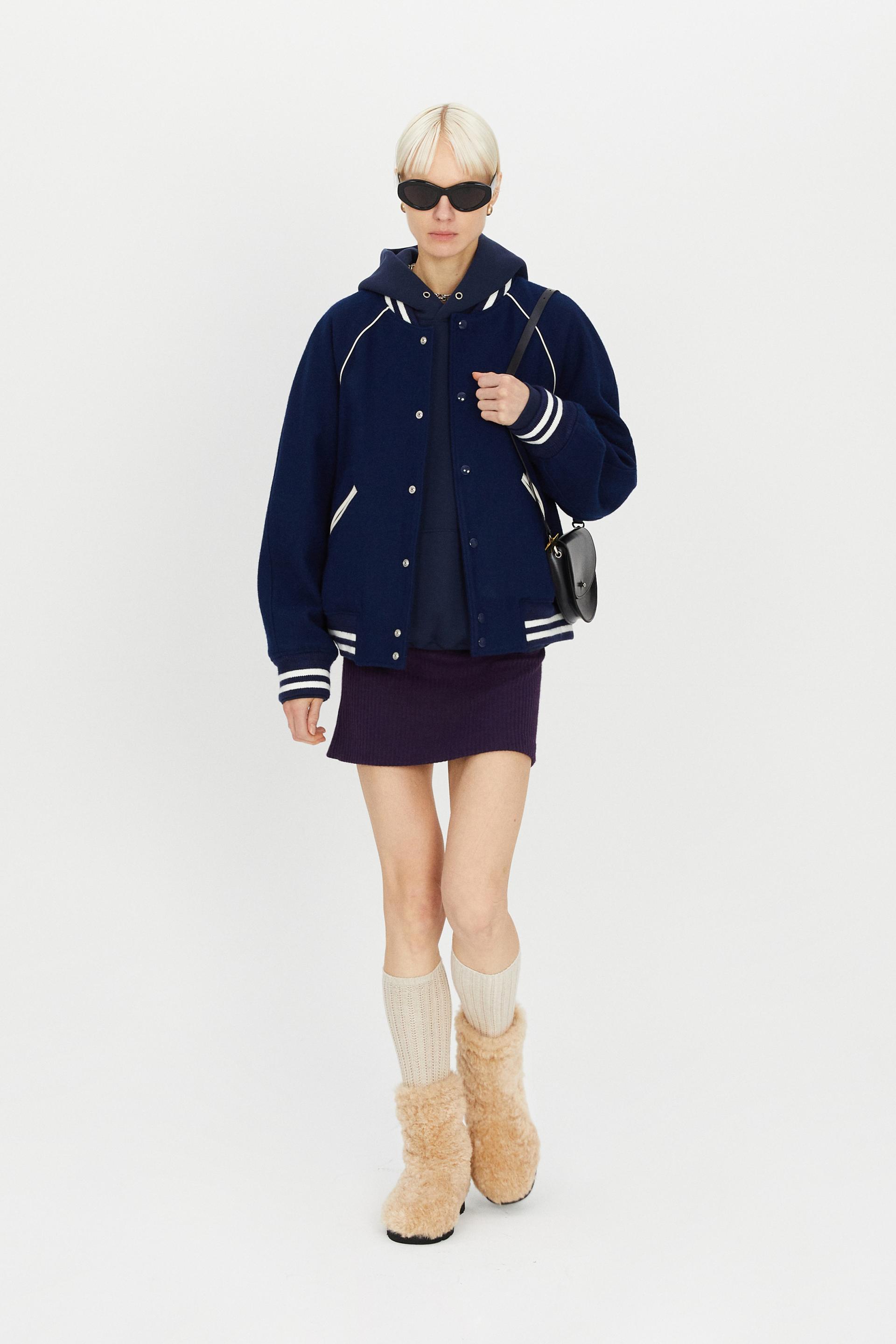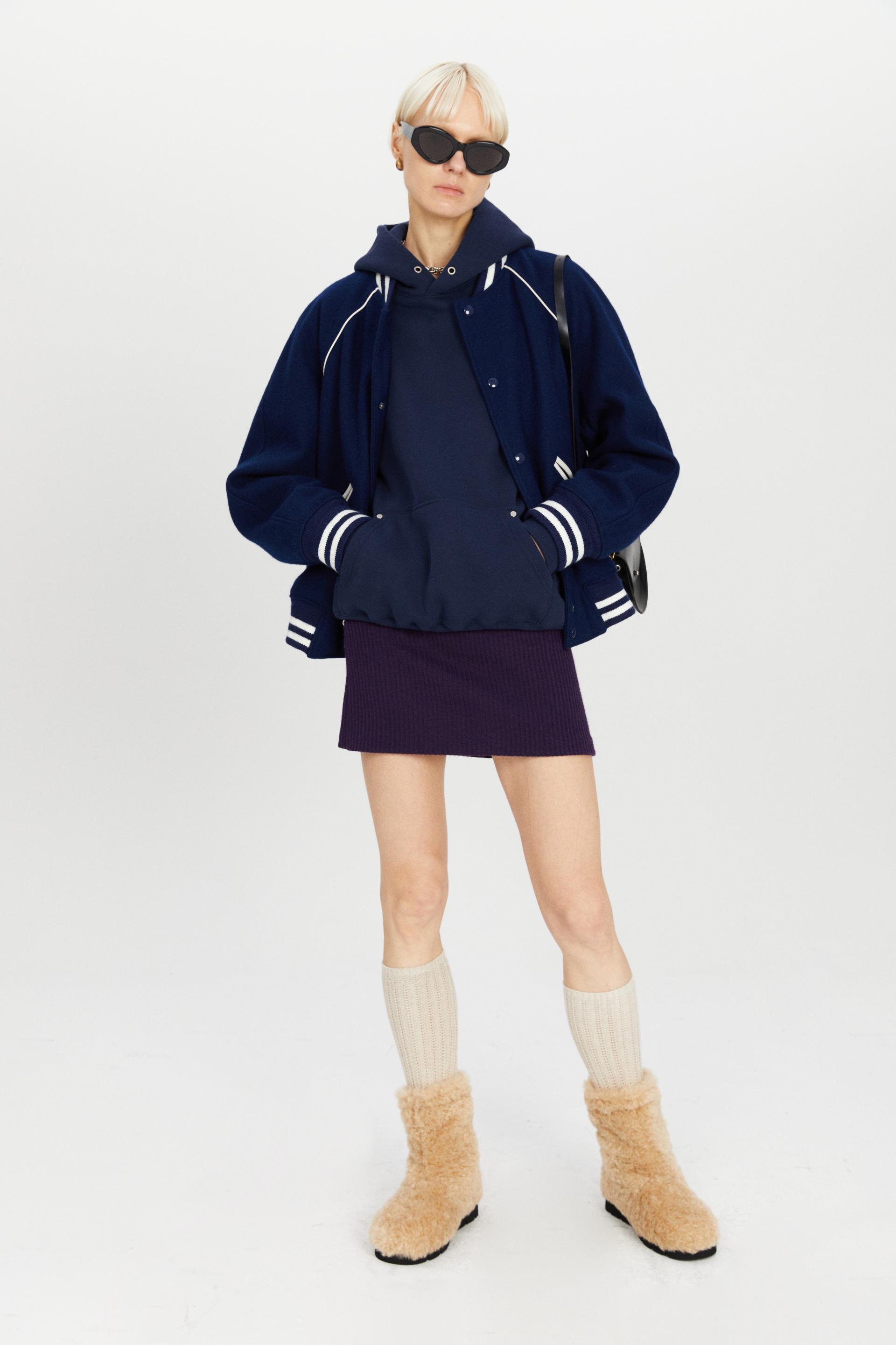 80년대 오리지널 바시티 자켓을 현대적인 분위기로 재해석한 클럽 자켓입니다. 깊은 곡선으로 재단한 레글런 라인은 어깨 볼륨을 유지해 우아한 실루엣을 연출합니다. 단단한 터치가 매력적인 멜톤 울 소재를 사용했으며 자켓의 후면은 80'S 오리지널 아이덴티티를 복각한 체인스티치로 장식했습니다. 양 쪽의 포켓입구는 천연 소가죽을 사용, 네크라인과 밑단 립은 한 줄의 케이블 니팅을 더해 내구성을 높였습니다. 여유로운 실루엣에 경쾌한 기장감으로 다양한 연출이 가능한 클래식 아이템입니다.