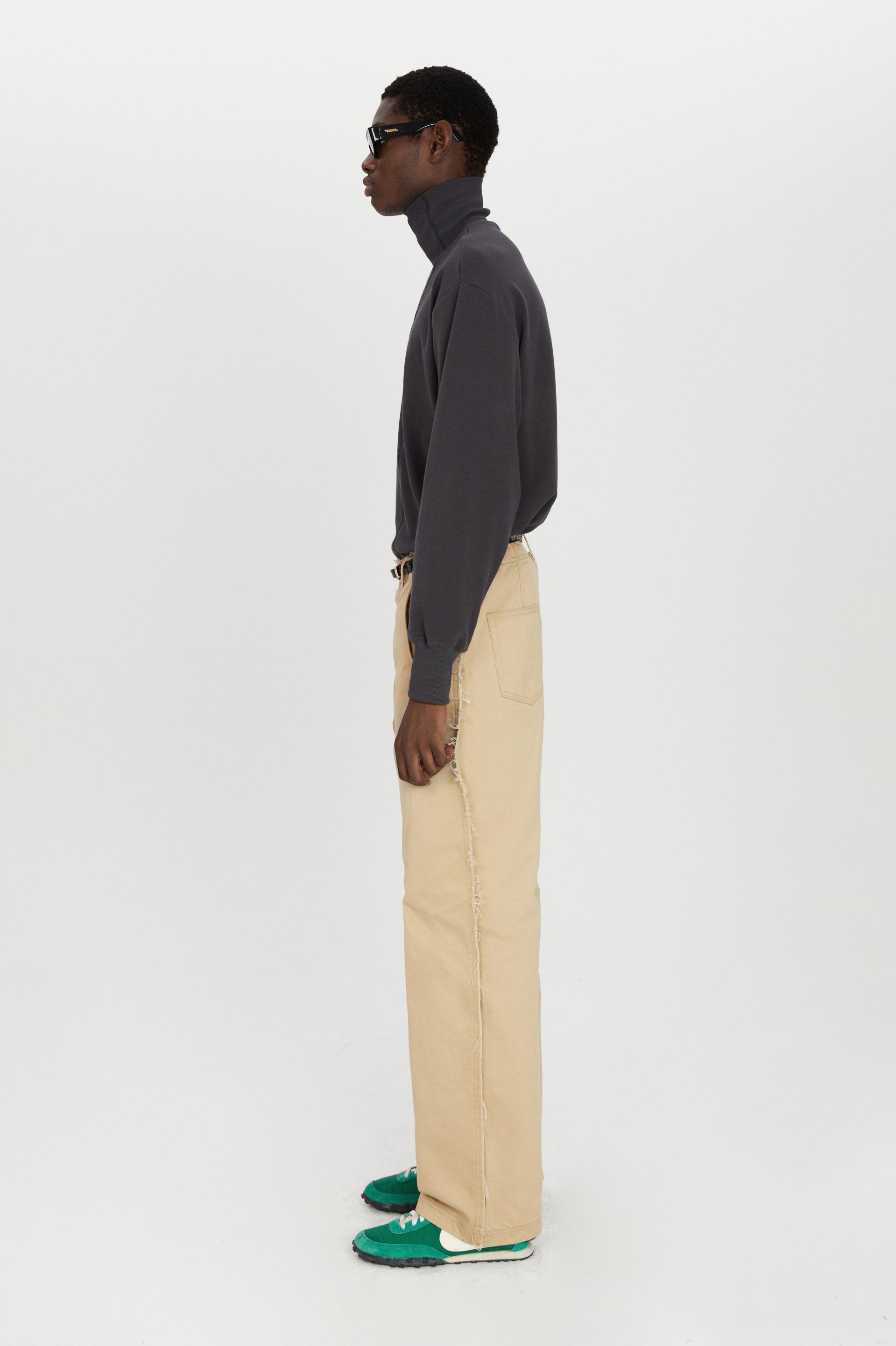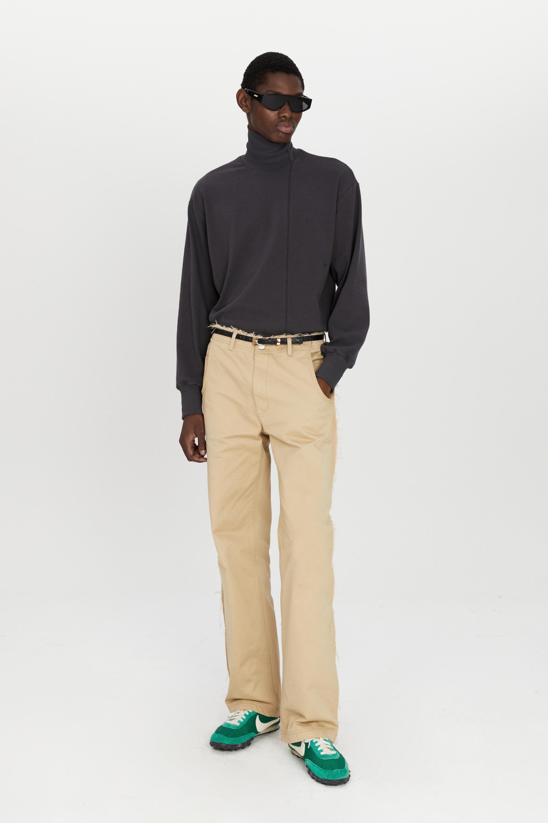 부드러운 텍스처의 코튼 혼방으로 제작된 모크넥 탑입니다. 여유로운 실루엣에 길지 않은 총장이 특징적이며 감각적인 고유의 컬러감이 다양한 레이어링에 용이합니다. 목부터 전면부를 가르는 인터로크 절개라인과 왼쪽 가슴 하단 타일레 인시그니아 심볼 자수가 있습니다. 소매단과 네크라인은 립으로 마감되었습니다.