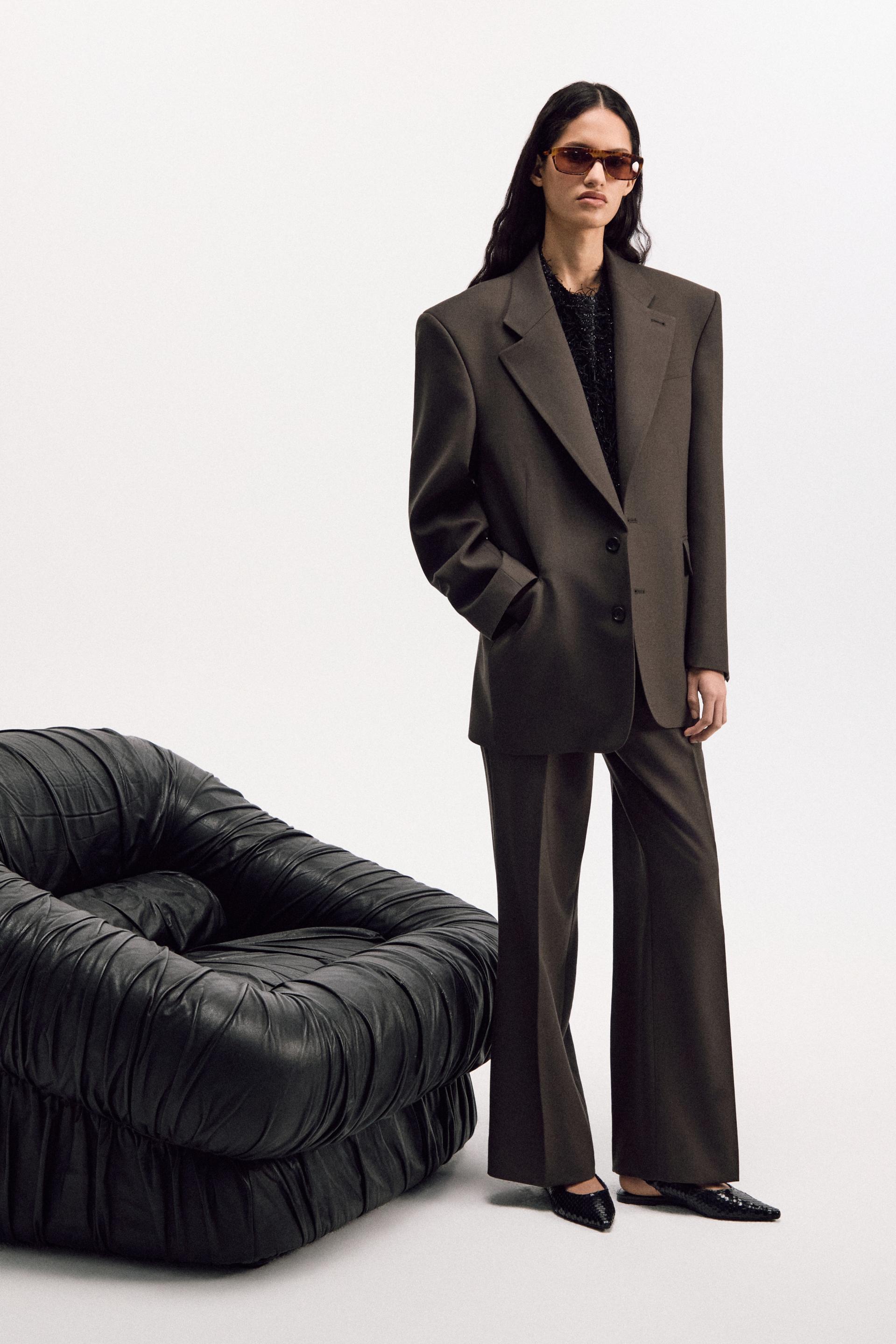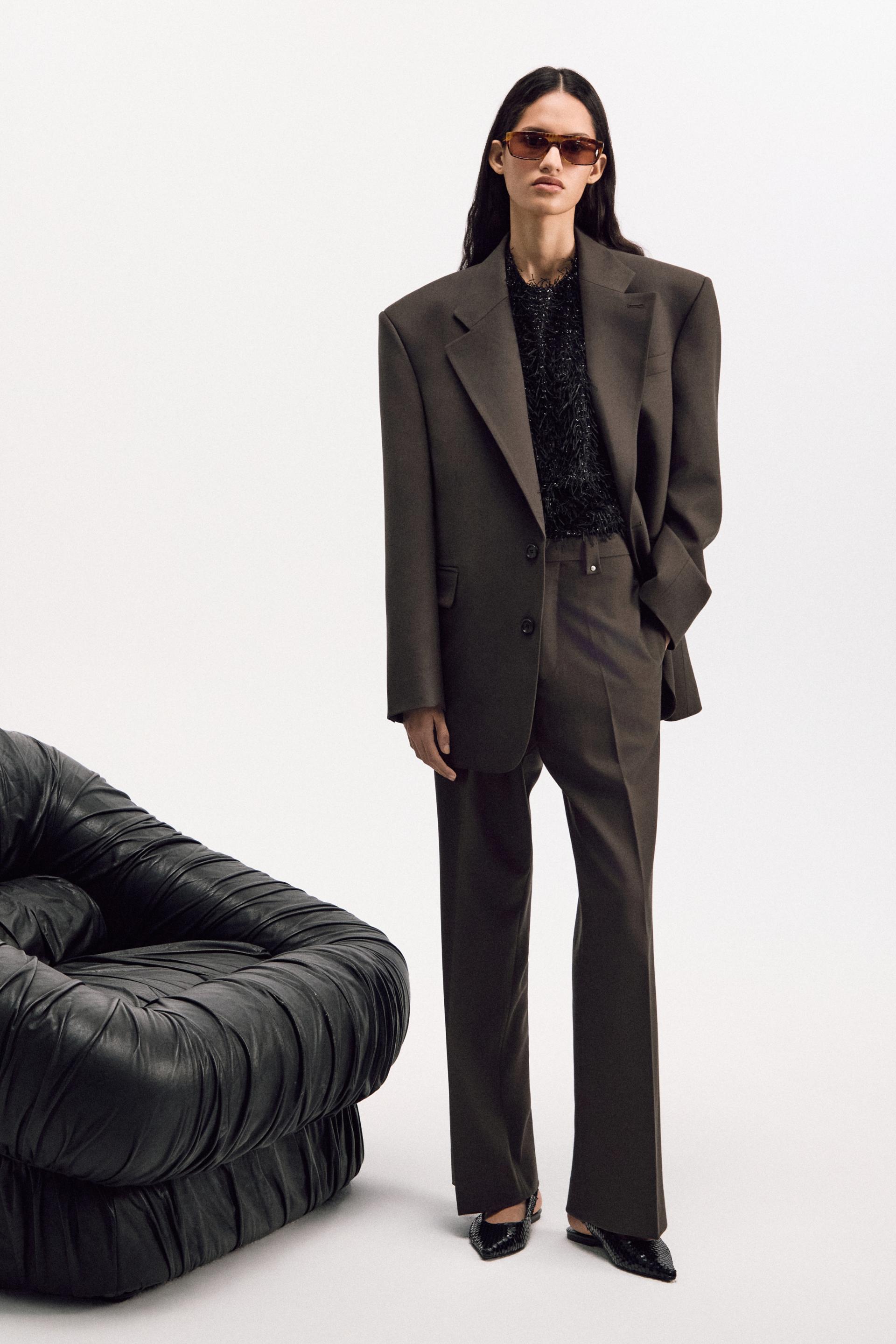 V-tapered silhouette of a '80s tailoring
