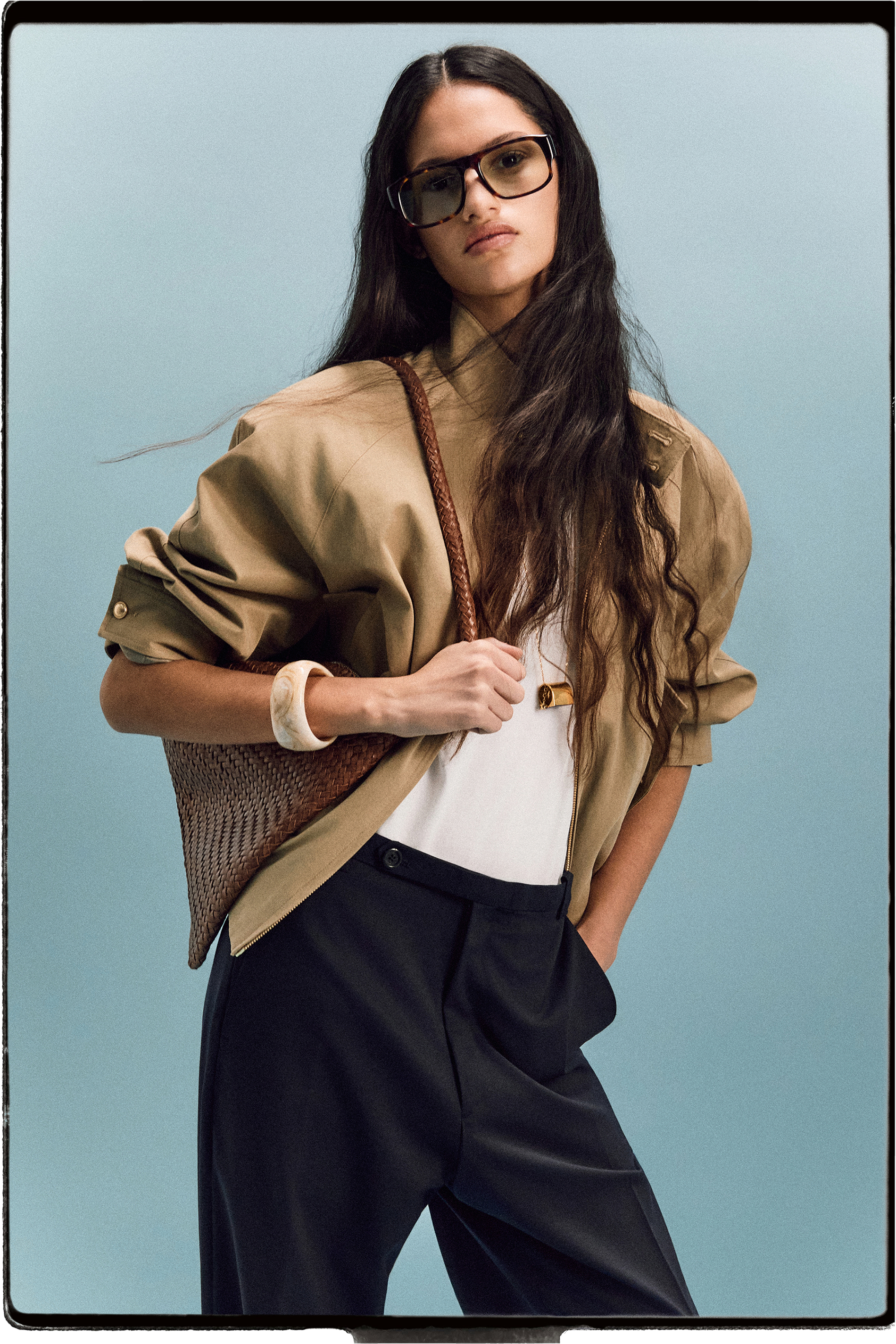타일레의 26 봄 컬렉션은 재해석된 문화와 균형이 내비치는 은밀한 이질감에 집중합니다. 청색 유리와 금속, 흰 벽과 나선형 램프의 동양적 조화로 완성한 도쿄 아오야마의 SPIRAL은 서구적 언어로 재구성된 도시의 이질적인 존재입니다. 타일레는 아오야마의 황금기, 세련된 과잉과 차분한 럭셔리에 대한 유희로 완성된 자신만의 스타일에 스며든 가상의 페르소나를 상상합니다. 그는 서구 복식의 풍요로움과 포멀 코드를 동경하며 동양 문화의 격식과 헤리티지를 유지합니다. 나직한 톤의 수트, 여유있게 몸을 감싸는 니트와 몽환적 패턴의 셔츠, 빛의 흐름에 따라 미묘하게 표정을 달리하는 레더피스는 그를 상징하며 이 도시가 가진 화려함을 드러내기 보다는 감추는 방식으로 격조를 드러냅니다. 낮게 깔린 호화로움과 은밀하게 층위를 더해가는 도시의 미감. 동서양의 이질적 조화와 내러티브를 탐구한 타일레의 26 봄 컬렉션을 만나보세요.